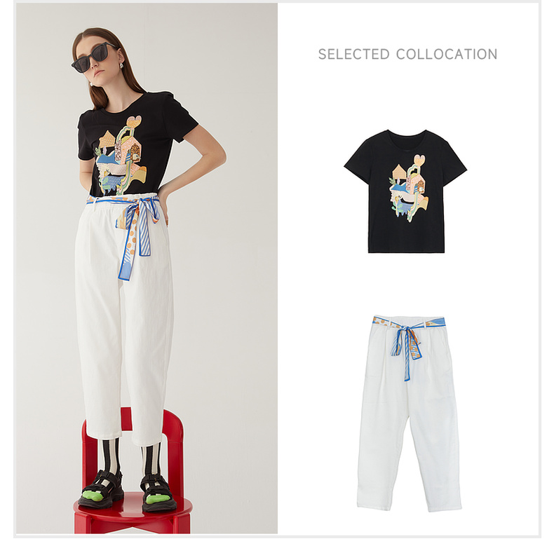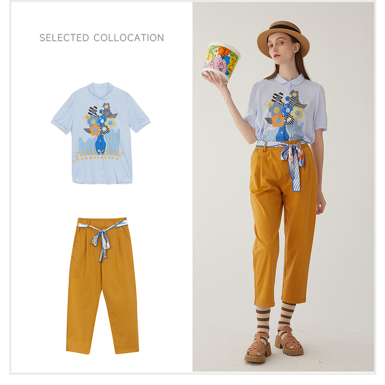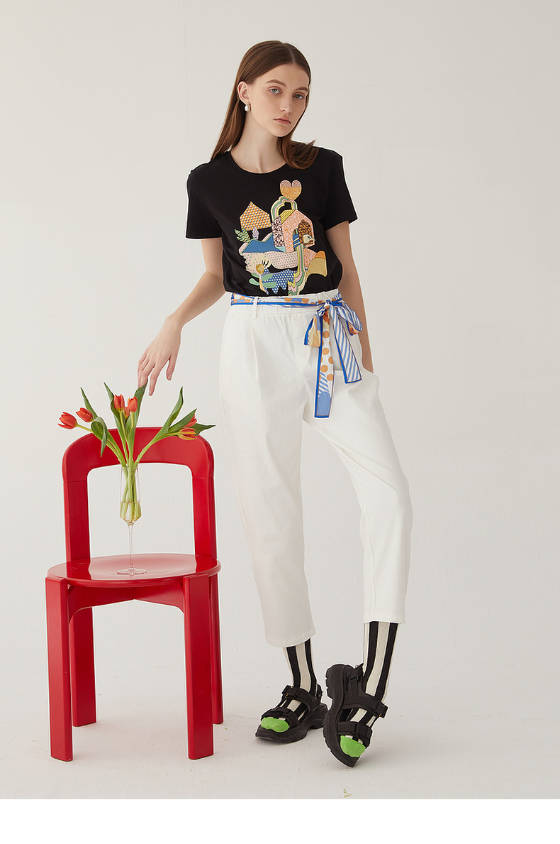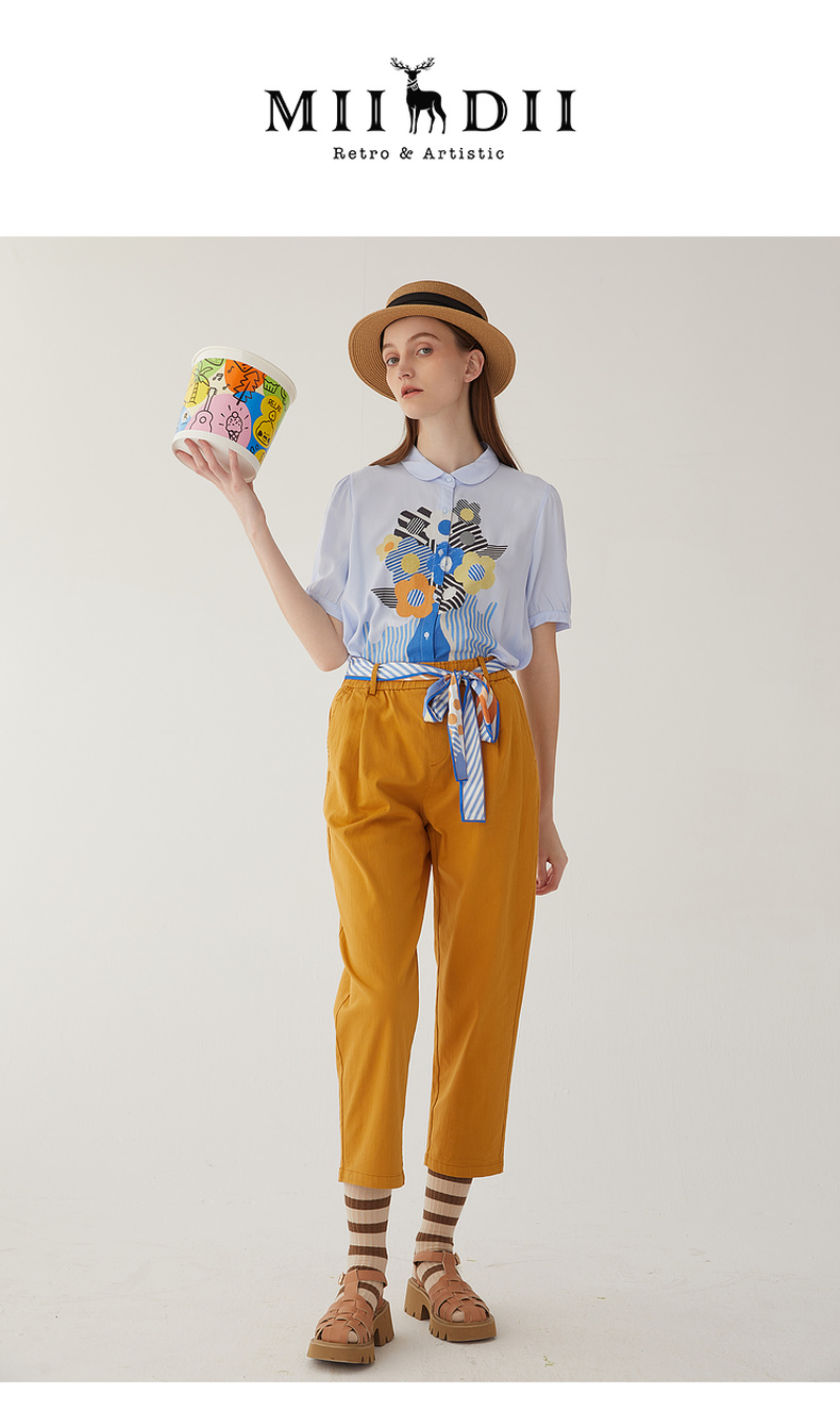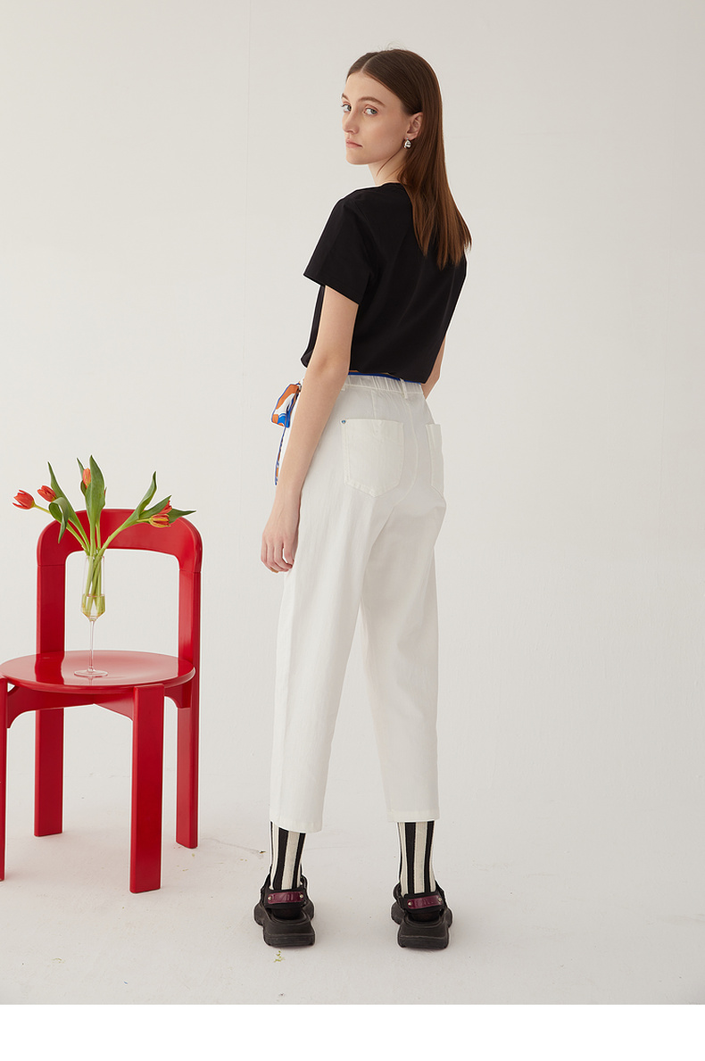 谜底直筒九分裤女2024夏季新款通勤风纯色休闲裤配腰带246MK7018
