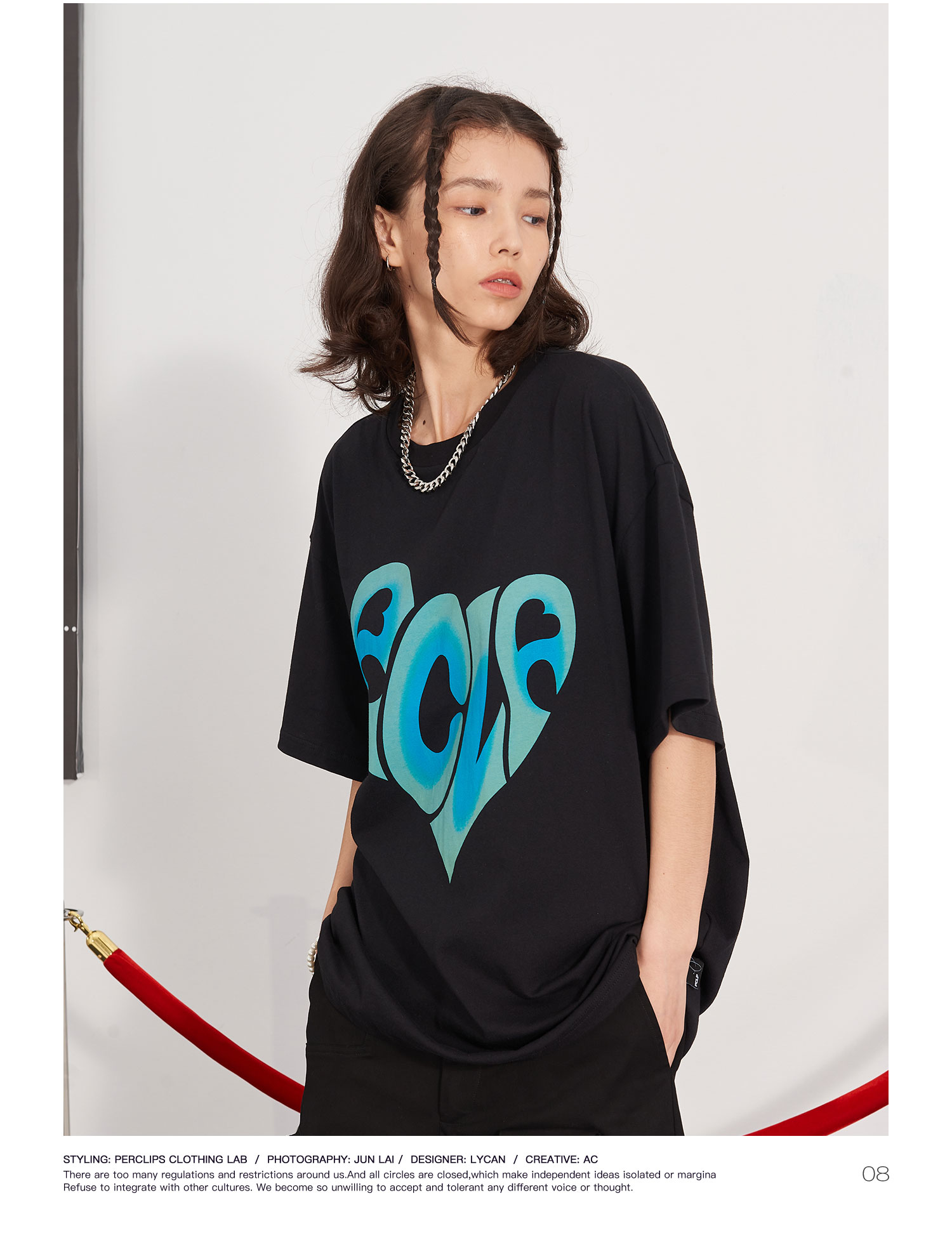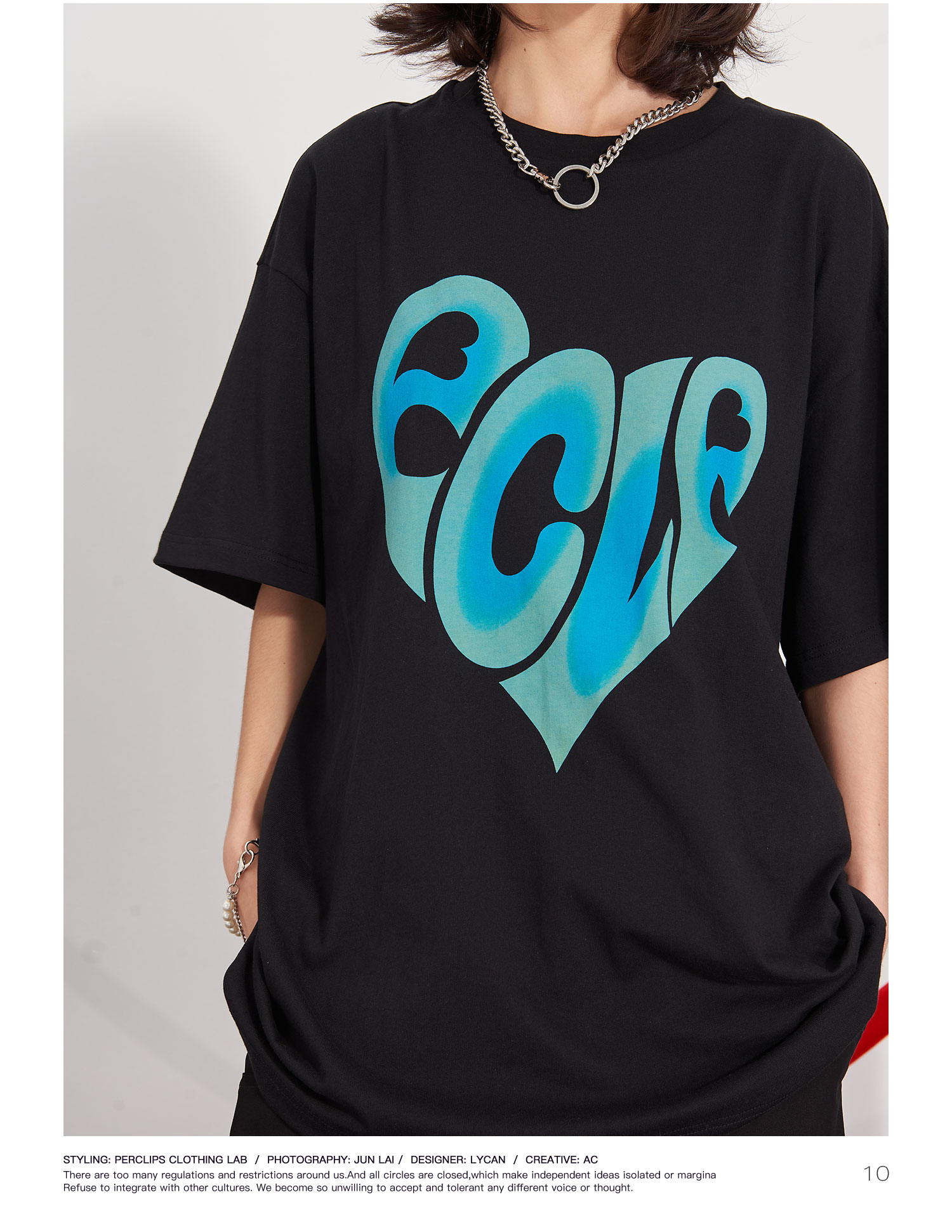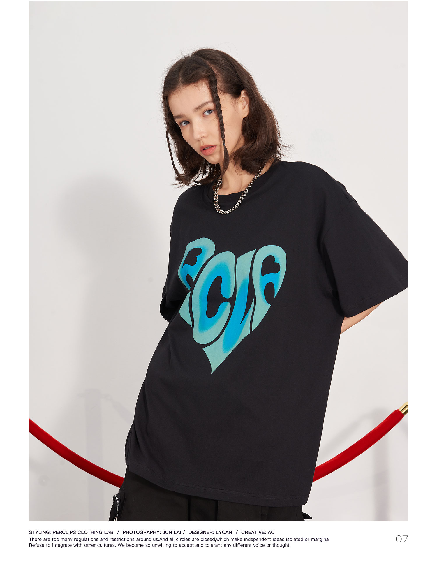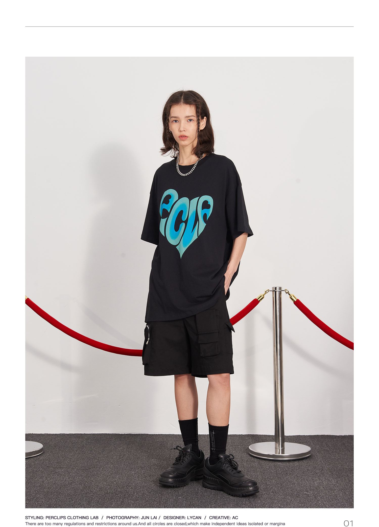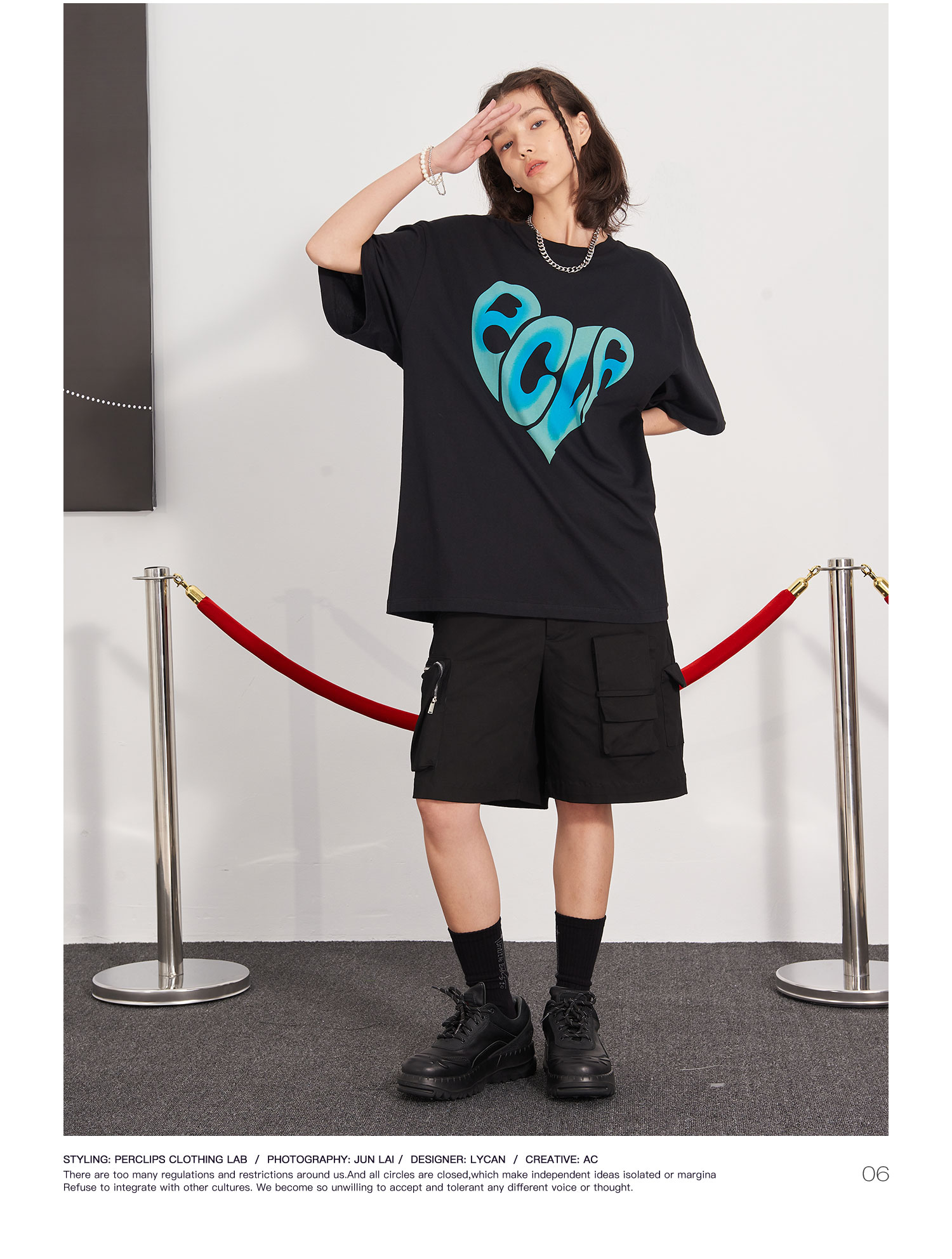PCLP(PERCLIPS) 爱心LOGO潮流印花短袖男国潮牌纯棉宽松半袖t恤男