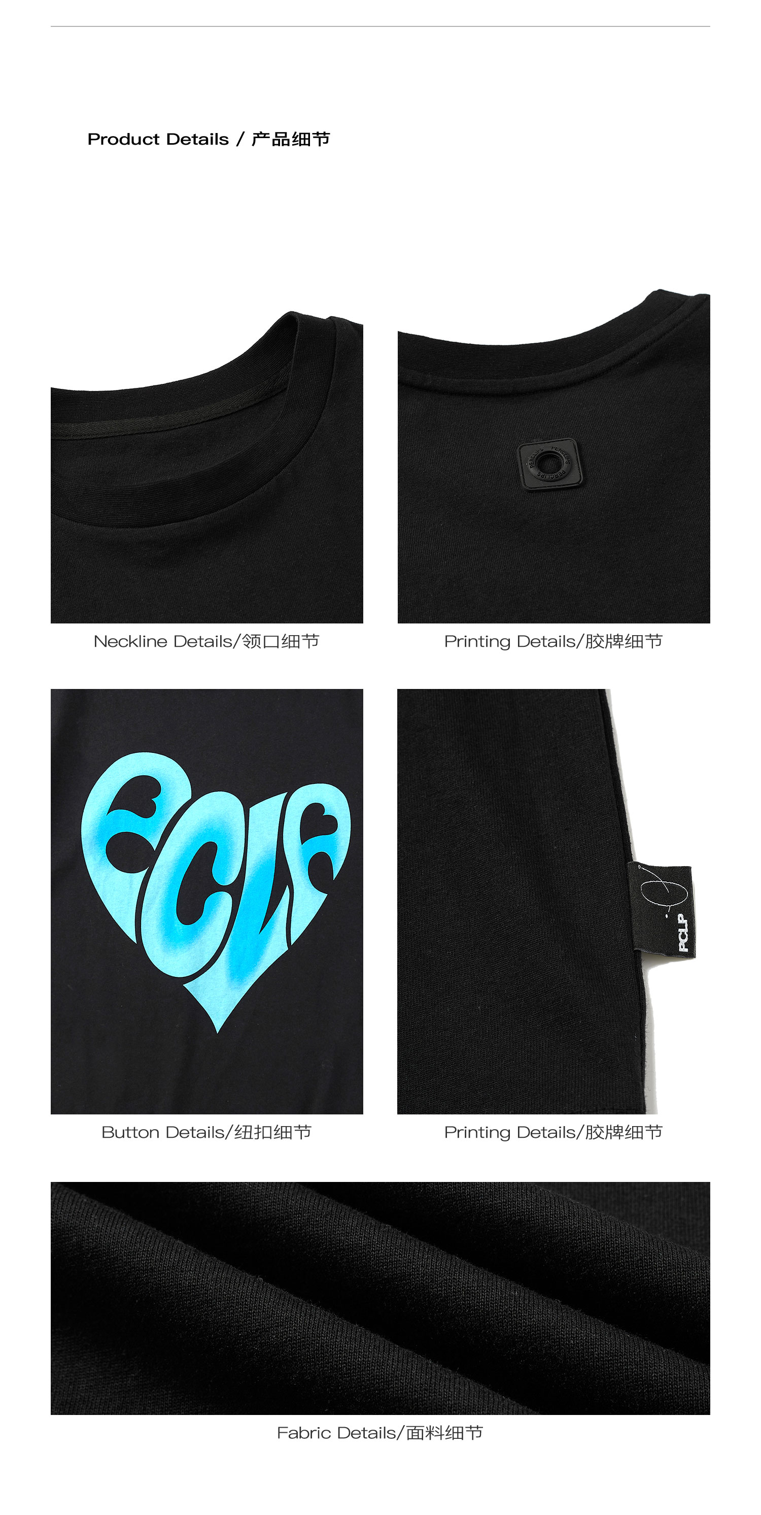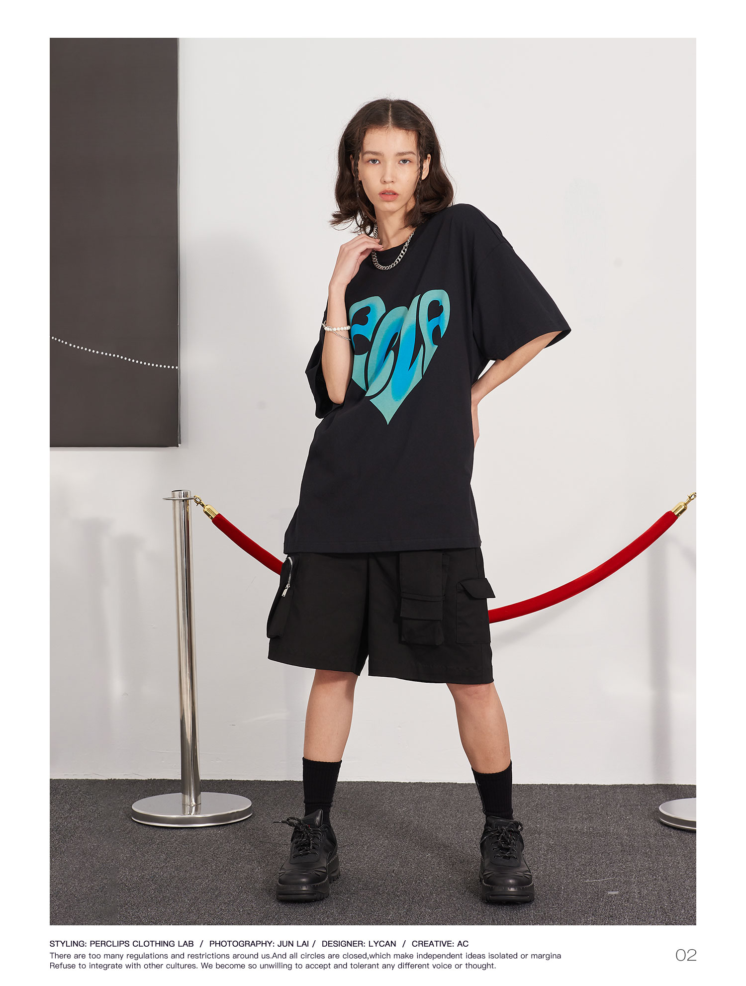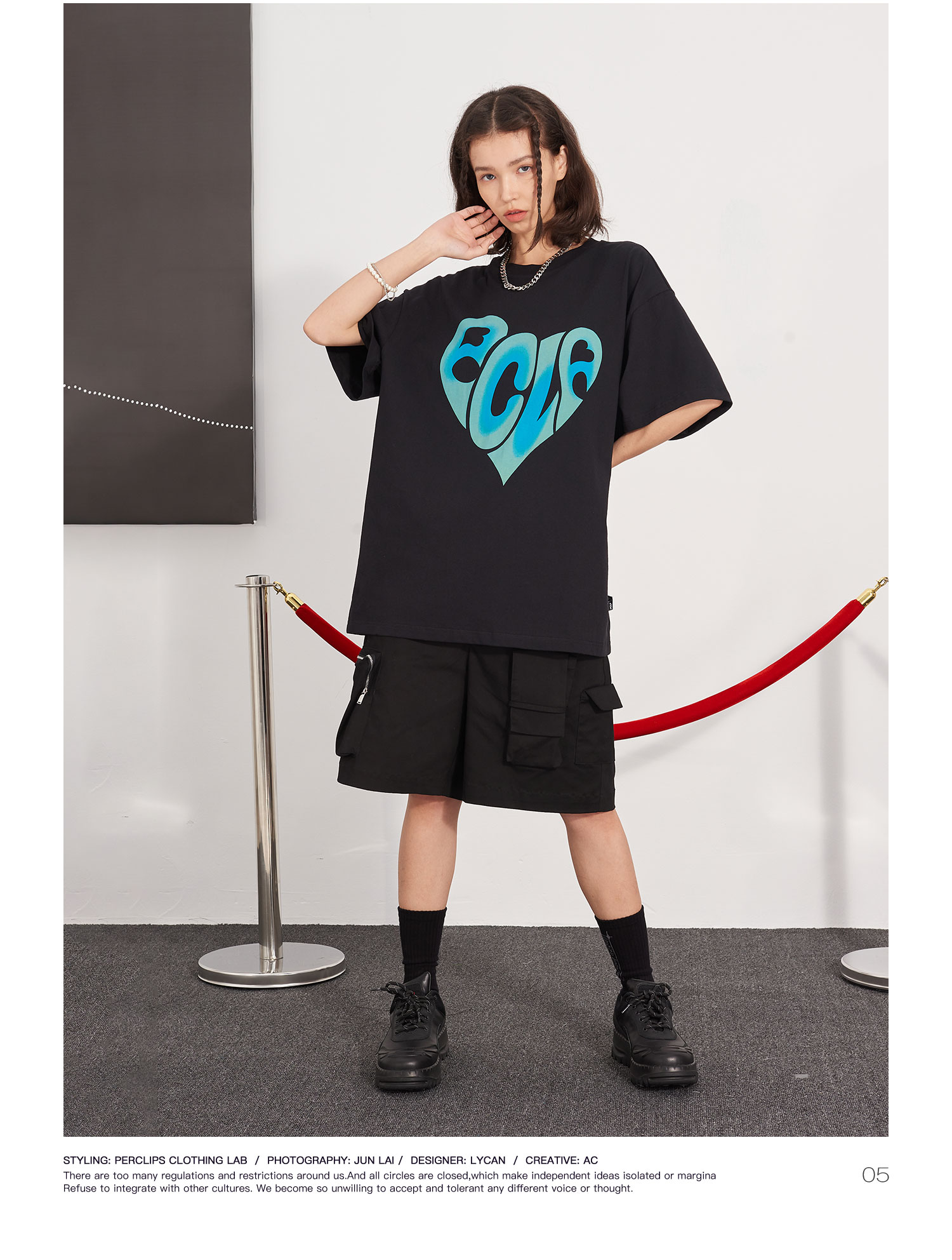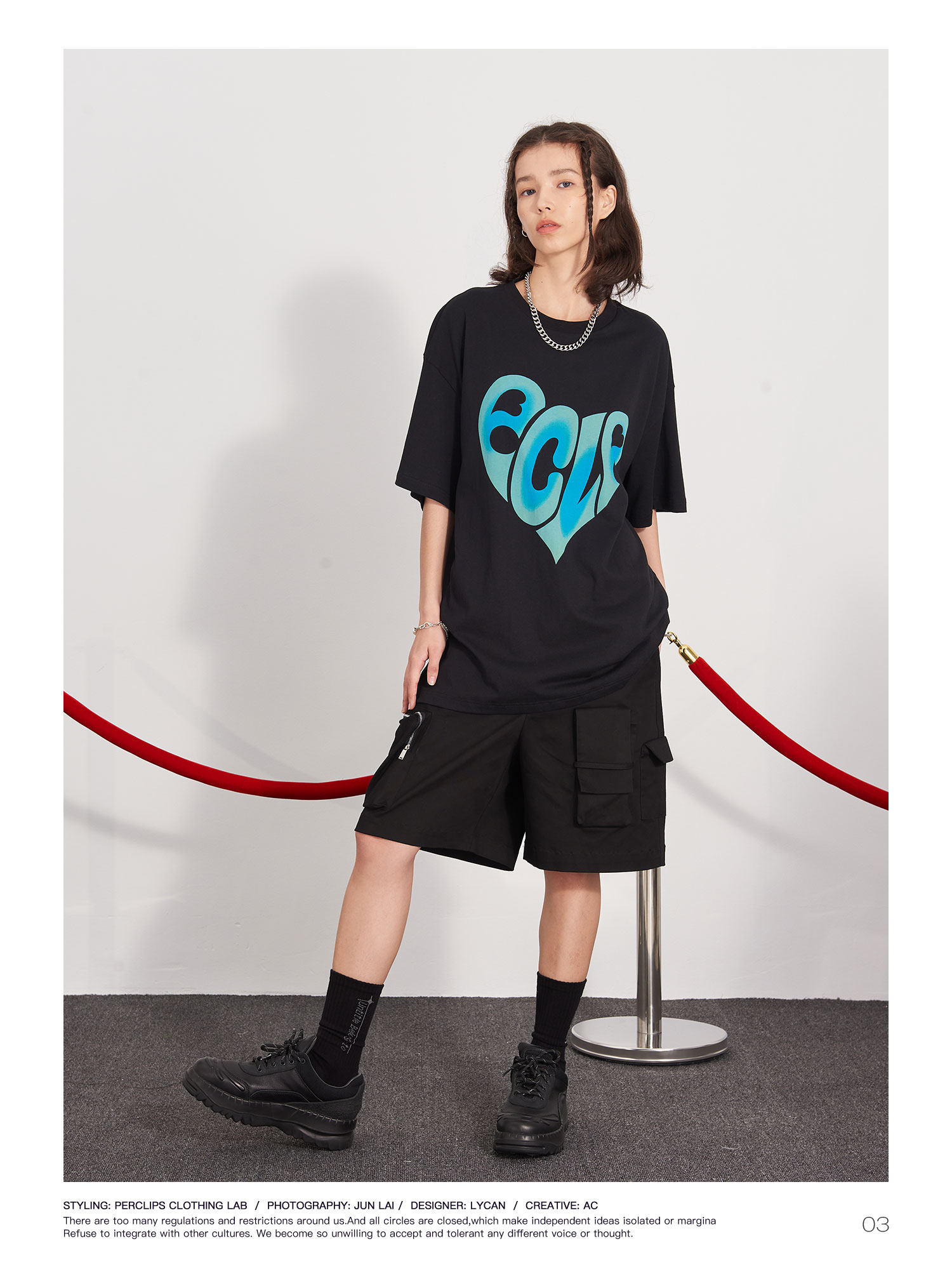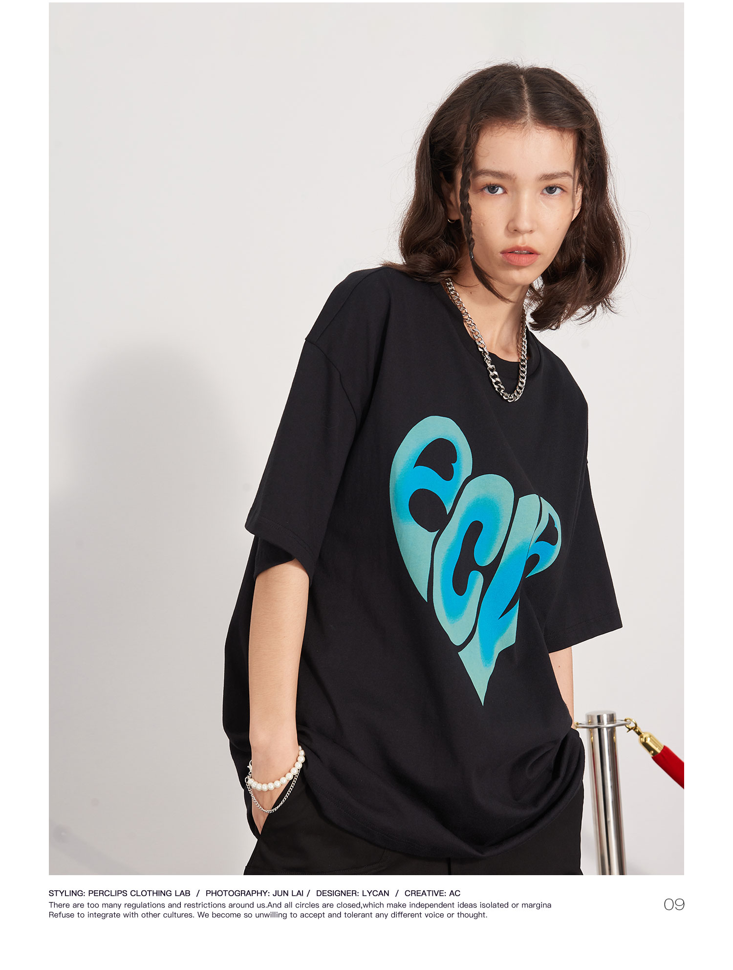 PCLP(PERCLIPS) 爱心LOGO潮流印花短袖男国潮牌纯棉宽松半袖t恤男