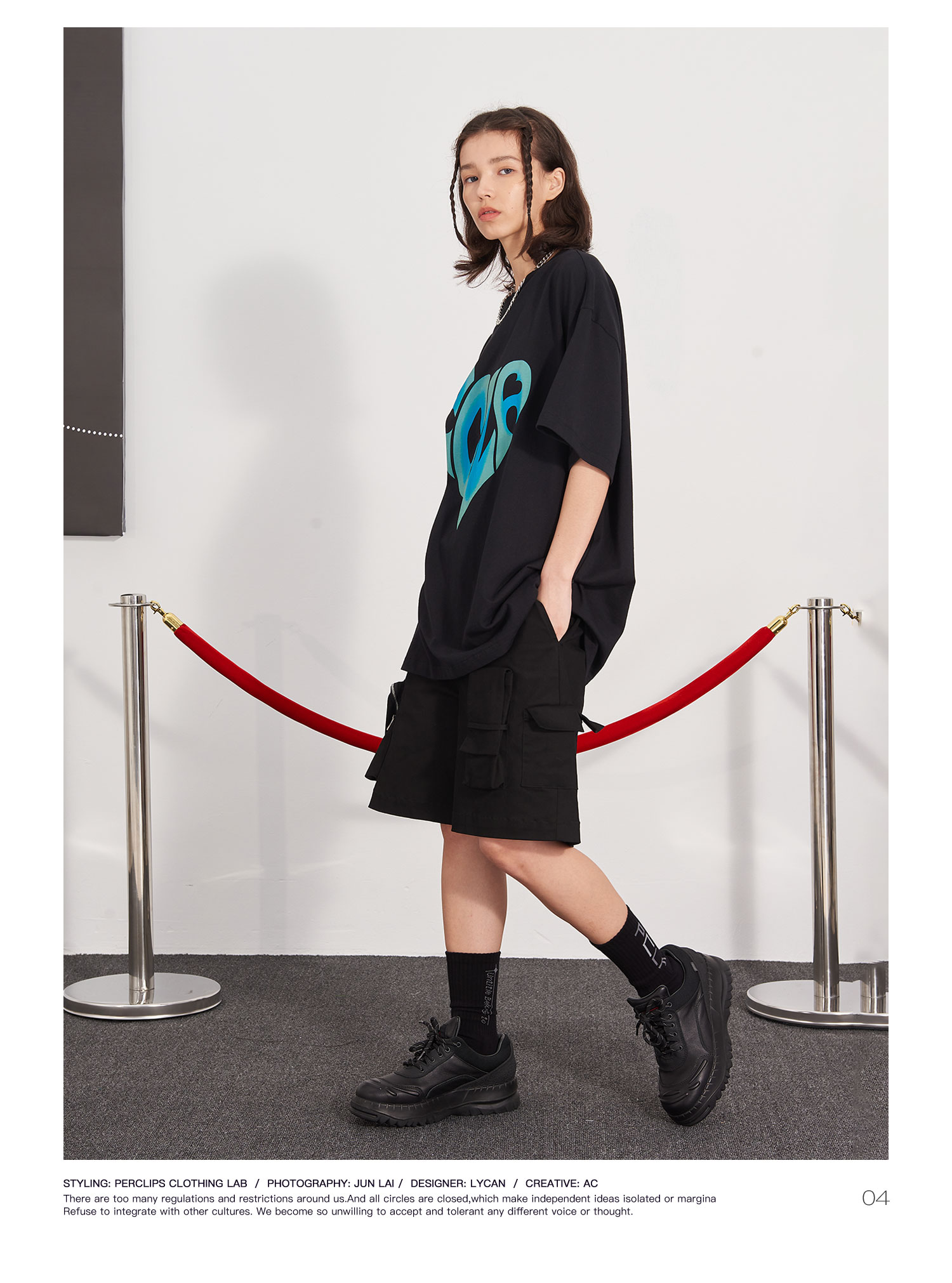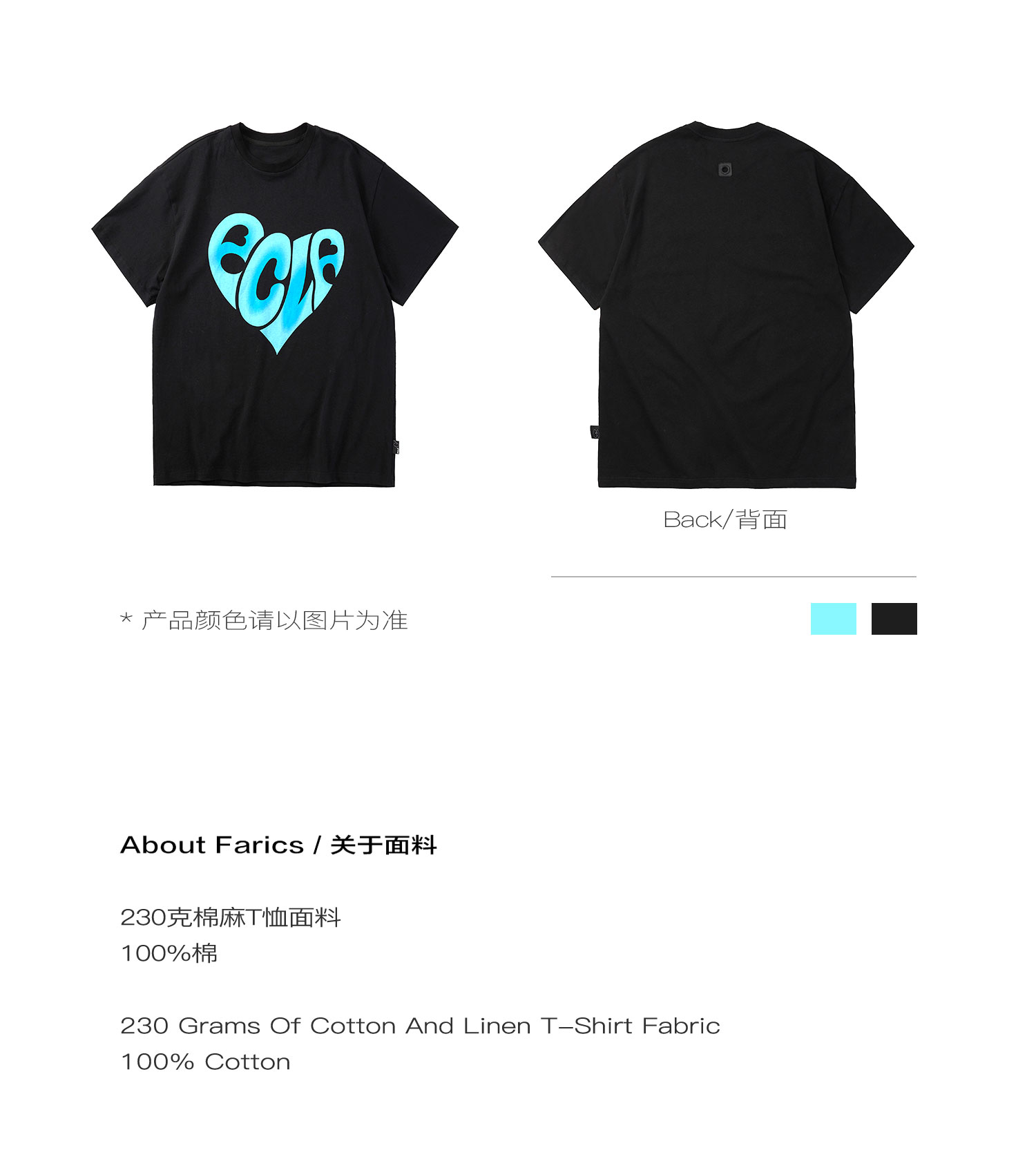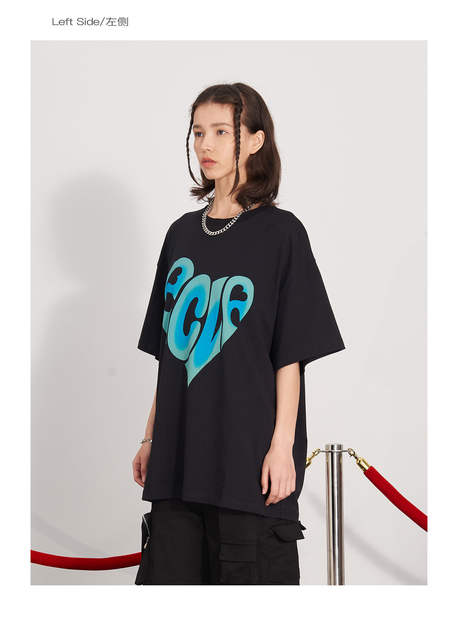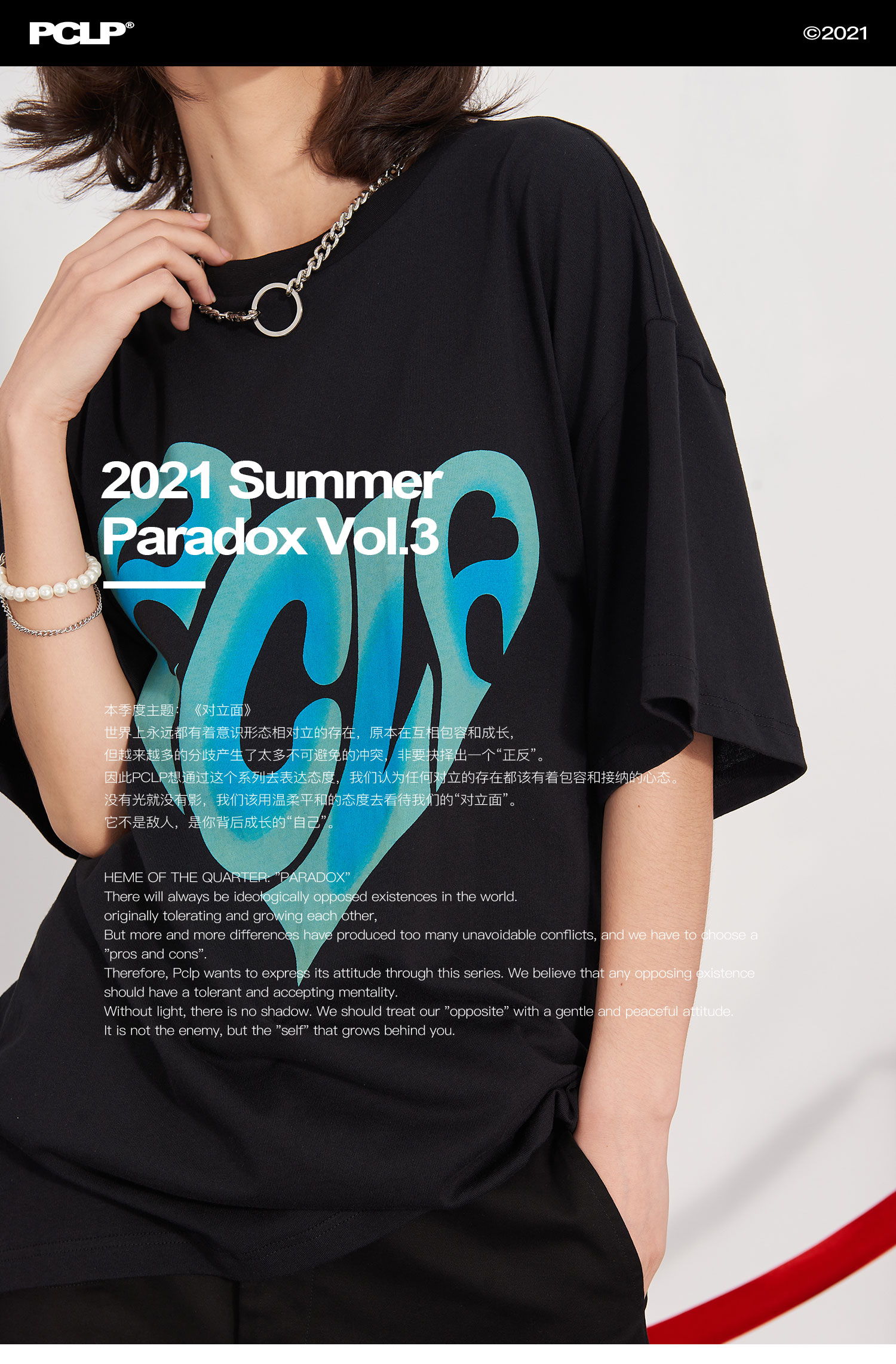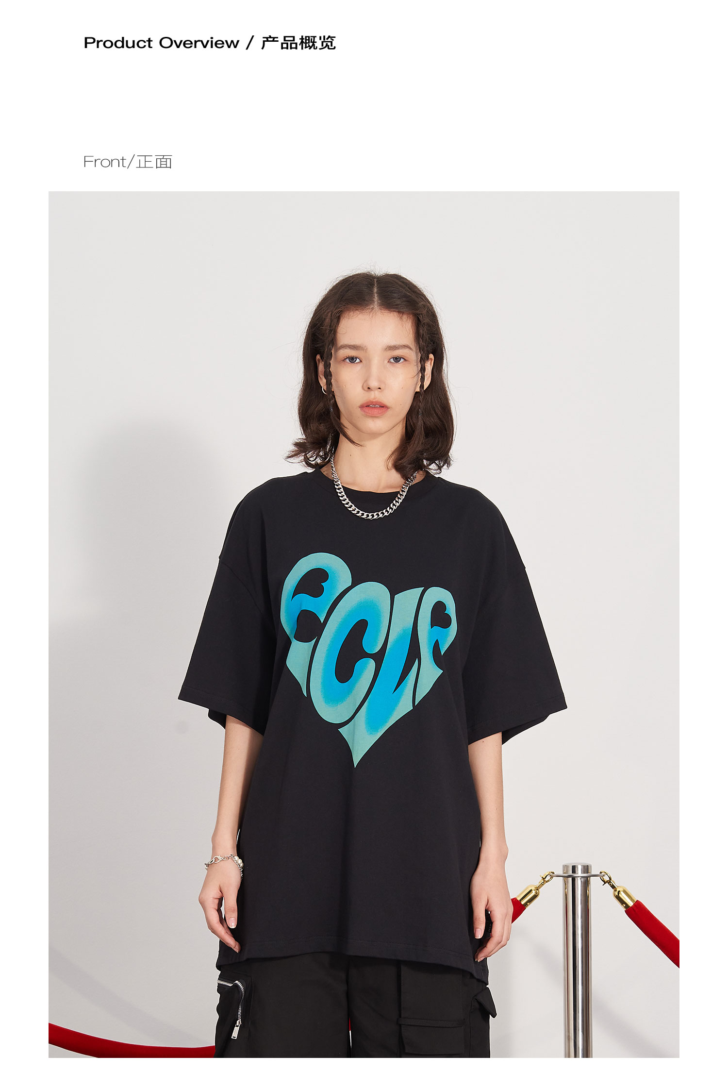PCLP(PERCLIPS) 爱心LOGO潮流印花短袖男国潮牌纯棉宽松半袖t恤男