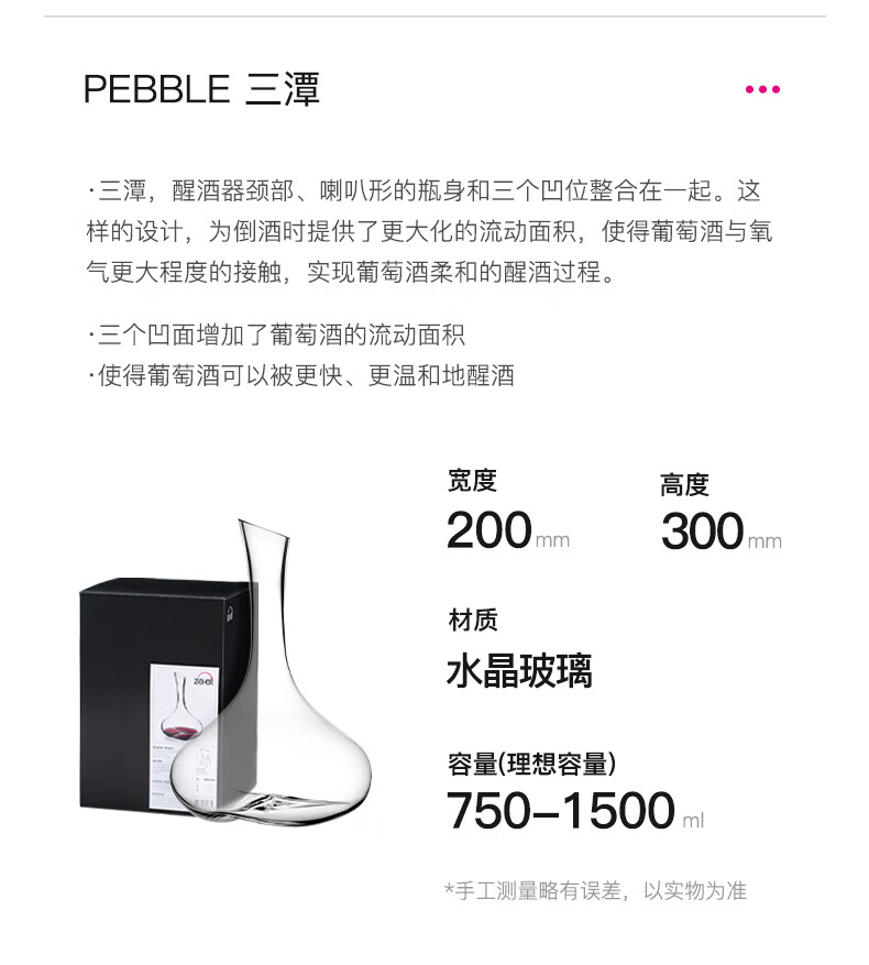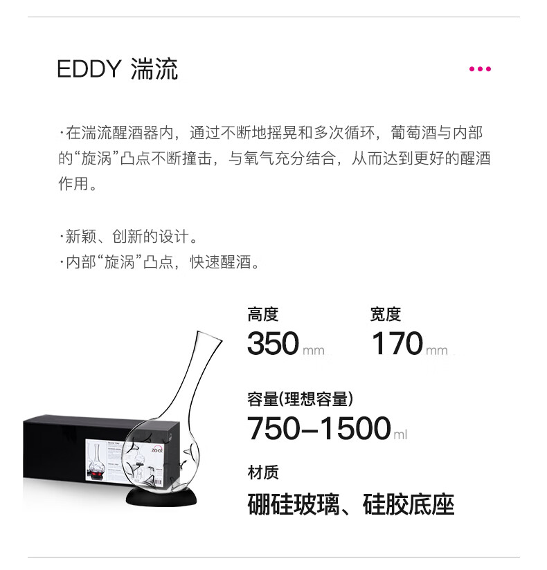 ZIEHER德国进口手工水晶玻璃高档红酒杯白葡萄杯香槟杯甜烈酒杯醒酒器 750mlEDDY湍流醒酒器(1只)