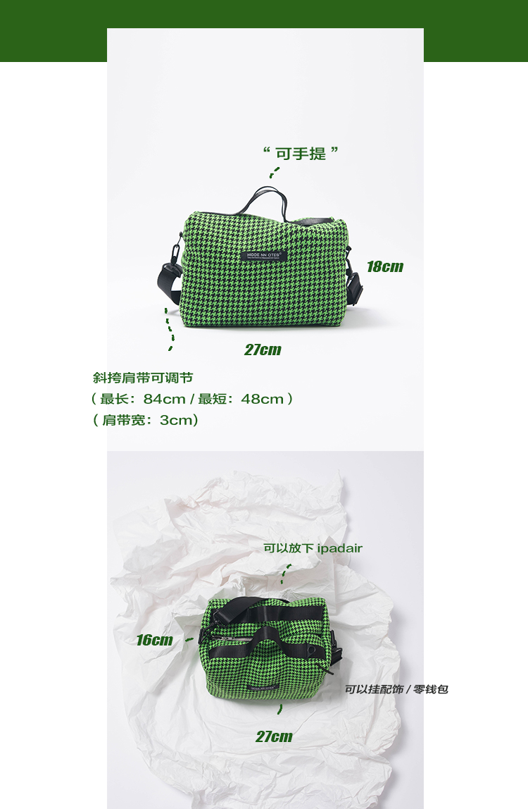 HIDDENNOTES l 2021新款小众绿千鸟格印花斜挎包小个子单肩斜挎包