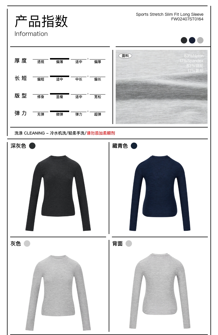 oneup运动弹力修身长袖