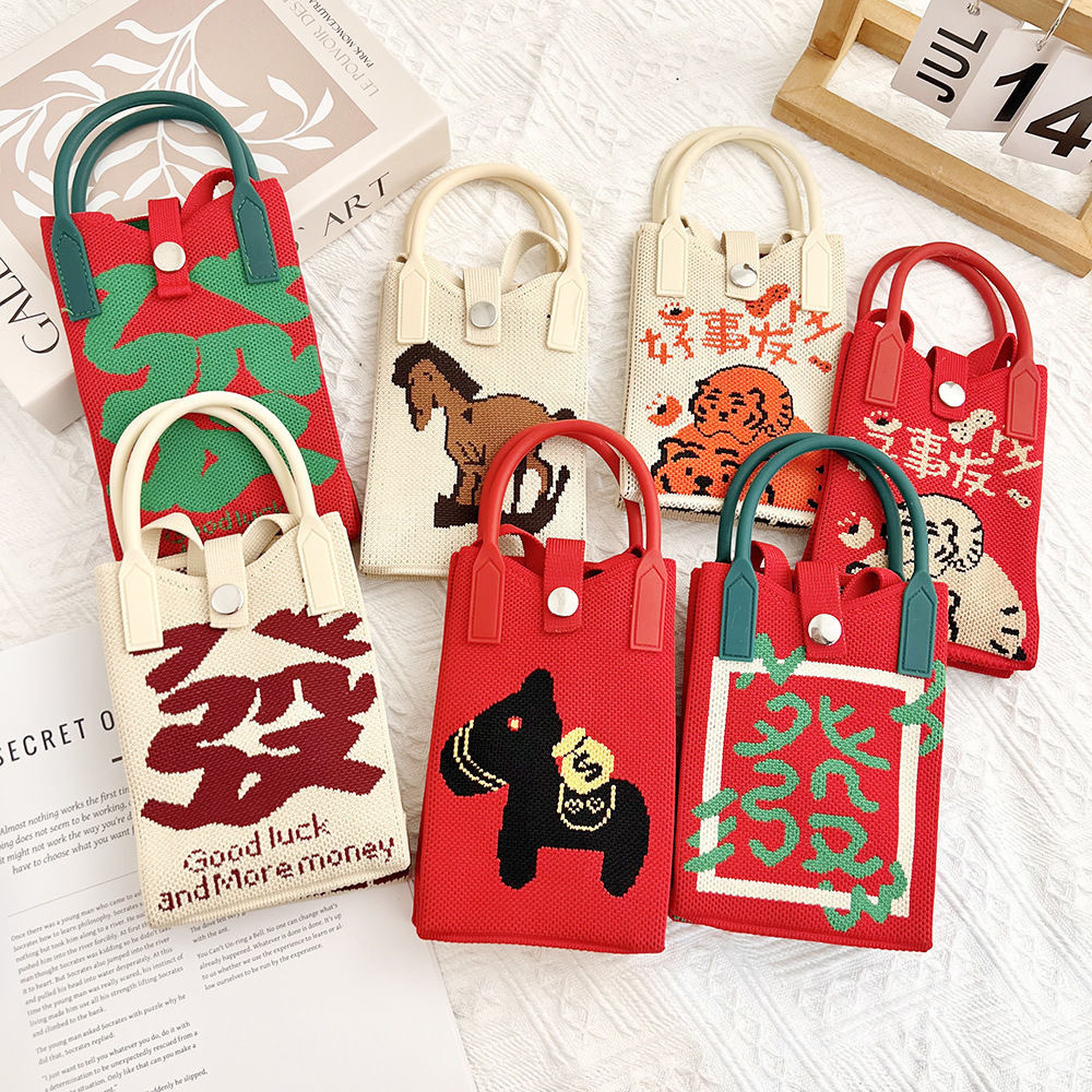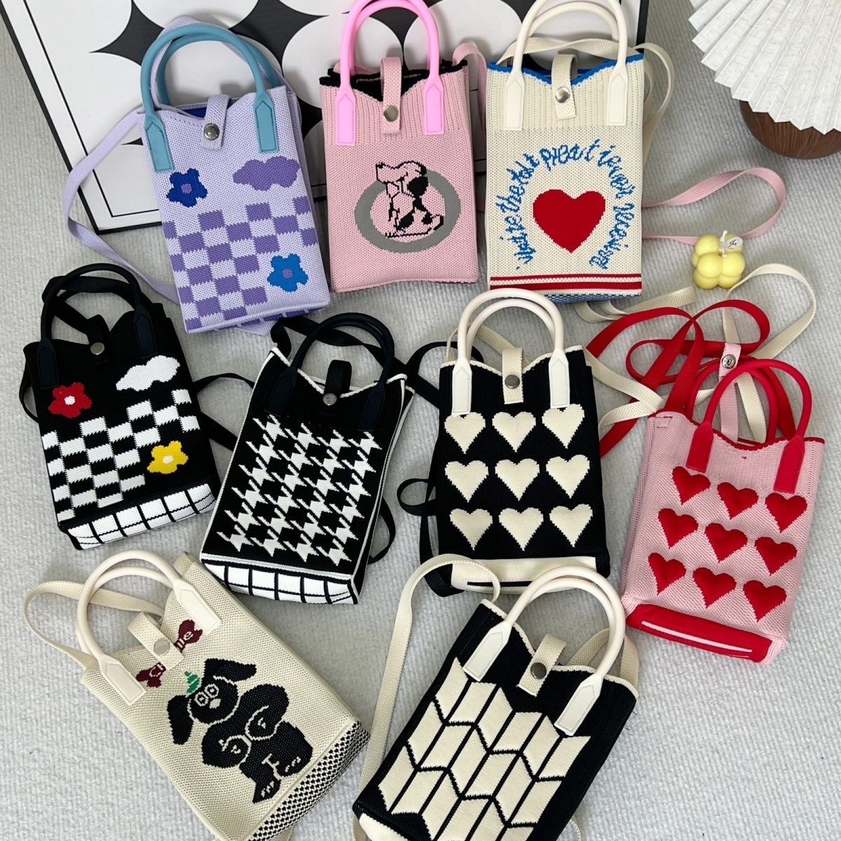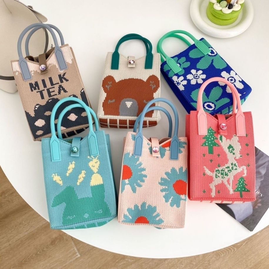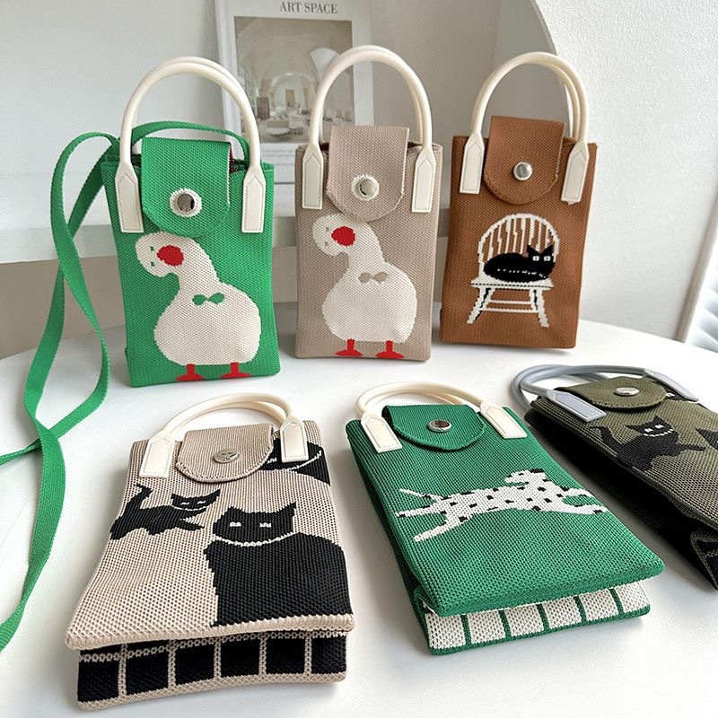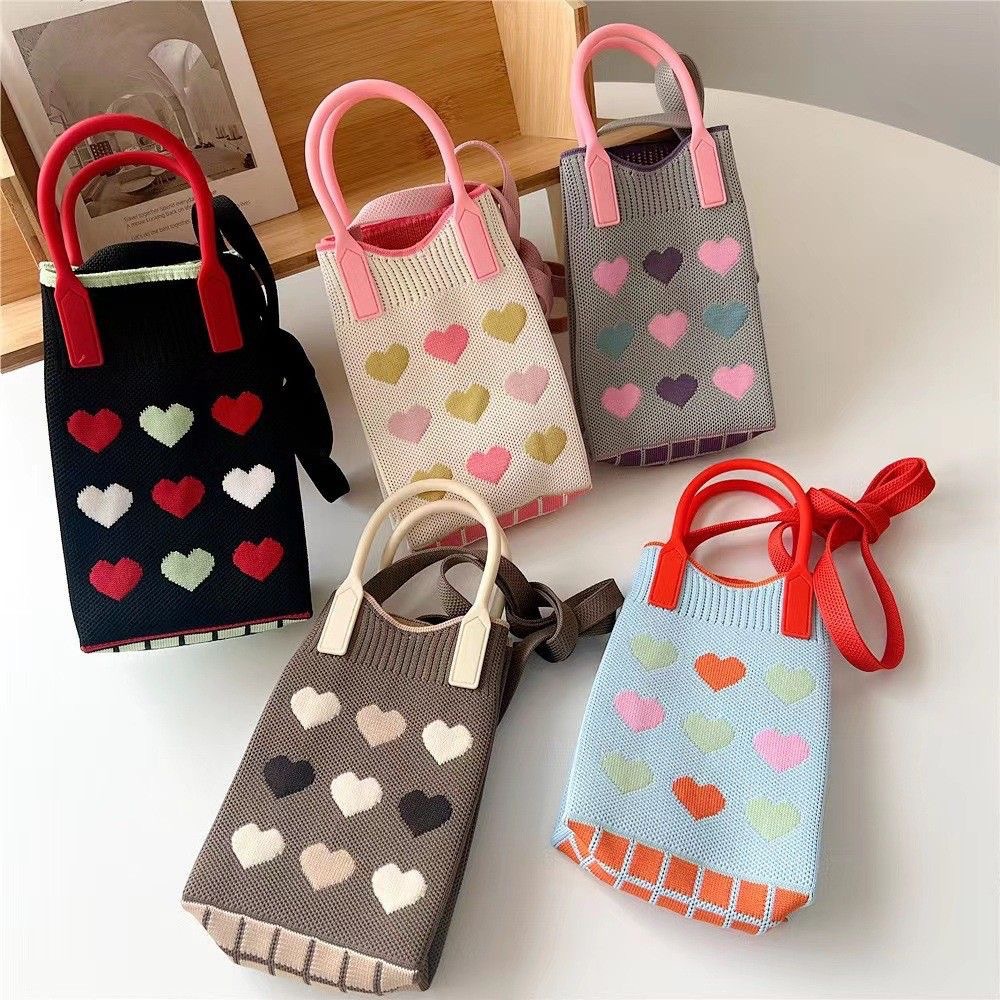 「19.9到手!十几款可选」新款爱心卡通针织手机包 女韩版单肩斜跨包出游零钱包小手提箱包