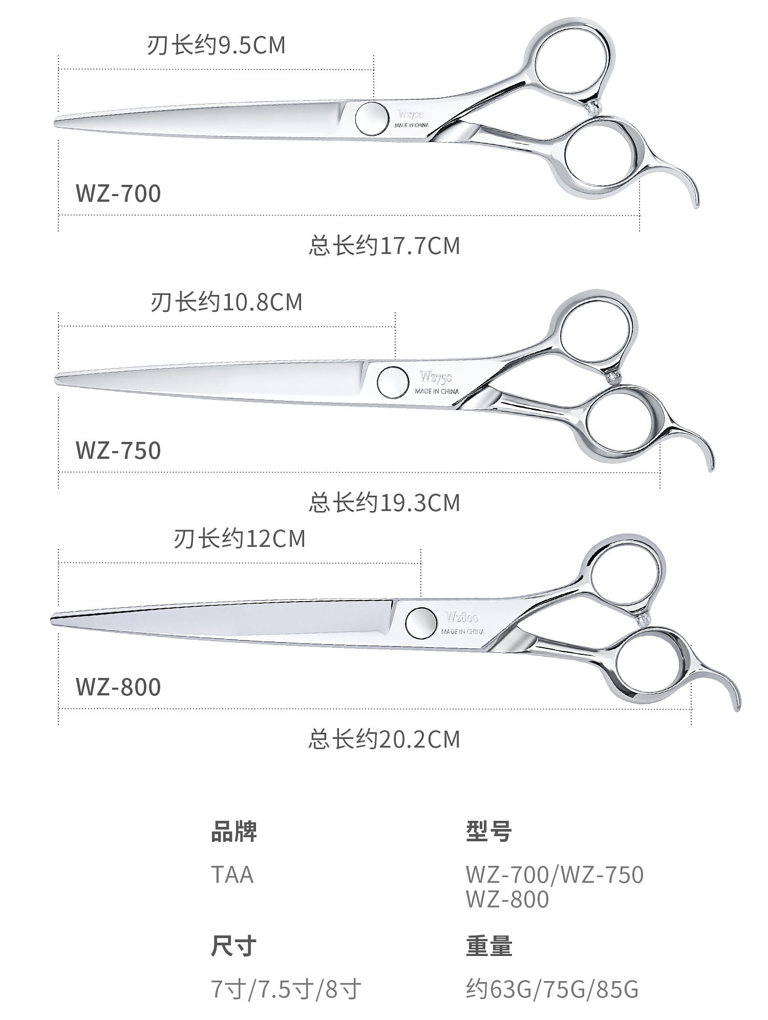 TAA它它“不错”系列宠物美容综合直剪 7寸WZ-700、7.5寸WZ-750、8寸WZ-800