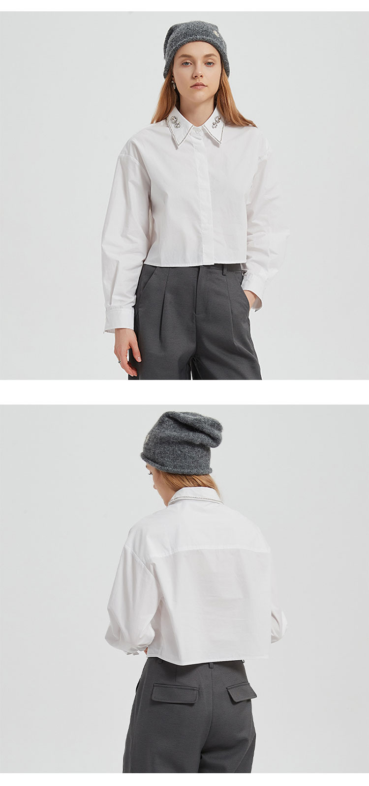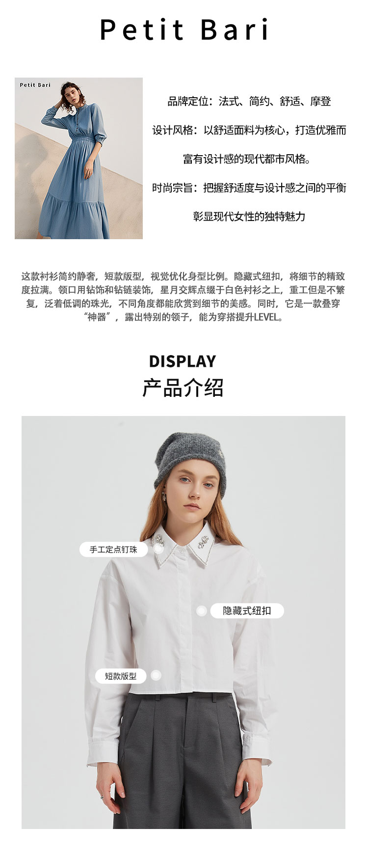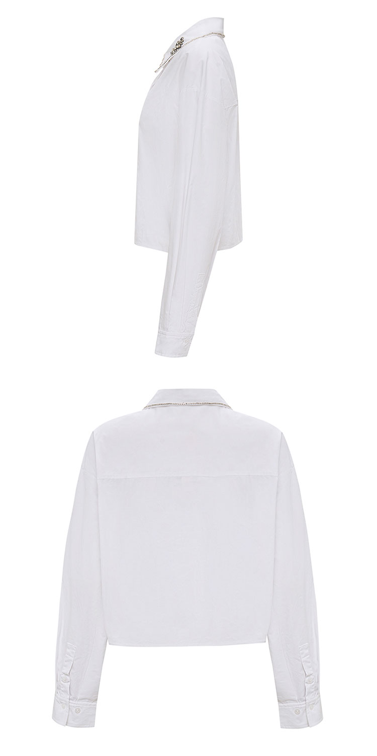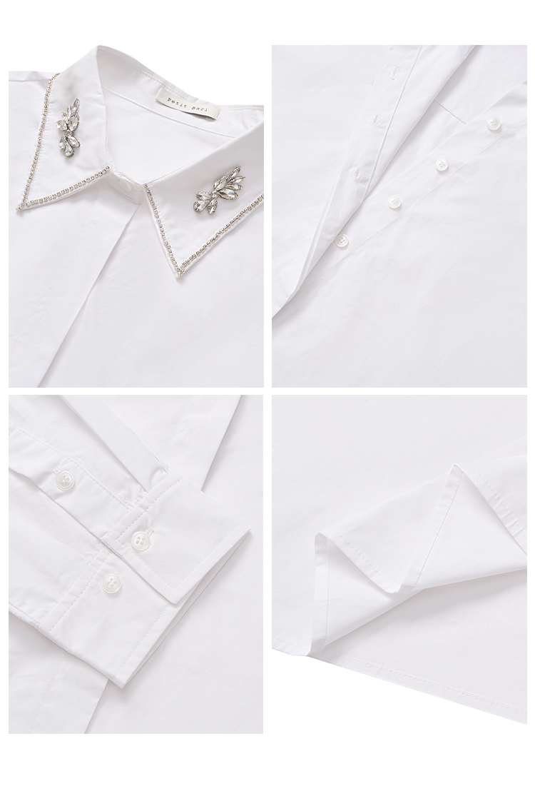 【2件9折】【Petit Bari】简约静奢短款钻饰长袖衬衫