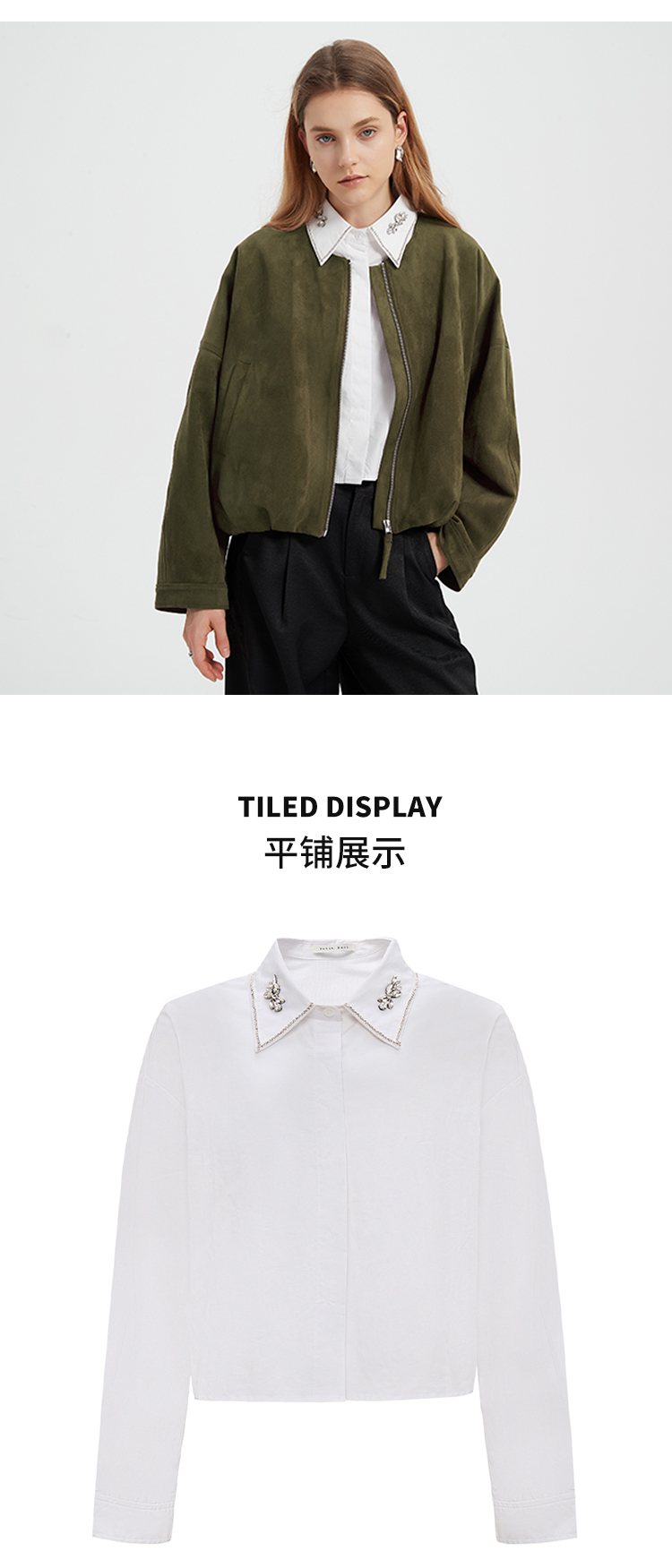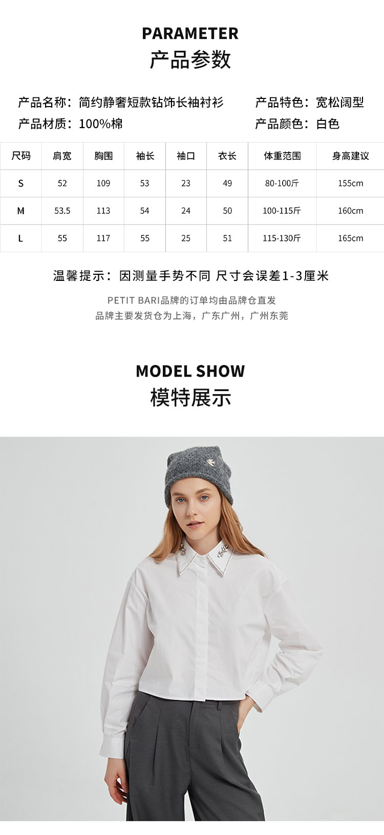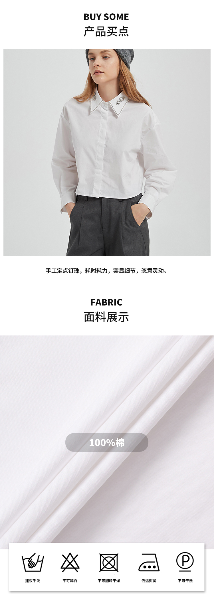 【2件9折】【Petit Bari】简约静奢短款钻饰长袖衬衫