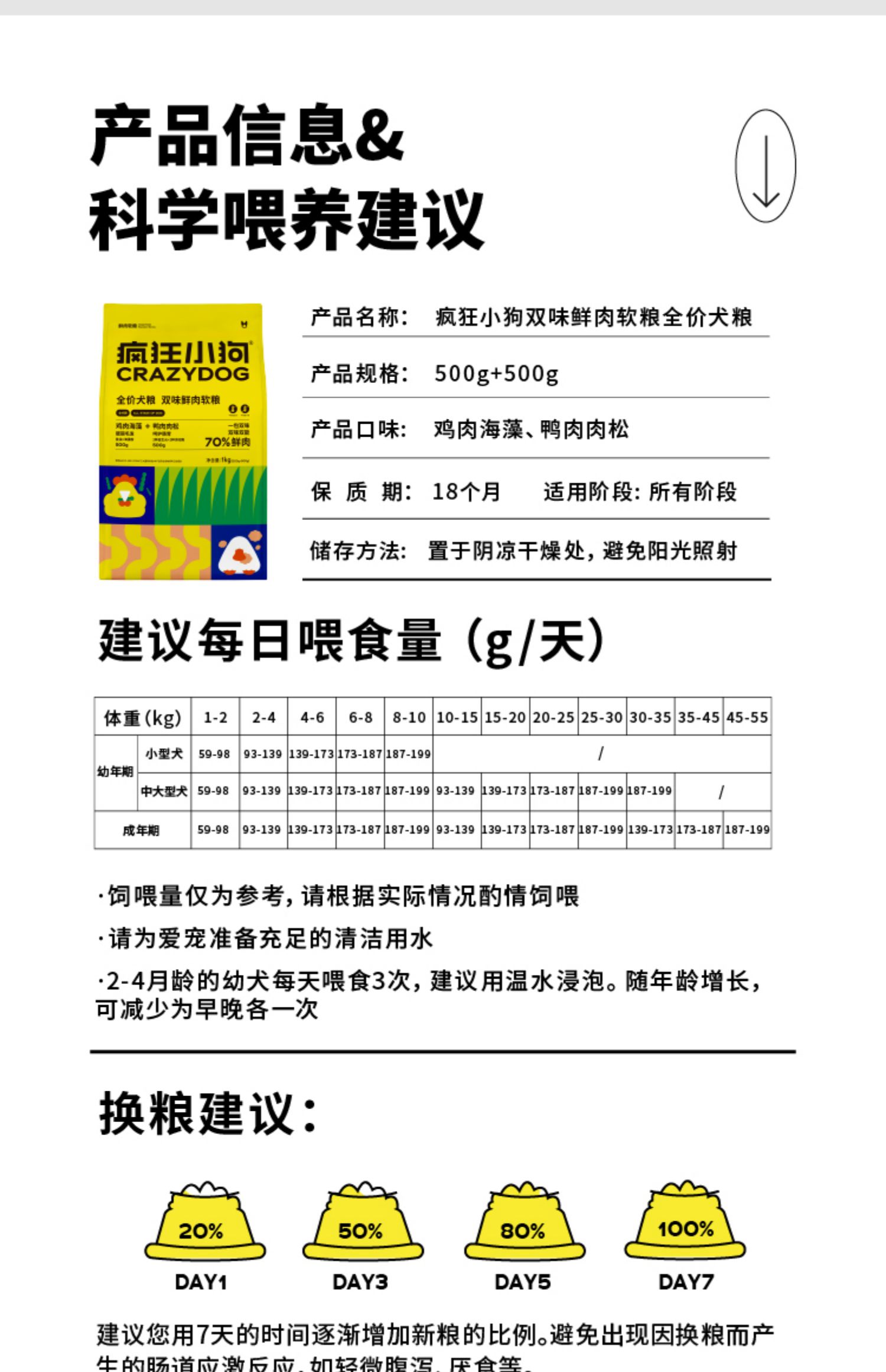 疯狂小狗 70%鲜肉软粮 1kg 全犬期
