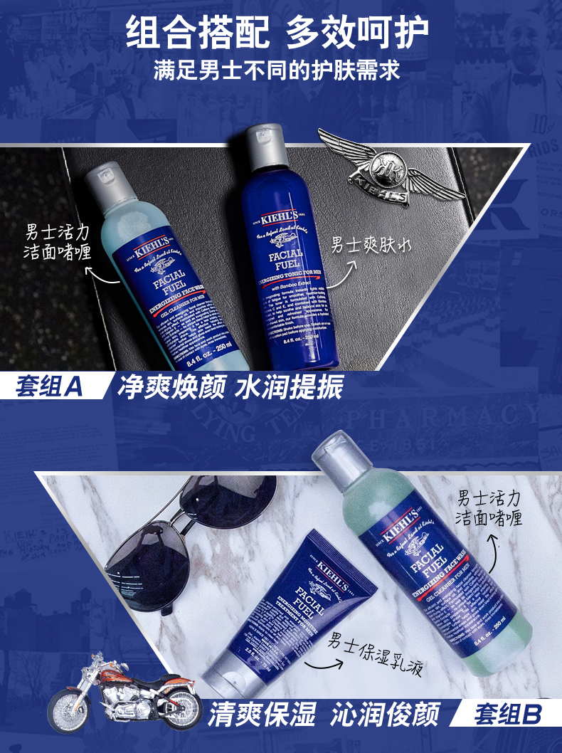 科颜氏男士活力保湿三件套装洗面奶洁面啫喱爽肤水乳