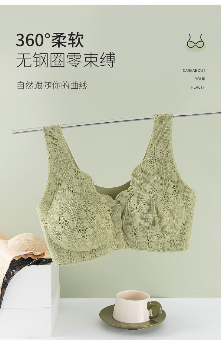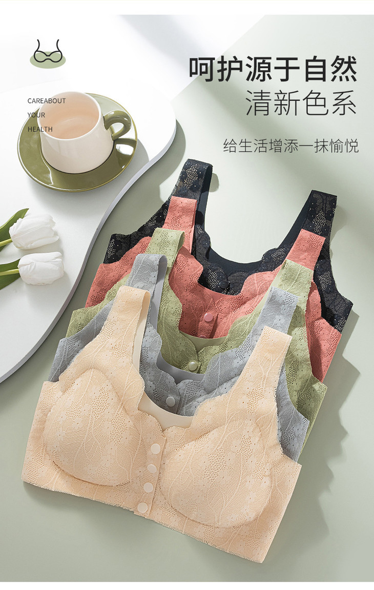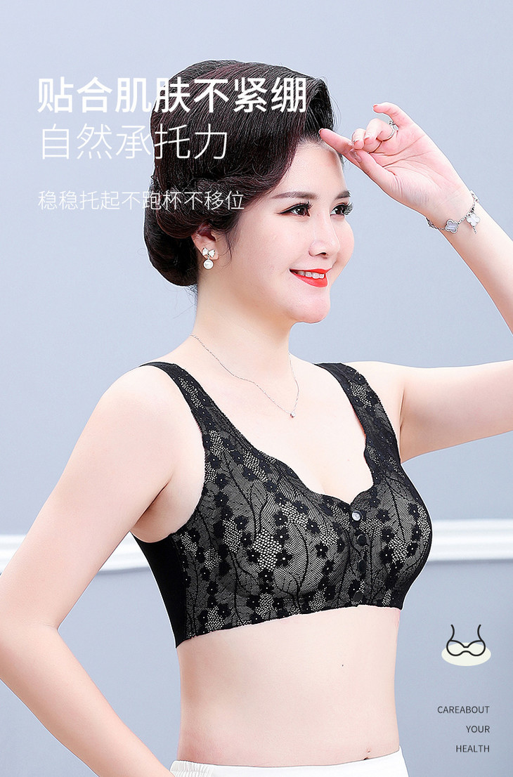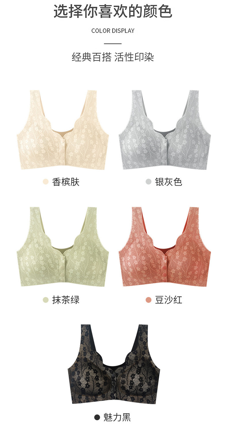 妈妈前开扣文胸无钢圈带胸垫收副乳背心式大码无痕文胸内衣