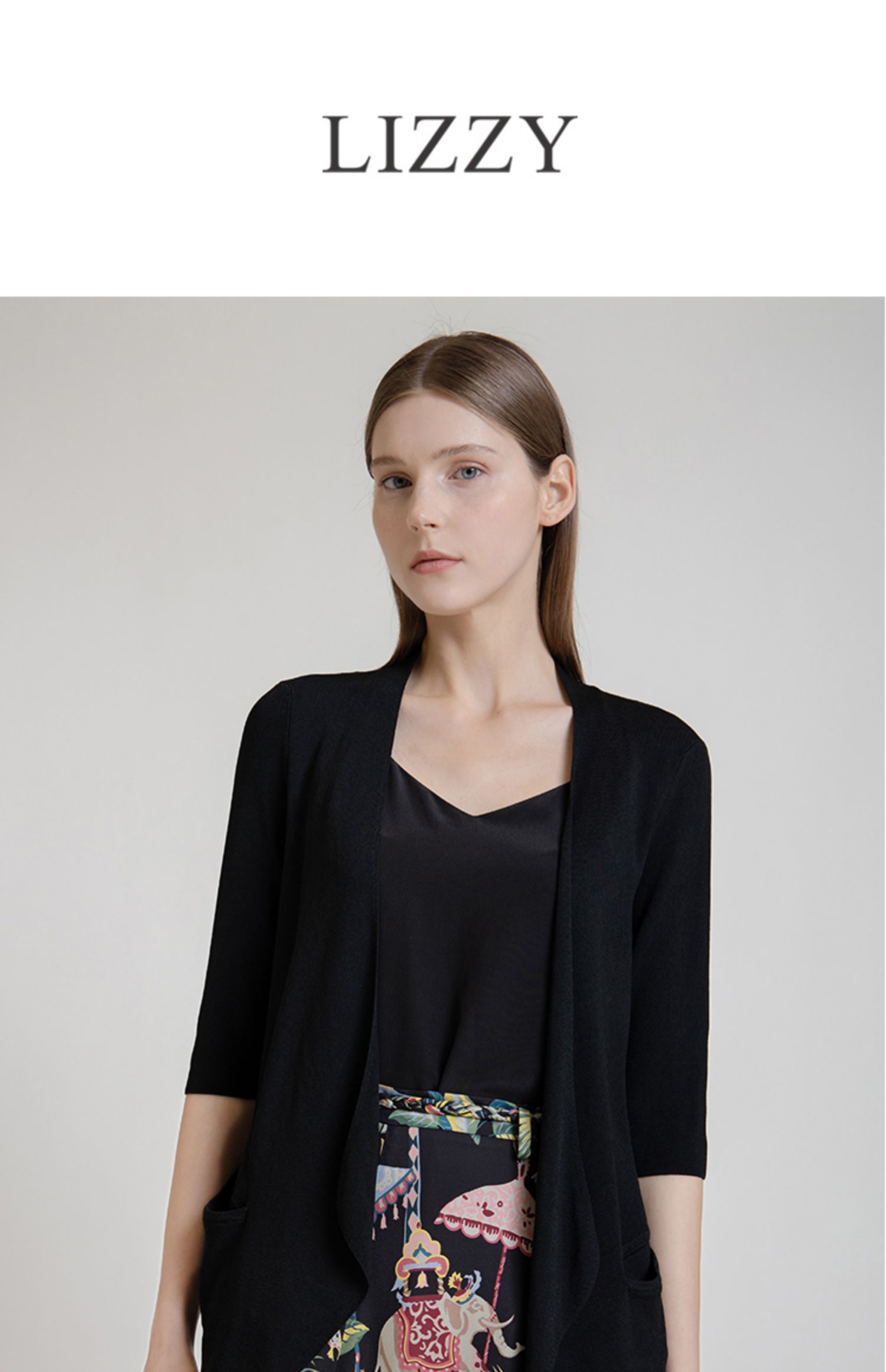 LIZZY 百搭简约通勤冰丝针织七分袖开襟薄款外套6278