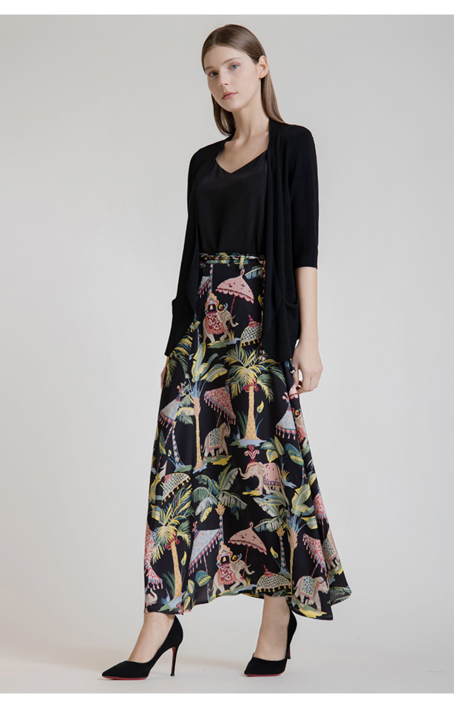 LIZZY 早秋 复古新中式刺绣修身中长款显瘦包臀半身裙7857