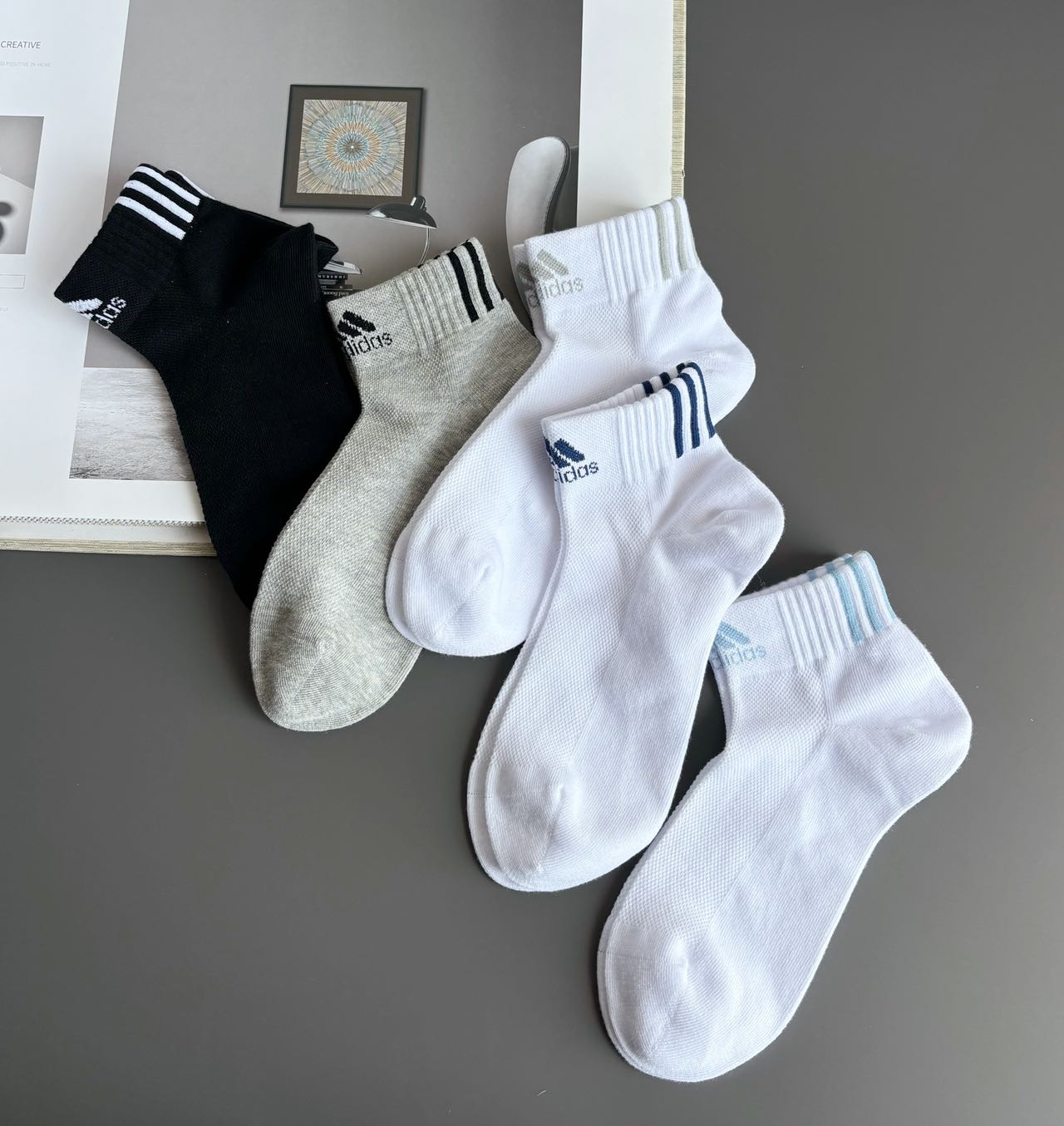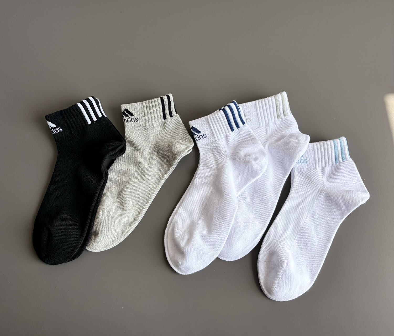 黑白灰三色搭配撞色条纹+logo,简约耐看,适配运动鞋、板鞋、休闲鞋,5双装一周不重样