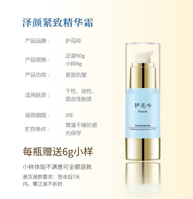 护花呤泽颜紧致精华霜(原:逆时多效精华霜,即蓝晚1)早晚可用 50g/瓶