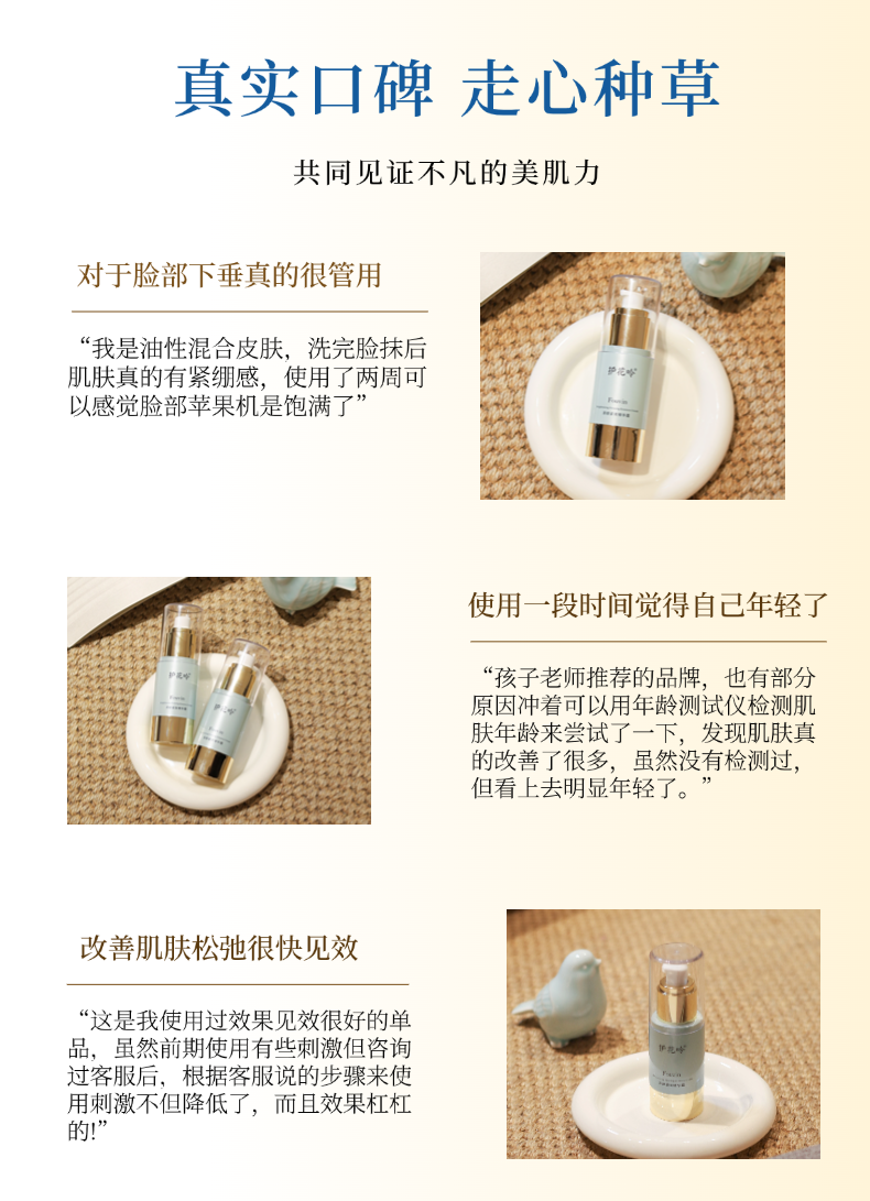 护花呤始创于2002年,一个因爱而生的小众国货品牌,源自于医学家对妻子的爱,为了让生育后的妻子容颜重返年轻,医学家试遍成分研制配方,终于推出了一系列年轻减龄的抗衰老护肤品。(注:效果可测试)