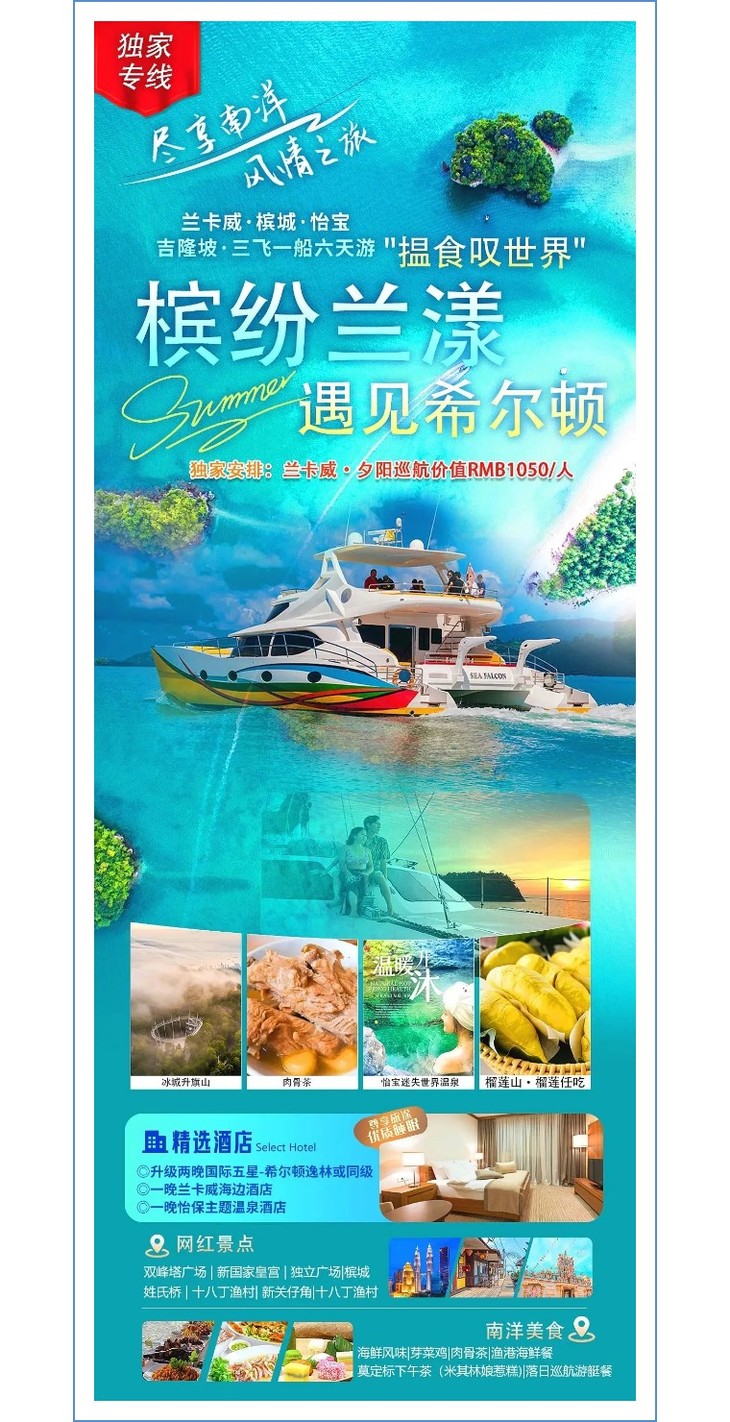 兰卡威独家夕阳巡航专线 | 兰卡威、槟城、怡保、吉隆坡三飞一船6日游【槟纷兰漾·遇见希尔顿 】