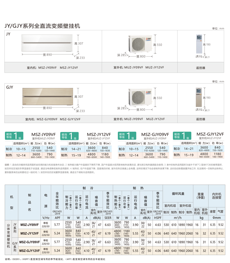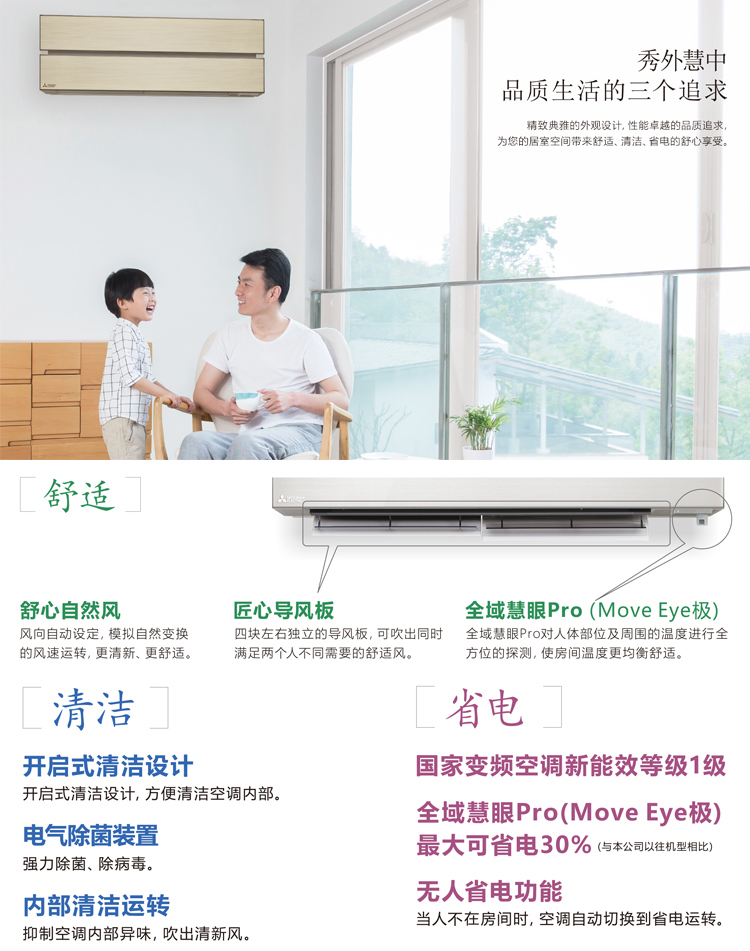 三菱电机新1级能效 1.5匹 变频制暖 空调挂机 独立送风双段式导风板MSZ-GJY12VF
