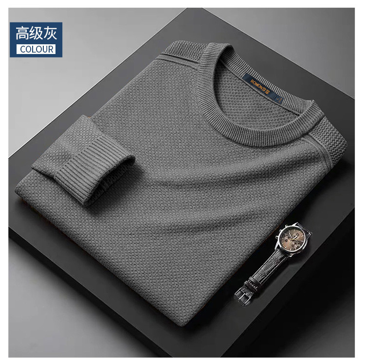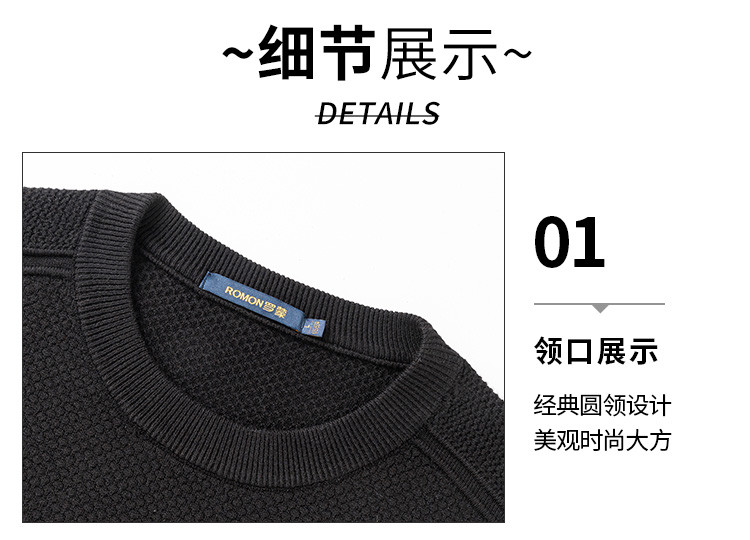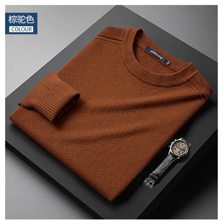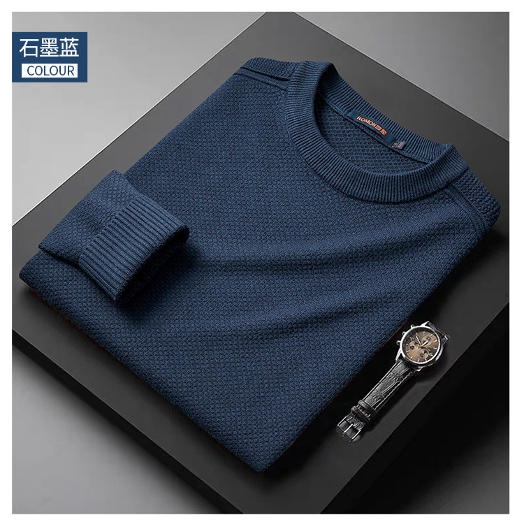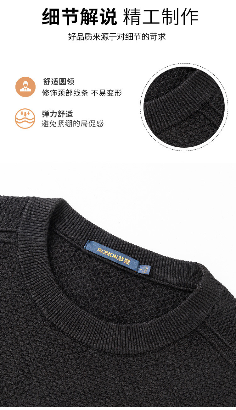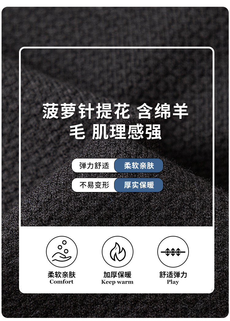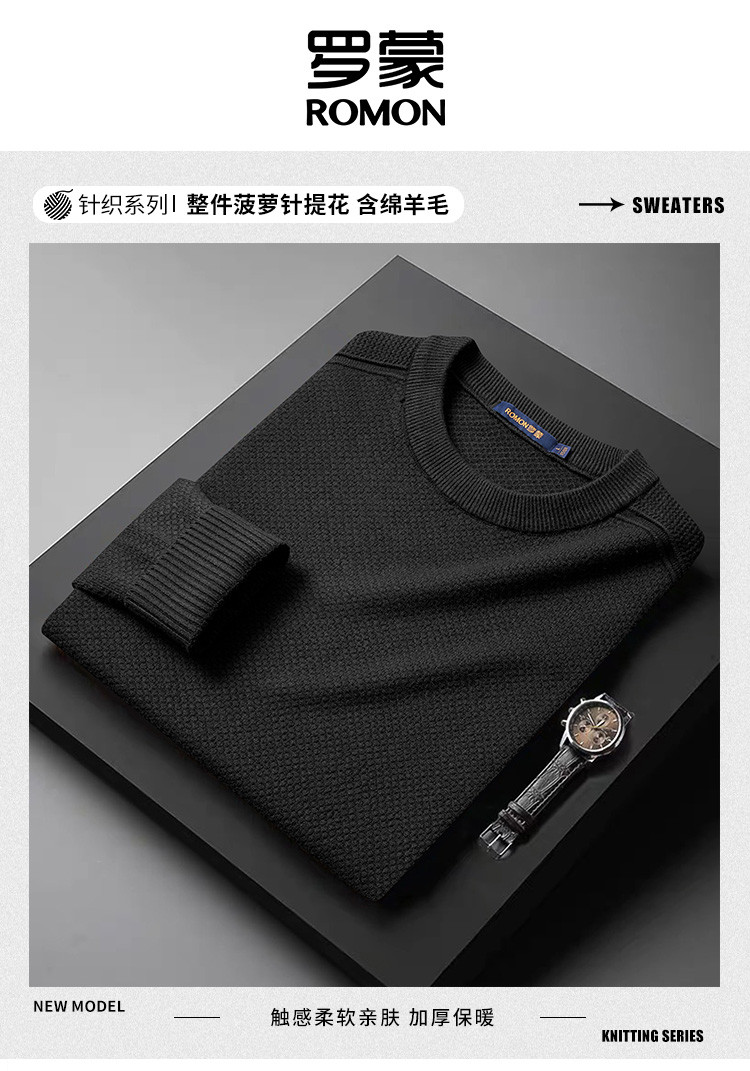 【加厚含羊毛】罗蒙秋冬菠萝提花毛衣男保暖针织衫男舒适打底衫男士毛衣男
