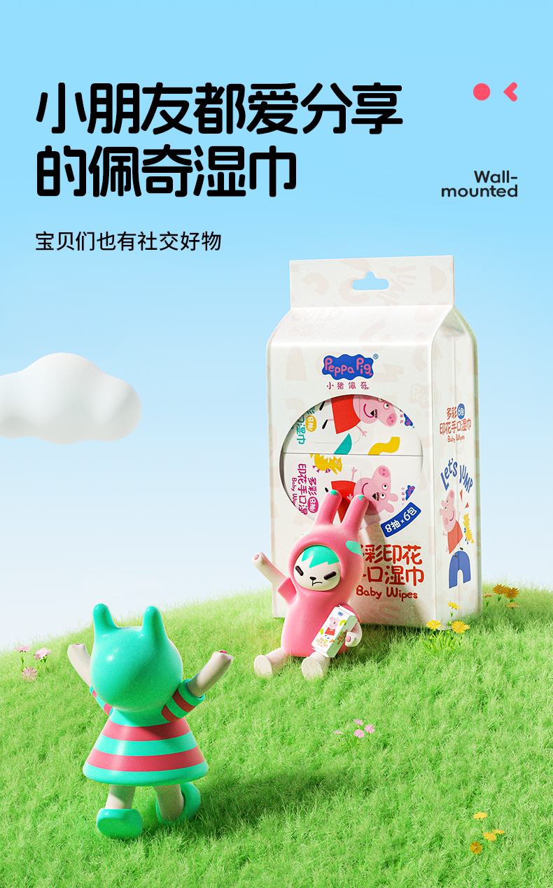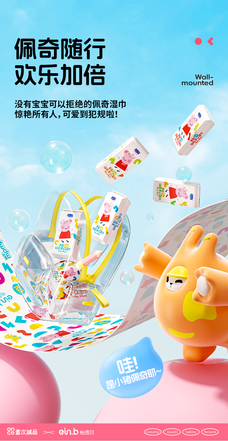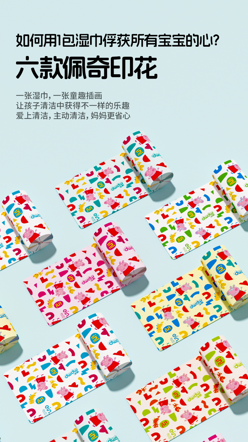 🔥【9.9买1️⃣送1️⃣到手12包!】怡恩贝小猪佩奇印花湿巾纸便携小包婴幼儿童手口专用湿纸巾随身装
