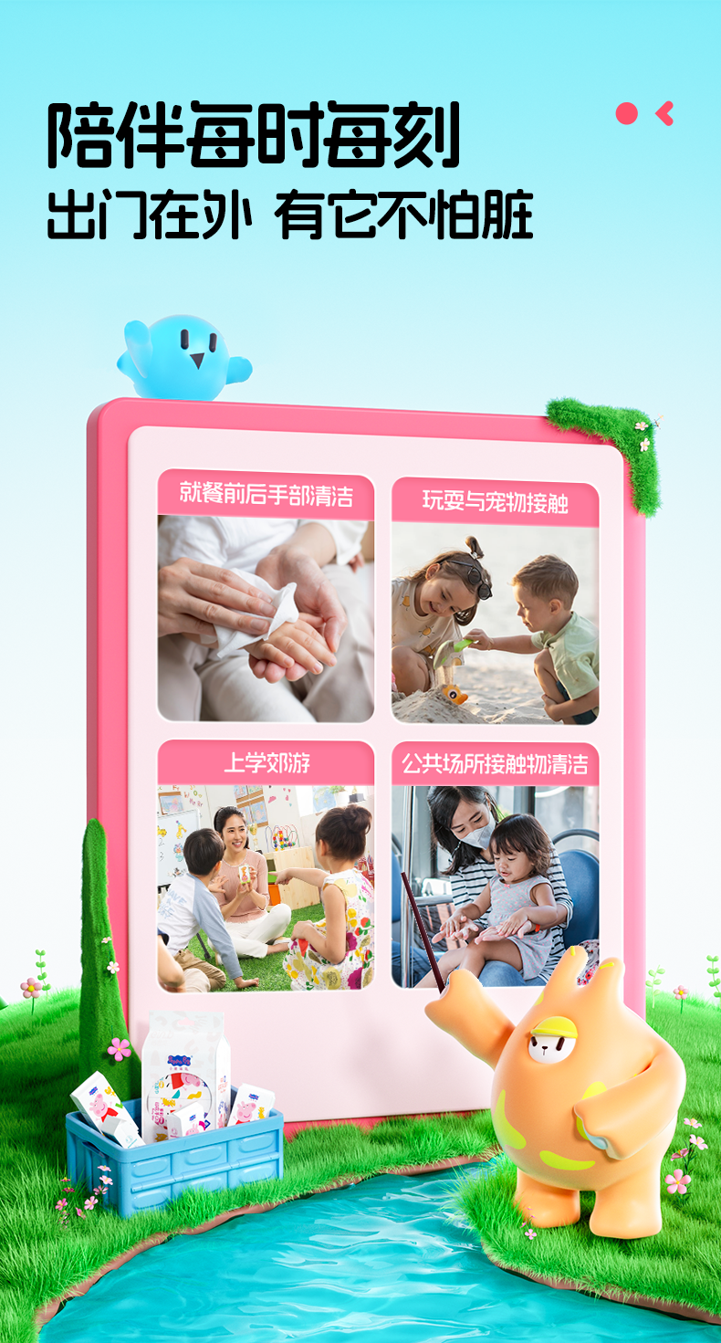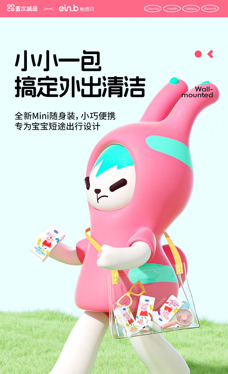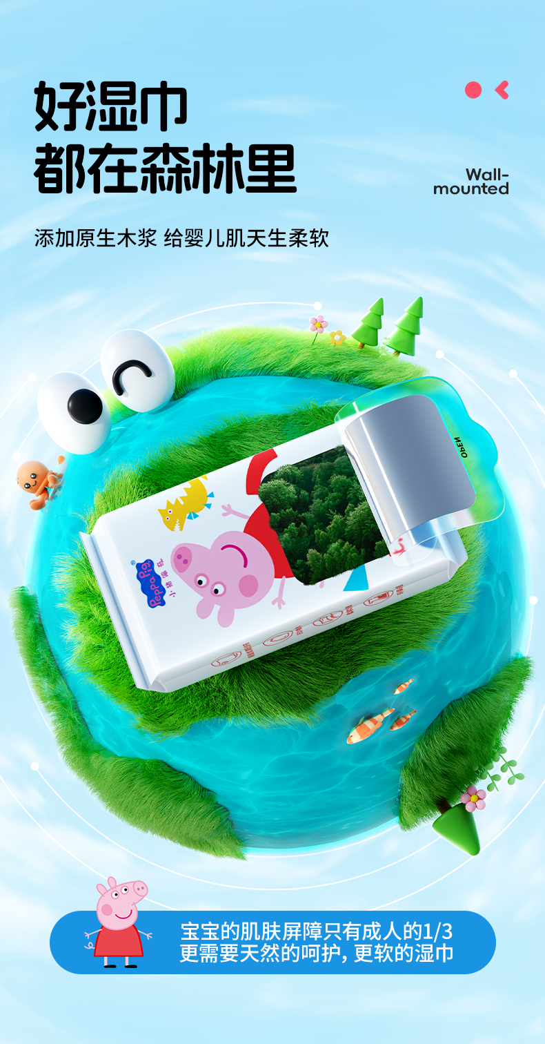 🔥【9.9买1️⃣送1️⃣到手12包!】怡恩贝小猪佩奇印花湿巾纸便携小包婴幼儿童手口专用湿纸巾随身装