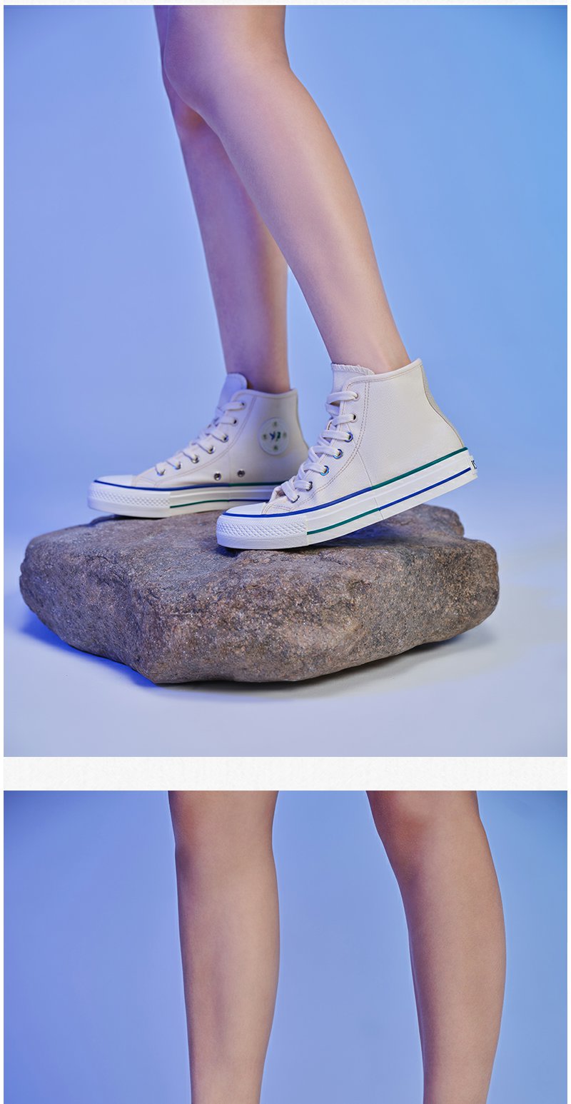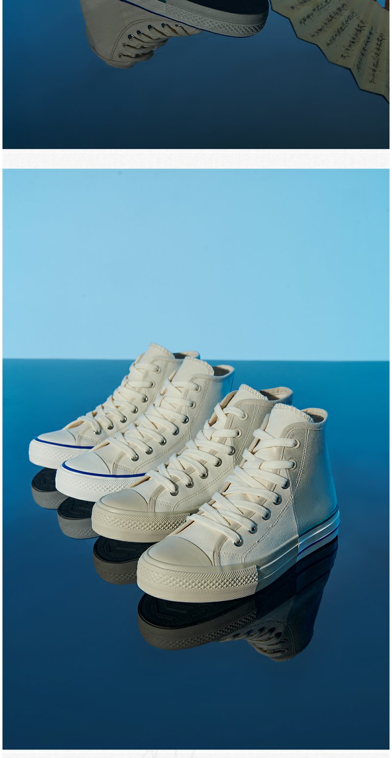 istep2023春夏拼接高帮情侣帆布鞋男女同款拼色解构帆布鞋