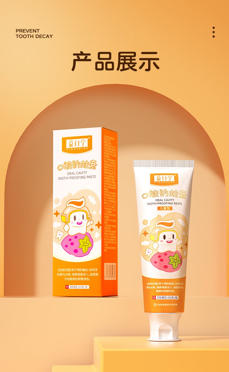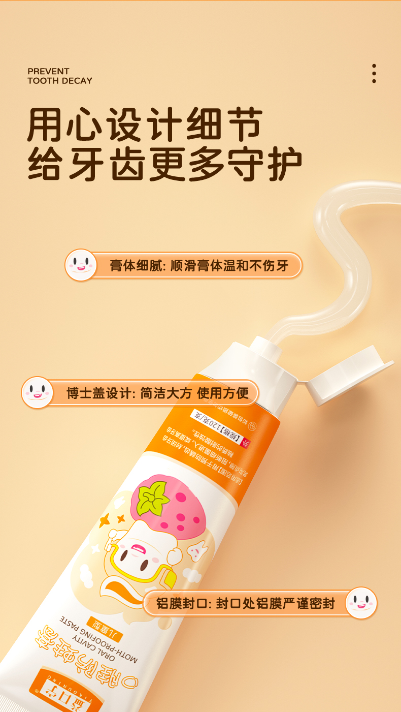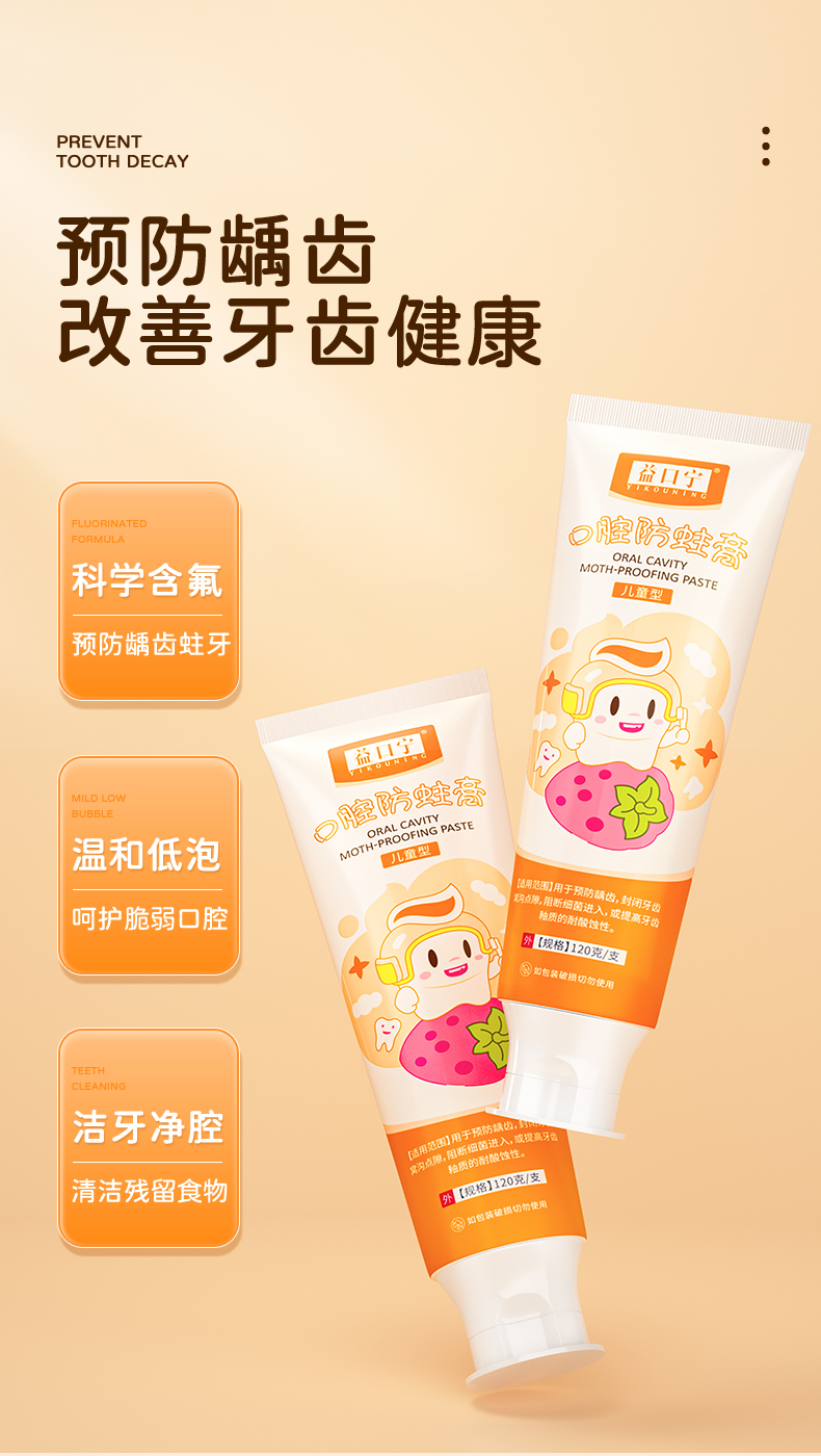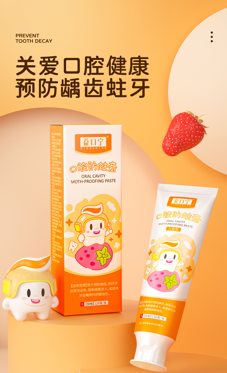 益口宁口腔防蛀膏儿童牙膏含氟防蛀婴儿0到3-6-12岁专用牙膏宝宝防龋齿换牙期
