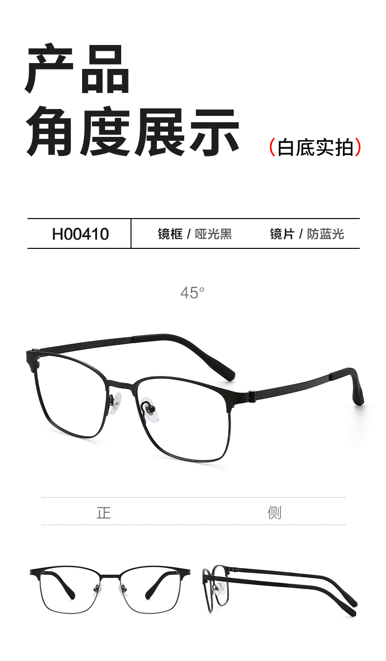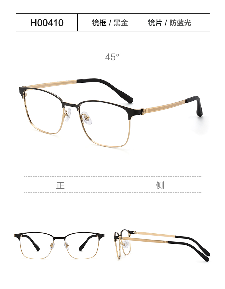 普莱斯光学镜框H00410 轻奢商务框 经典框型 痞帅潮款 合金+硅胶材质 三色可选