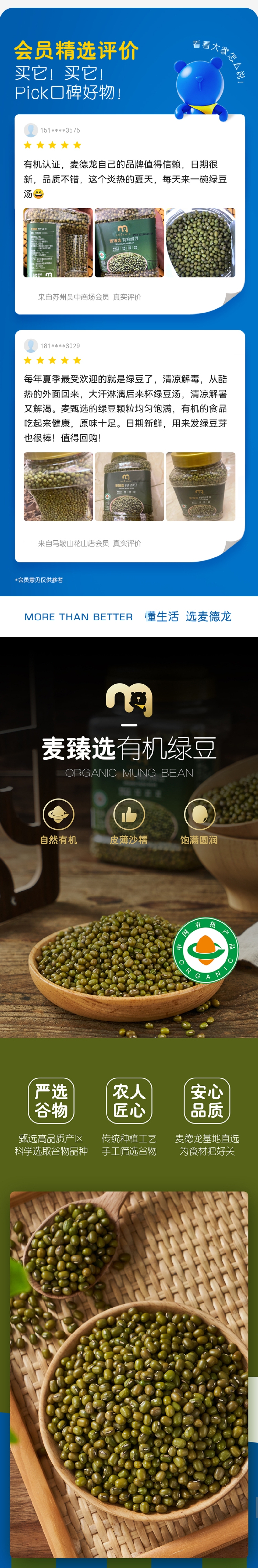 【MDL】麦臻选有机绿豆1.2kg 杂粮