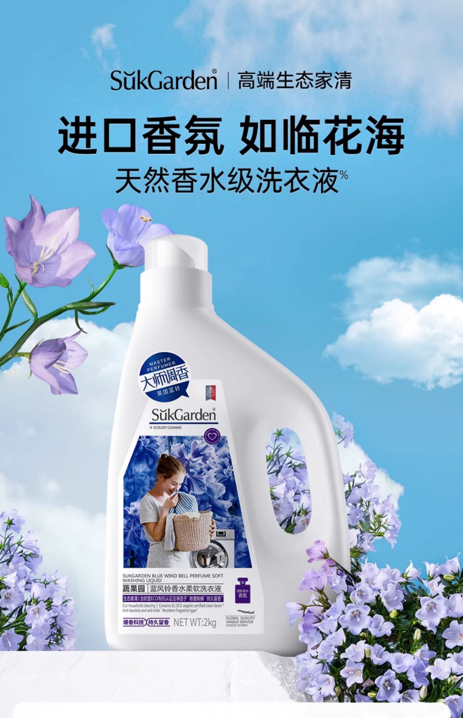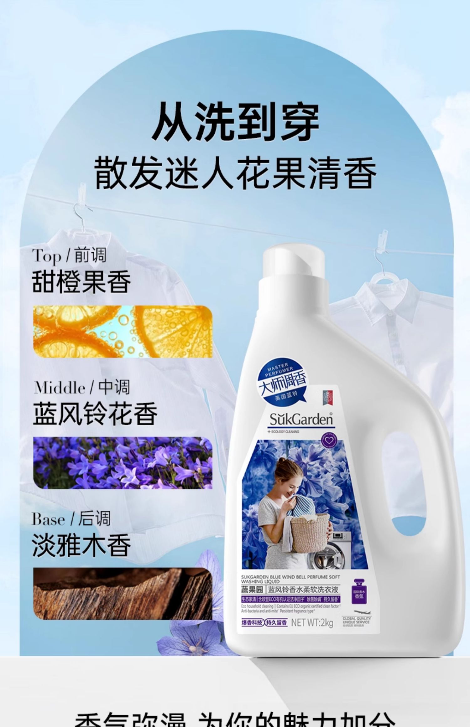 【蔬果园蓝风铃洗衣液】持久留香家用补充袋装官方旗舰店正品香水