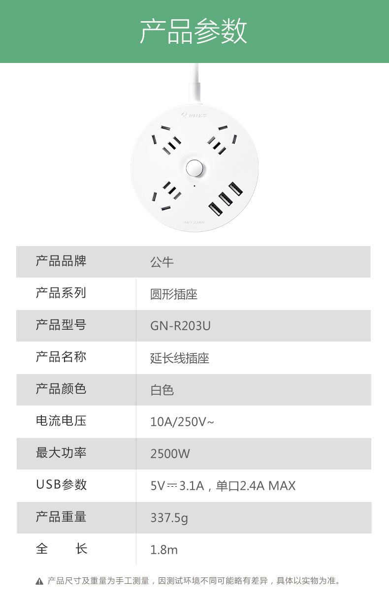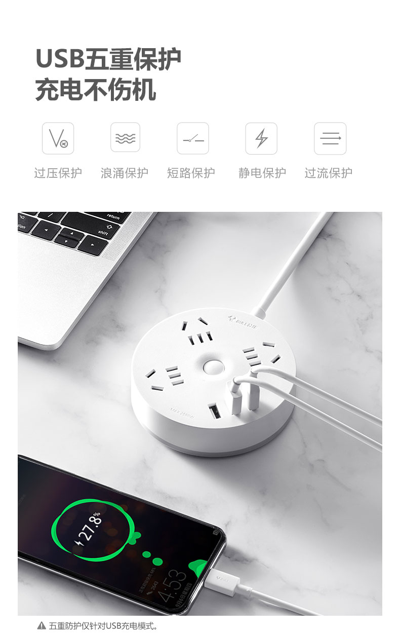 公牛BULL圆形USB插座R203U