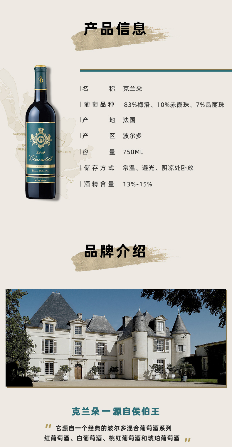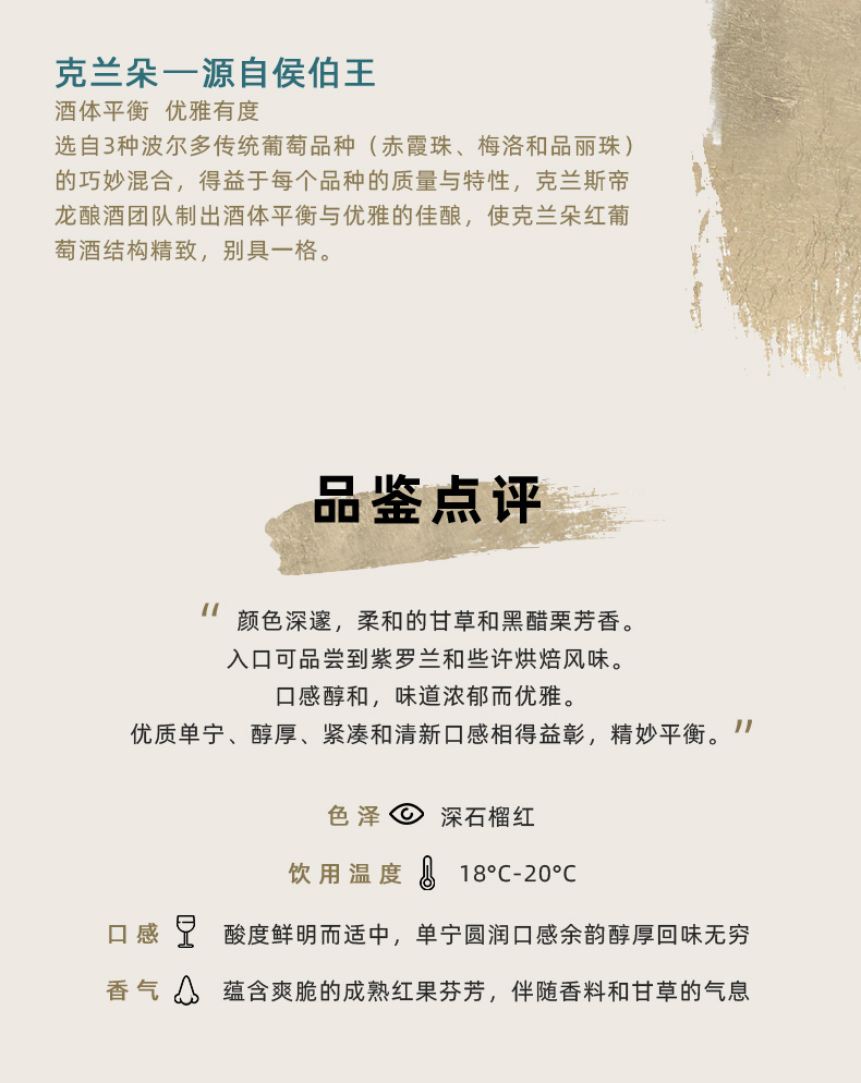进口法国波尔多AOC侯伯王克兰朵红葡萄酒750ml官方包邮精选葡萄酒