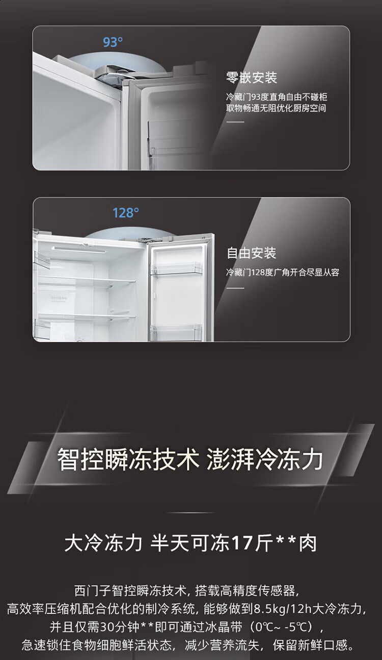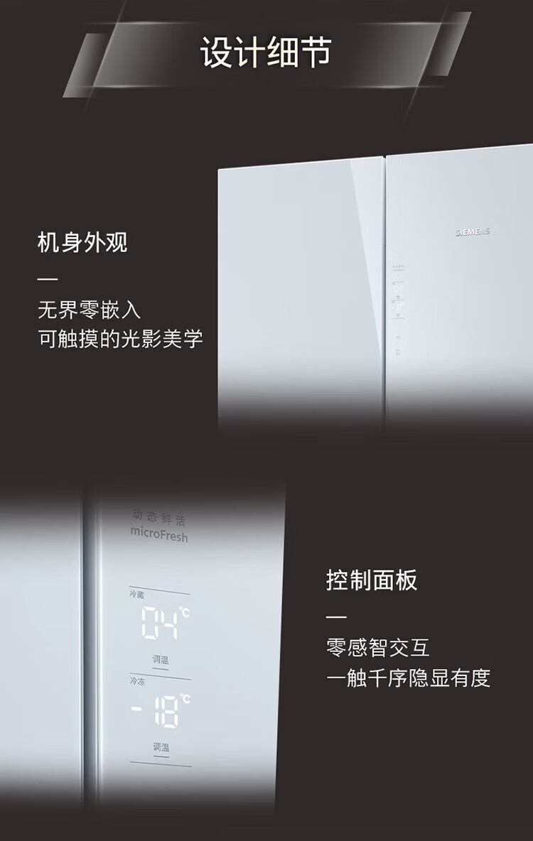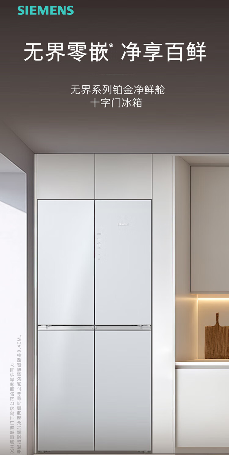 西门子(SIEMENS)大容量十字对开四门超薄可嵌入冰箱 铂金抗菌净味分区精储变温保鲜白色玻璃面板 以旧换新补贴 【新品无界零嵌558升】KC88BEA63C