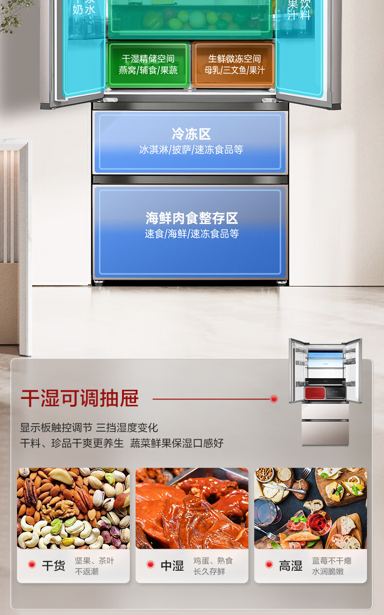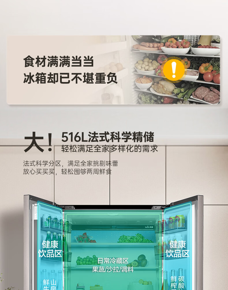 容声(Ronshen)WILL养鲜平嵌516升法式多门四开门超薄嵌入式电冰箱家用一级变频无霜 BCD-516WKM1MPGZA商场同款