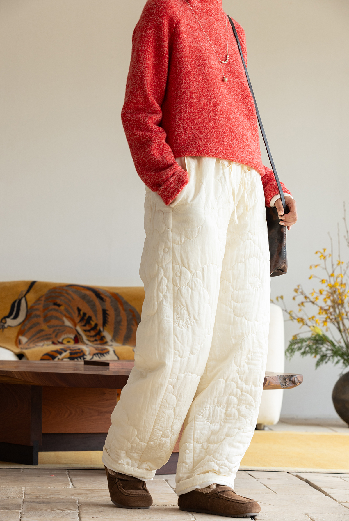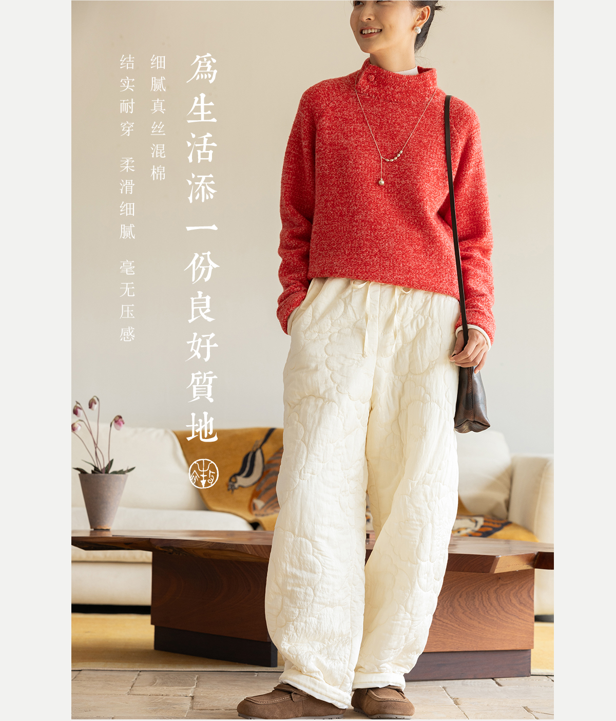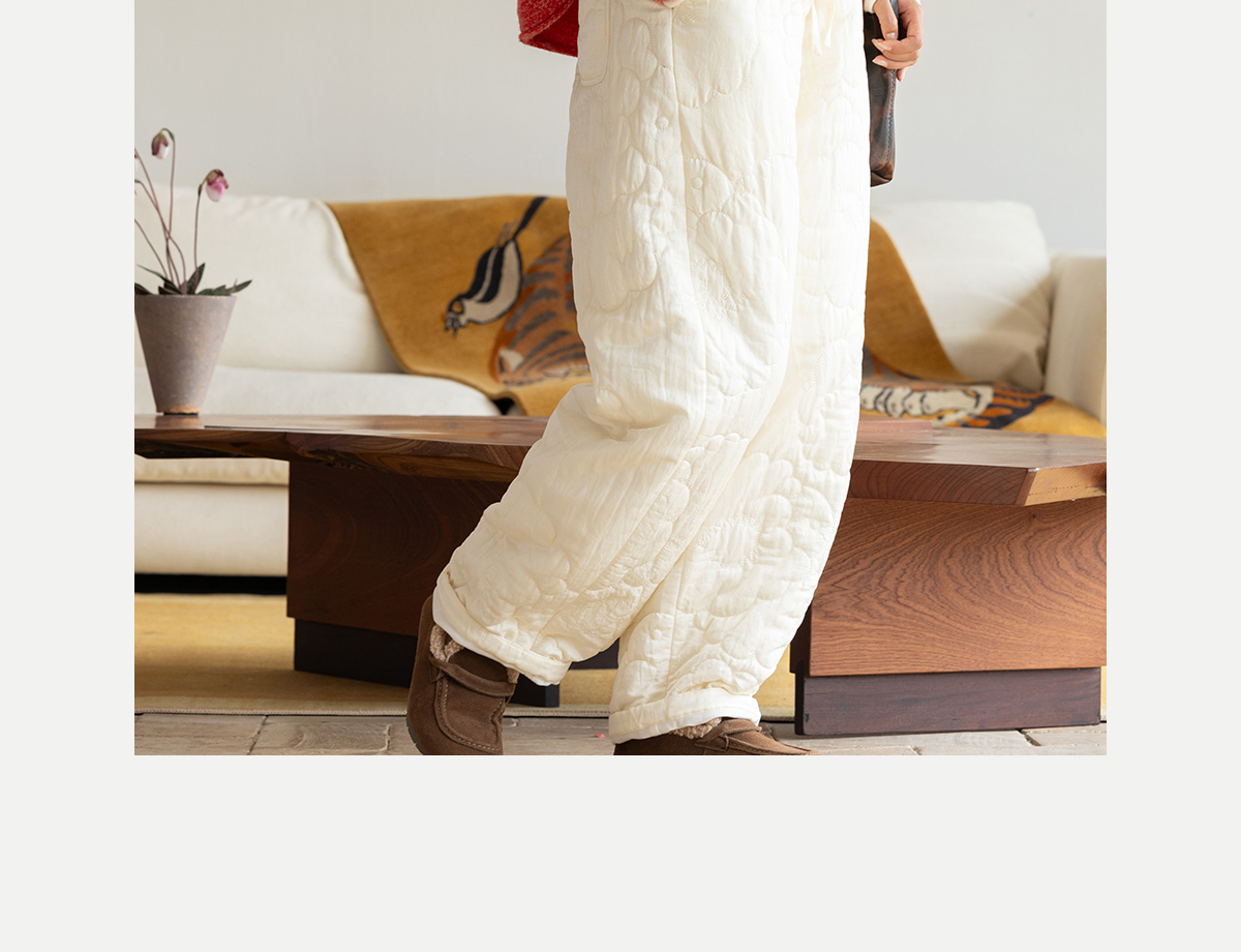 牧衣游原创 16姆米丝棉涧棉裤子冬季舒适保暖百搭休闲裤 暖云天
