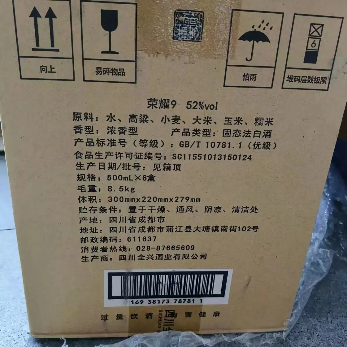 全兴原浆荣耀9 52度浓香型纯粮白酒 整箱500ml*6瓶包邮