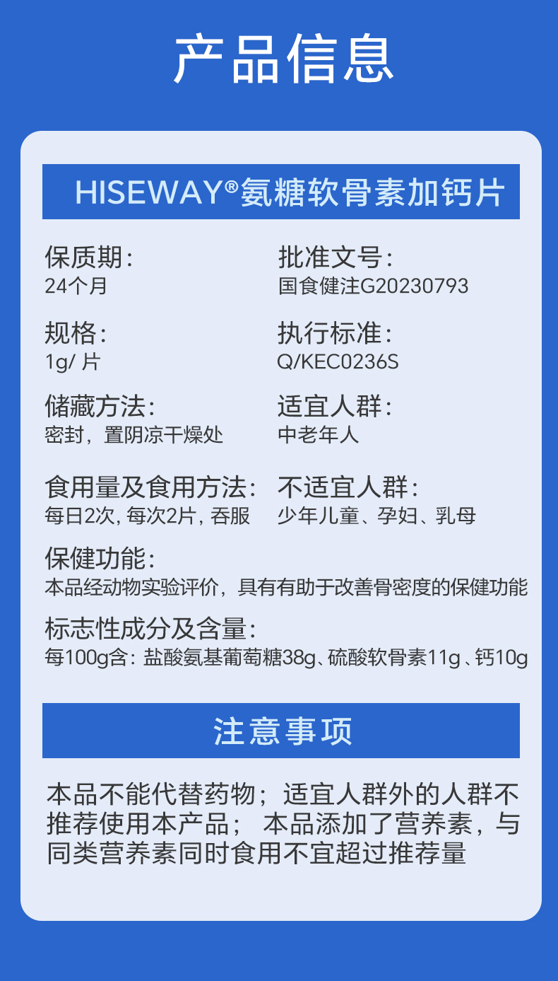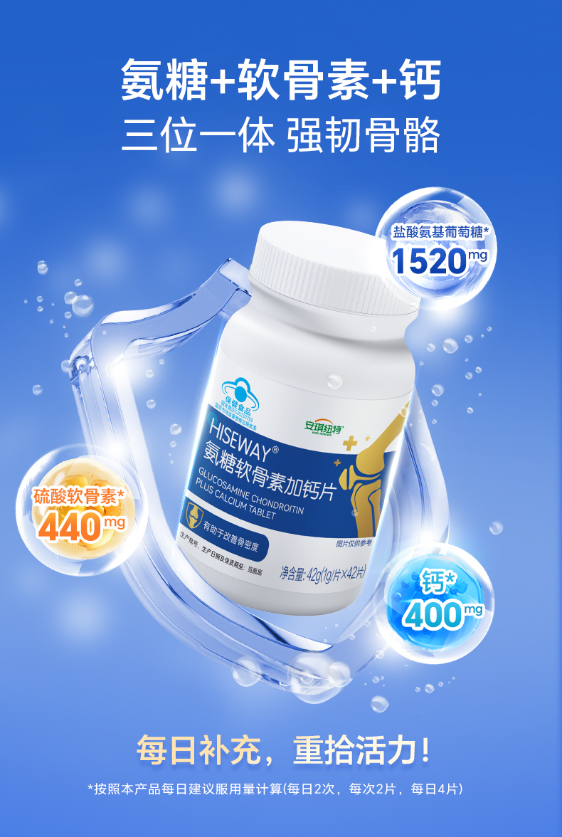 HISEWAY氨糖软骨素加钙片42粒 全新升级 更高含量