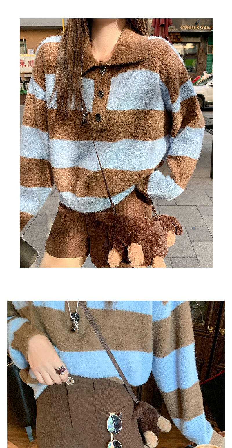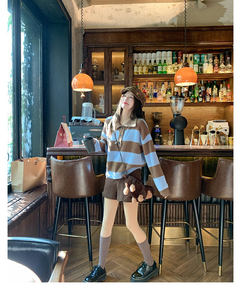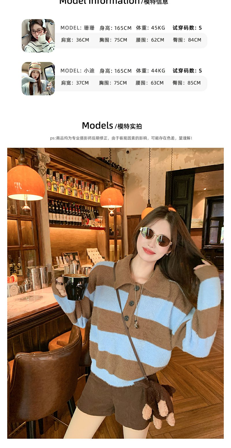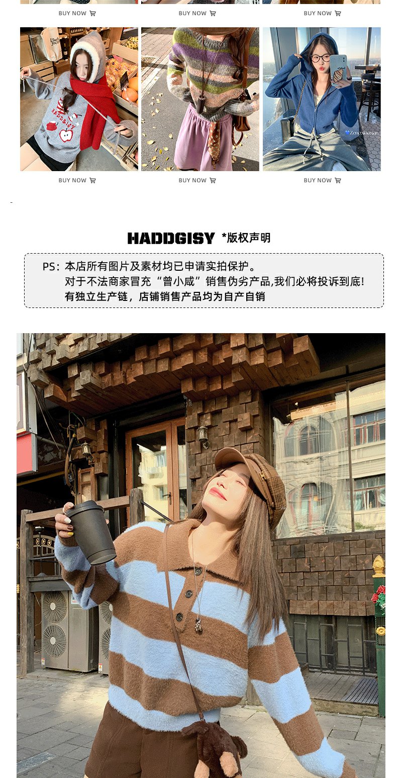 <曾小咸推荐>撞色条纹POLO领毛衣
