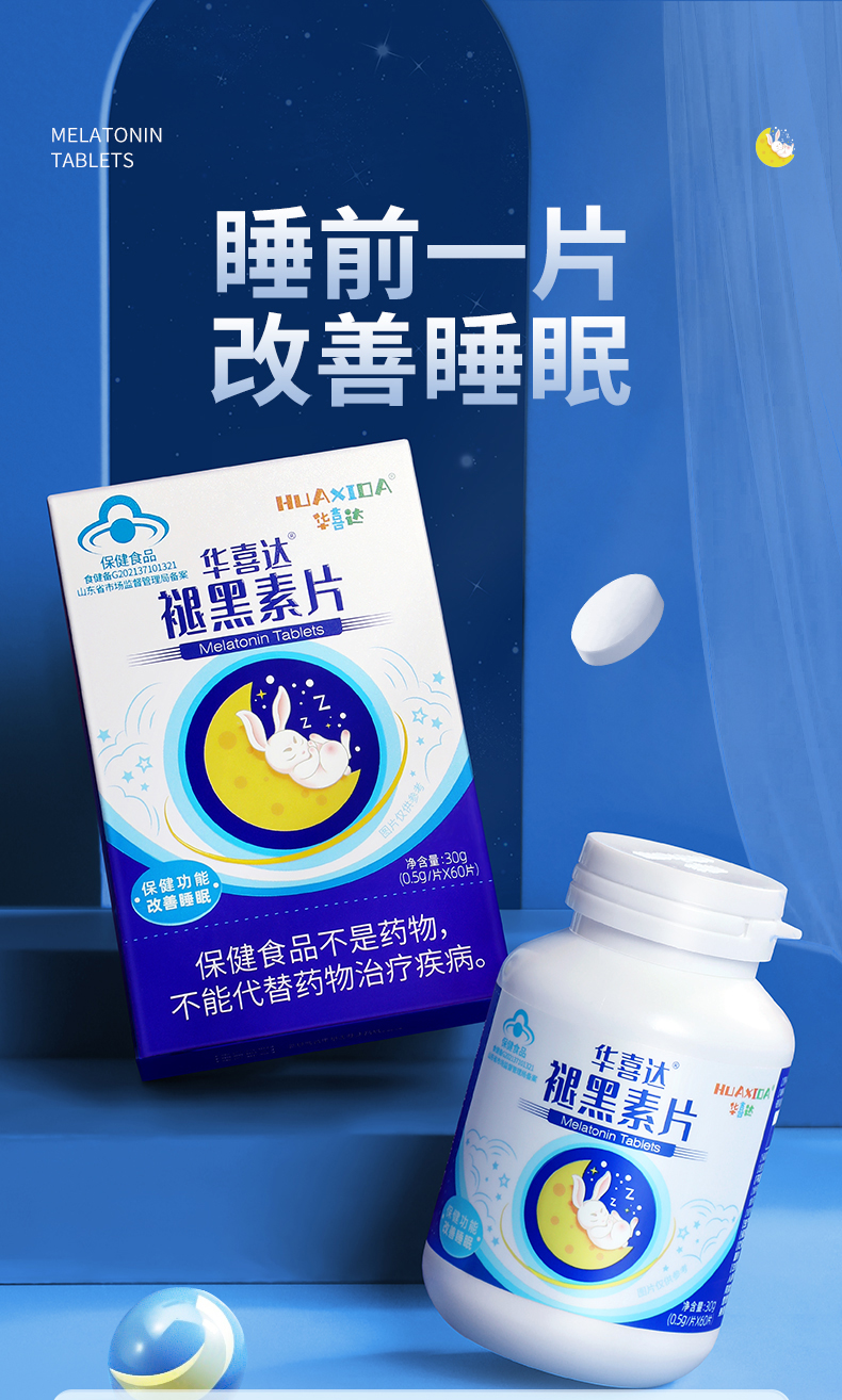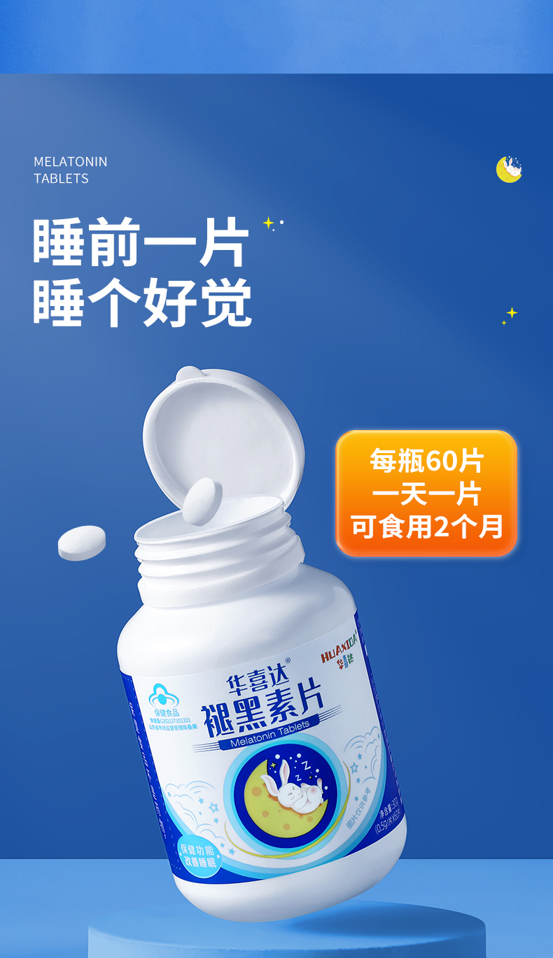 华喜达褪黑素片60片改善睡眠男女成人退黑素维生素B6官网旗舰店正品