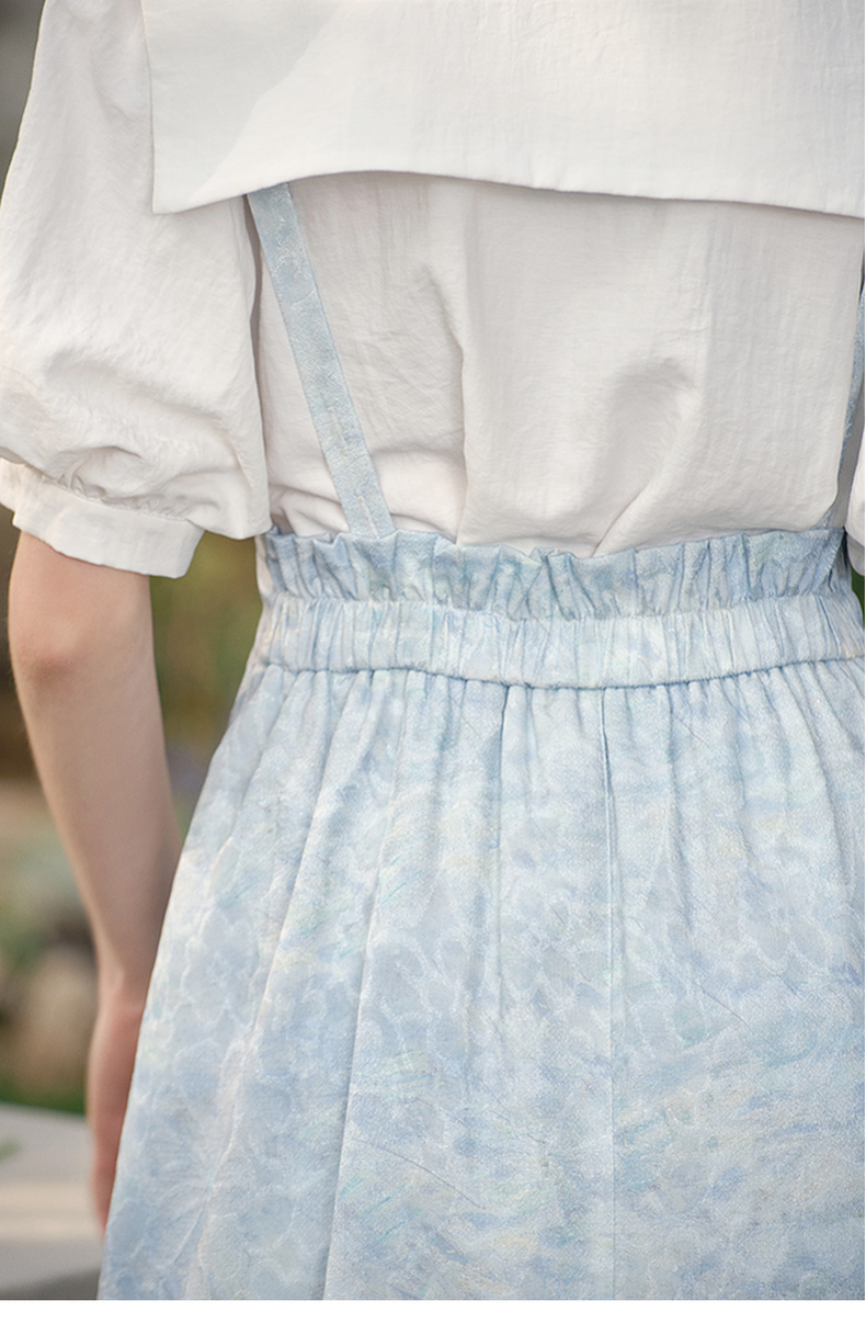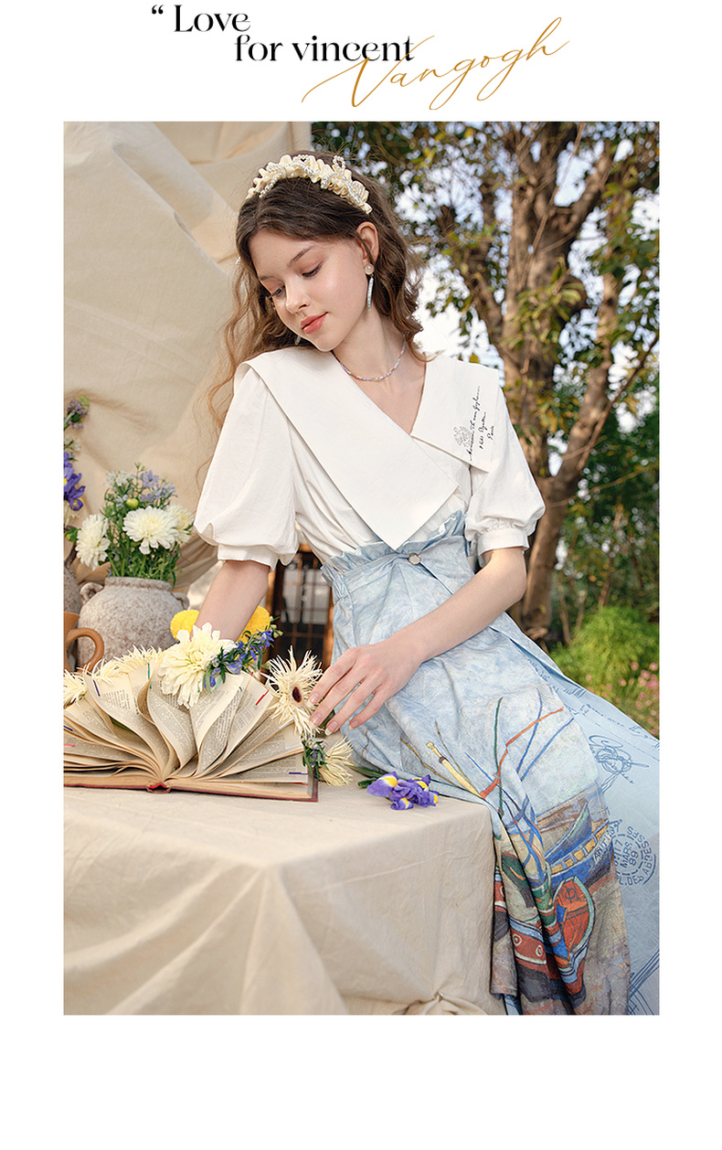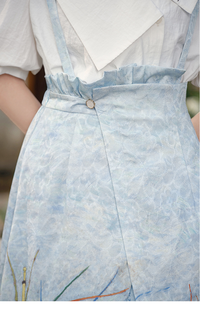 两三事梵高文艺 云汐海海 2025春季新款复古印花背带裙高腰半身裙S25CKB326