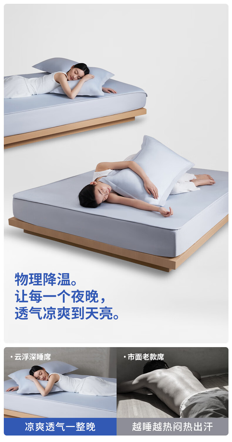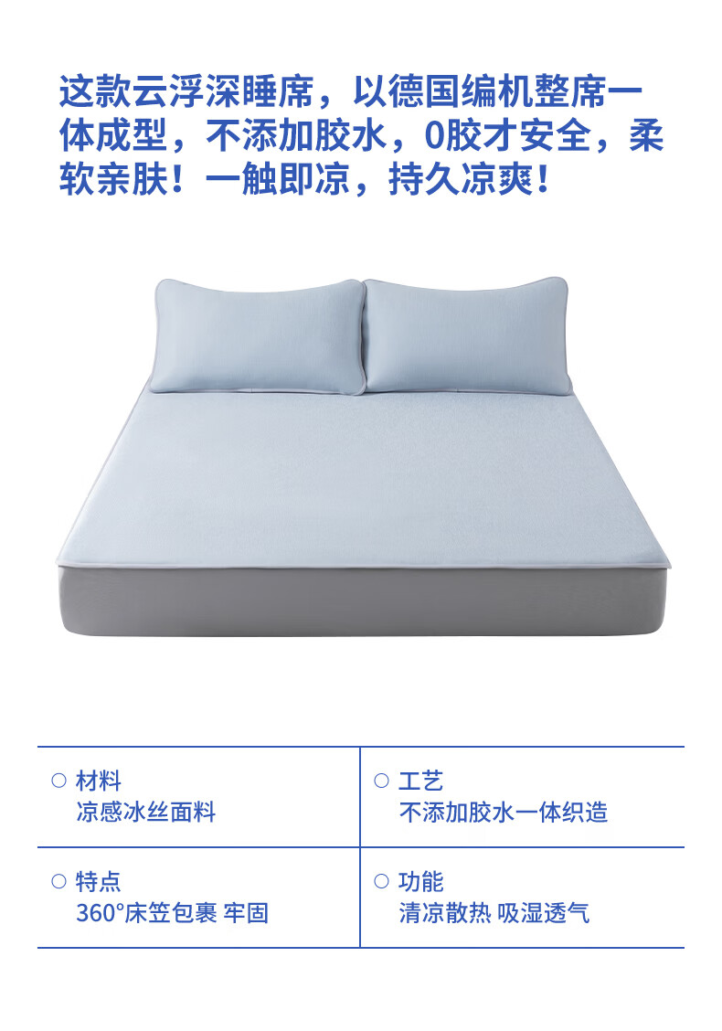 【山姆同款0胶软凉席】丝享花纱双织一体织造软凉席家用双人0胶A类柔软凉爽 雅意灰 180cm*200cm