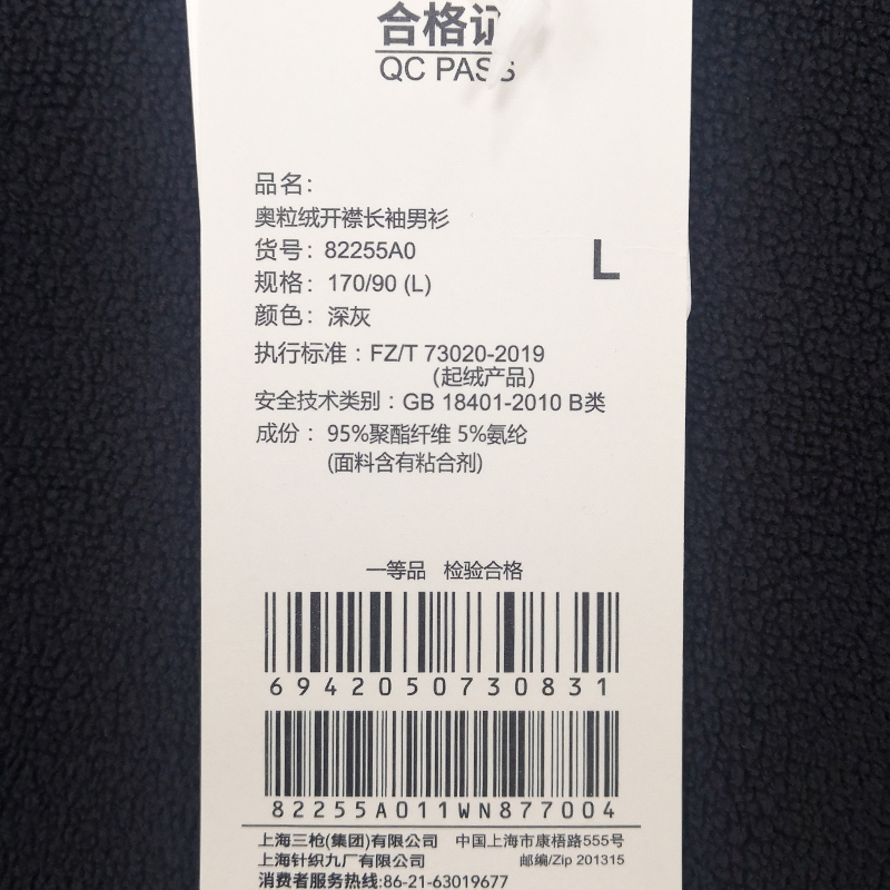Threegun三枪 【奥粒绒】开襟男士长袖衫-82255A011