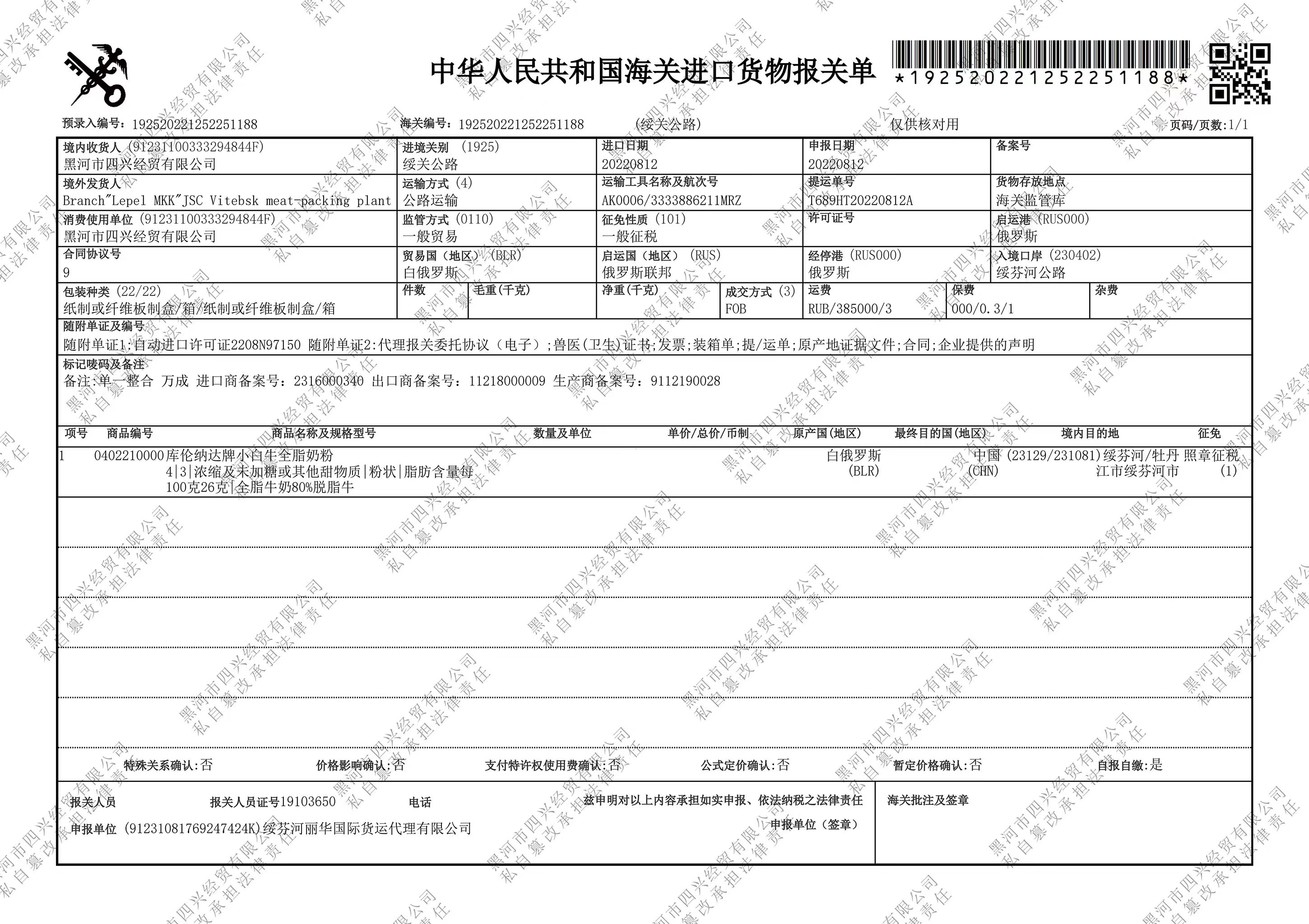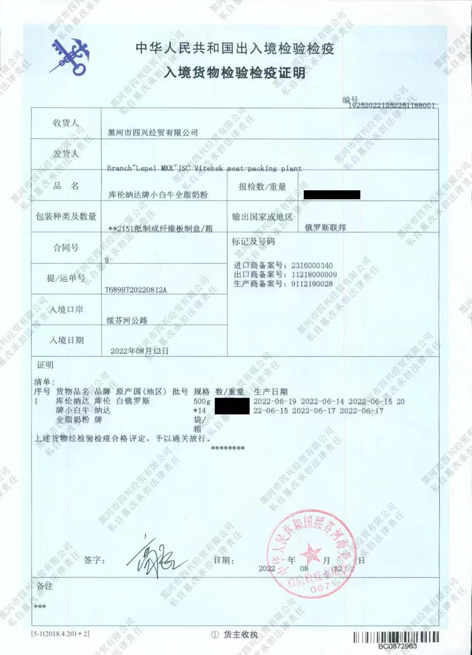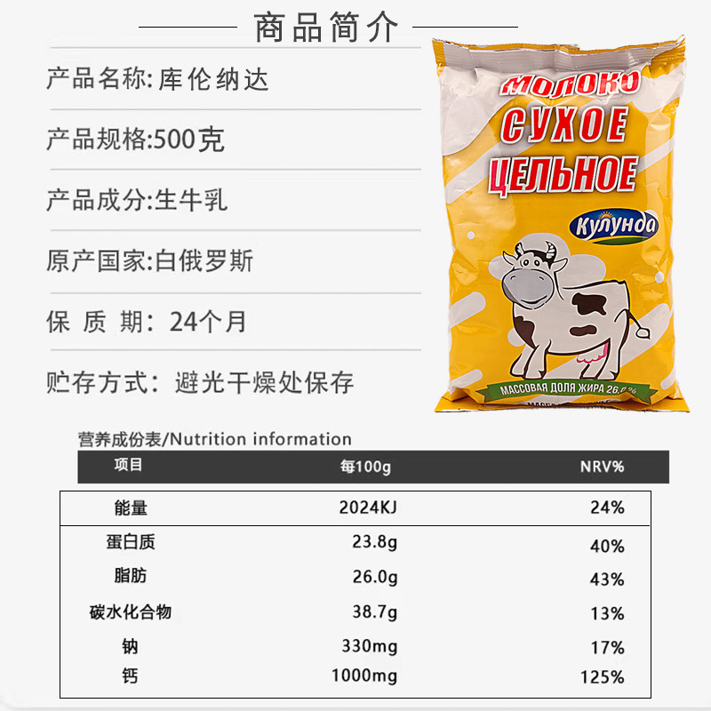 【中欧班列精选】俄罗斯品牌 库伦纳达小白奶牛生牛乳粉全脂高钙无加糖速溶500g/袋 成人奶粉