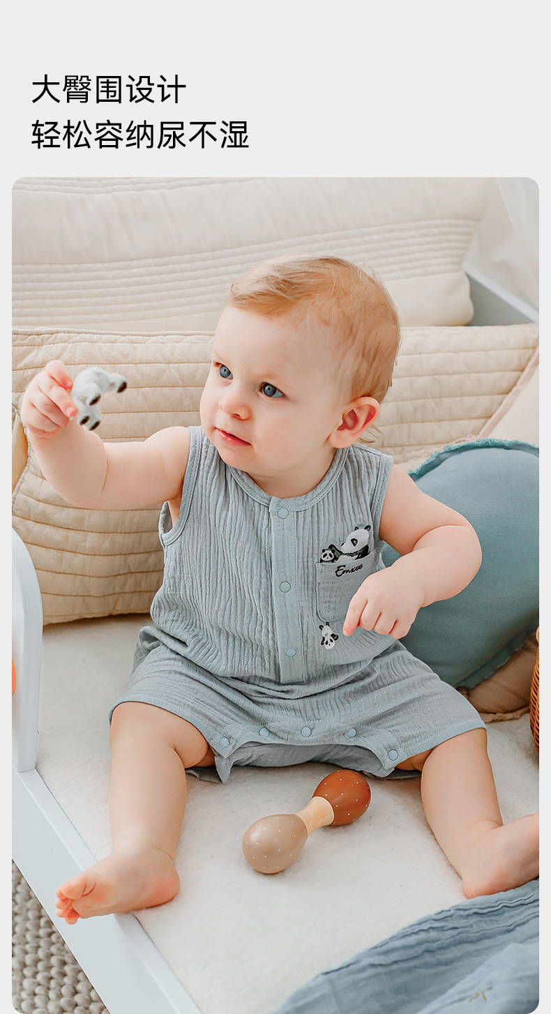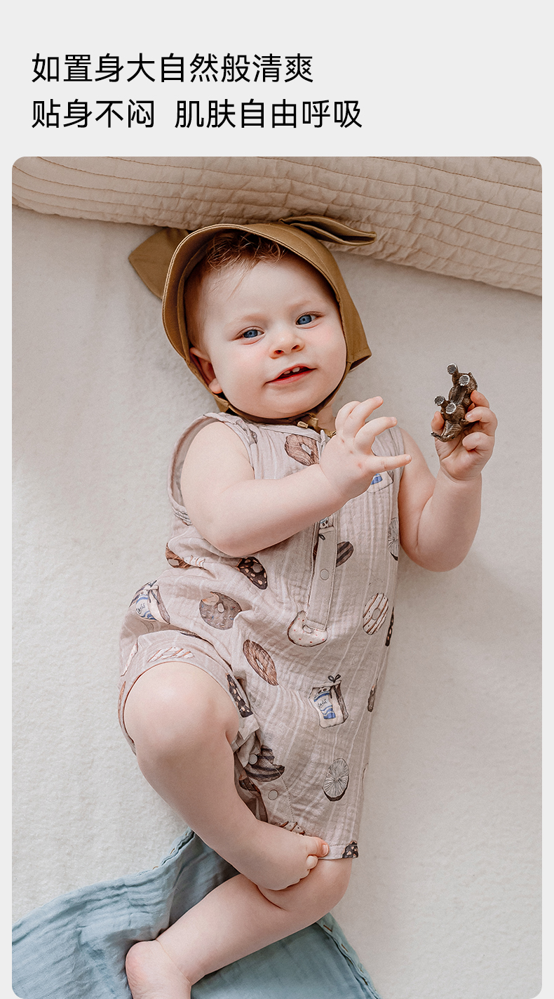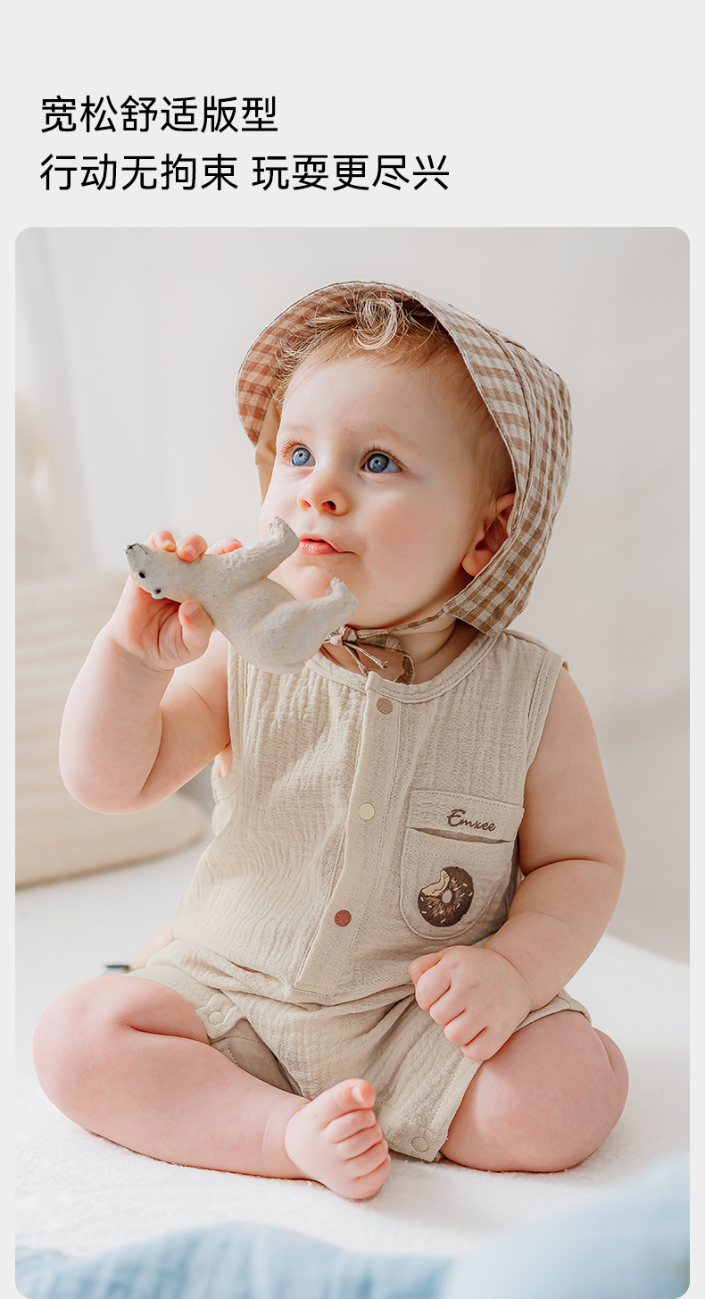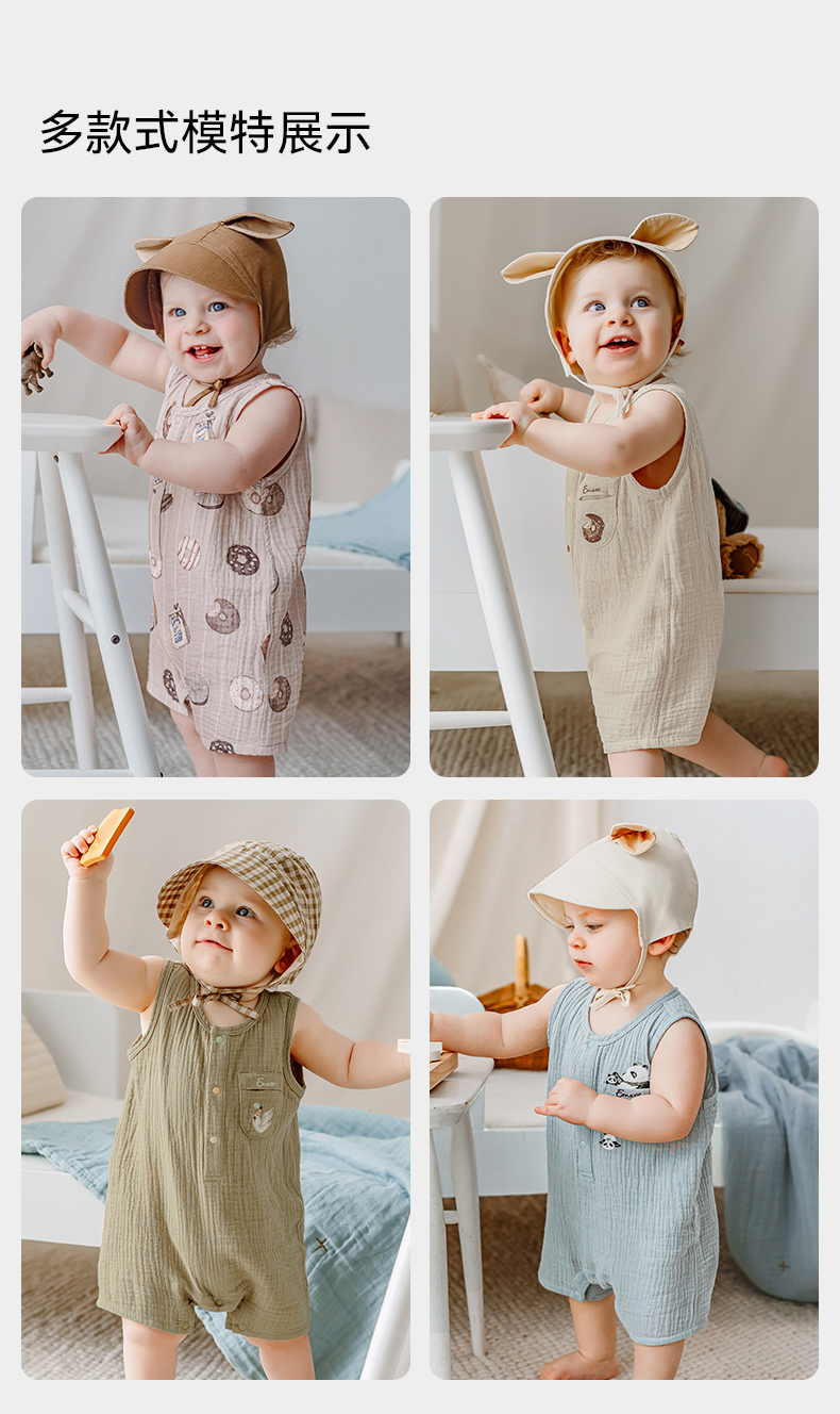 【宝宝服饰】嫚熙男女童连身衣无袖连体透气夏季新款爬服可爱哈衣