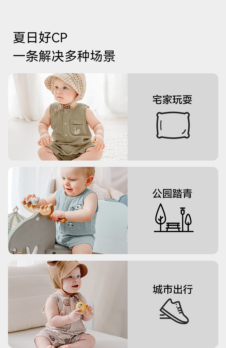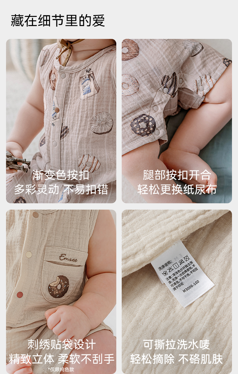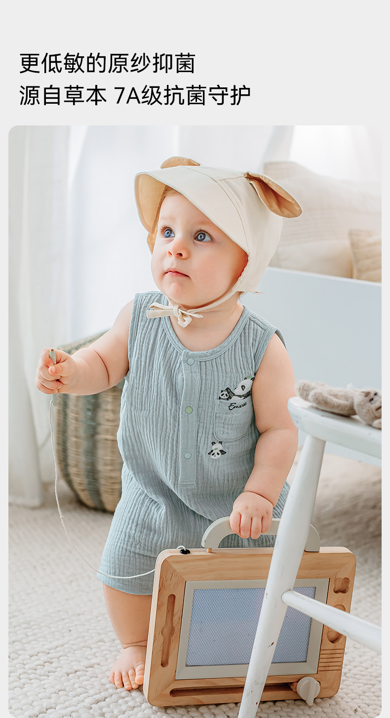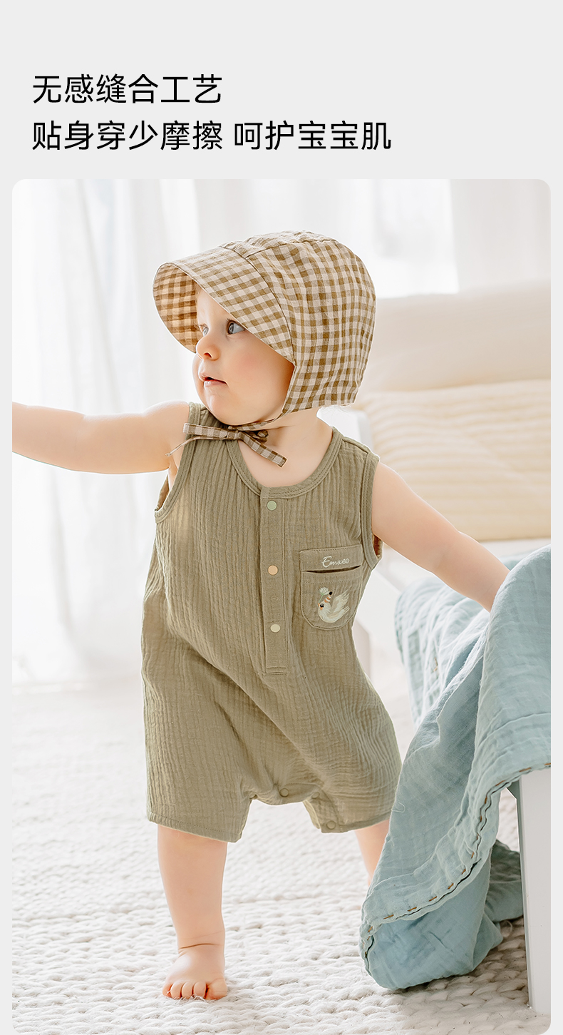 【宝宝服饰】嫚熙男女童连身衣无袖连体透气夏季新款爬服可爱哈衣