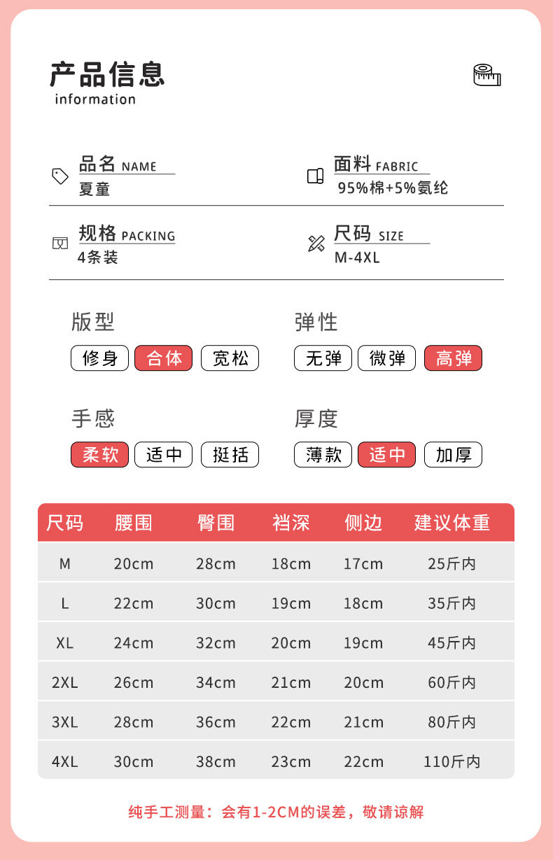 【4条】夏童儿童A类纯棉内裤 中小童四角裤 顺滑舒适不夹小PP