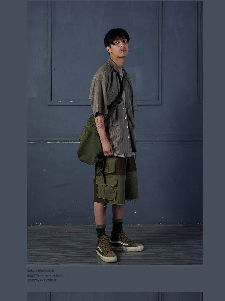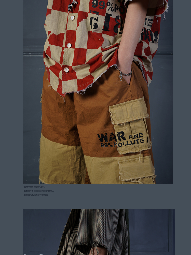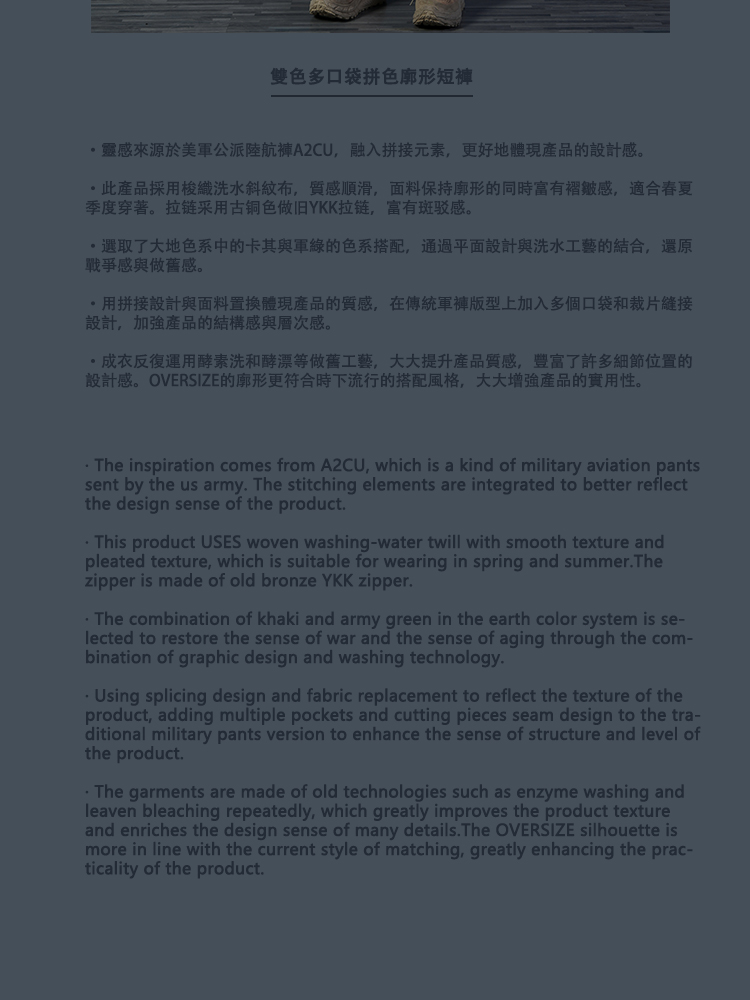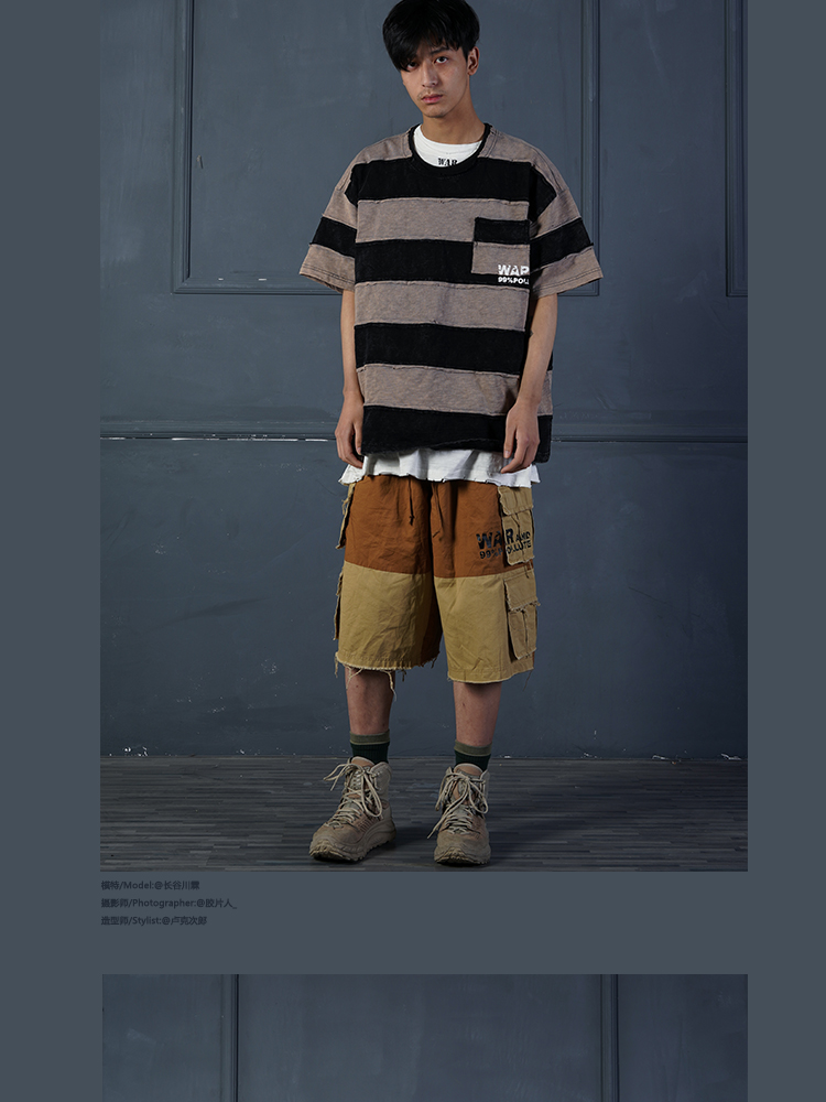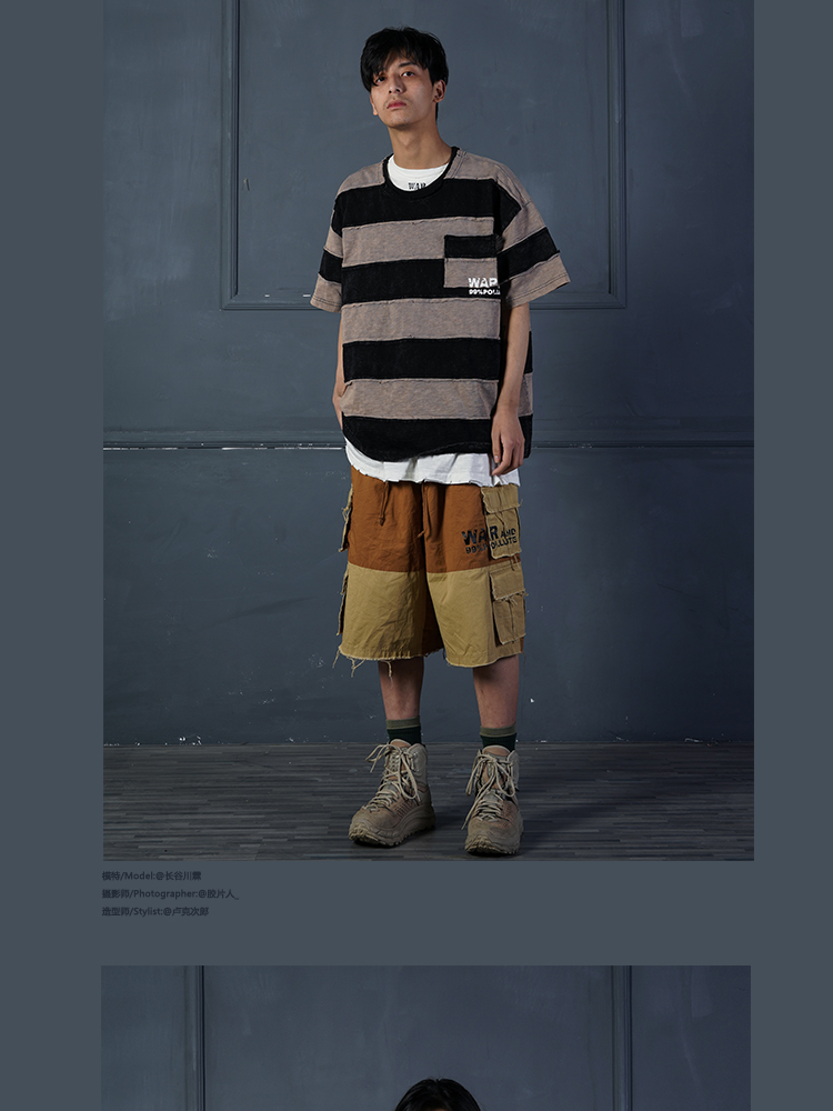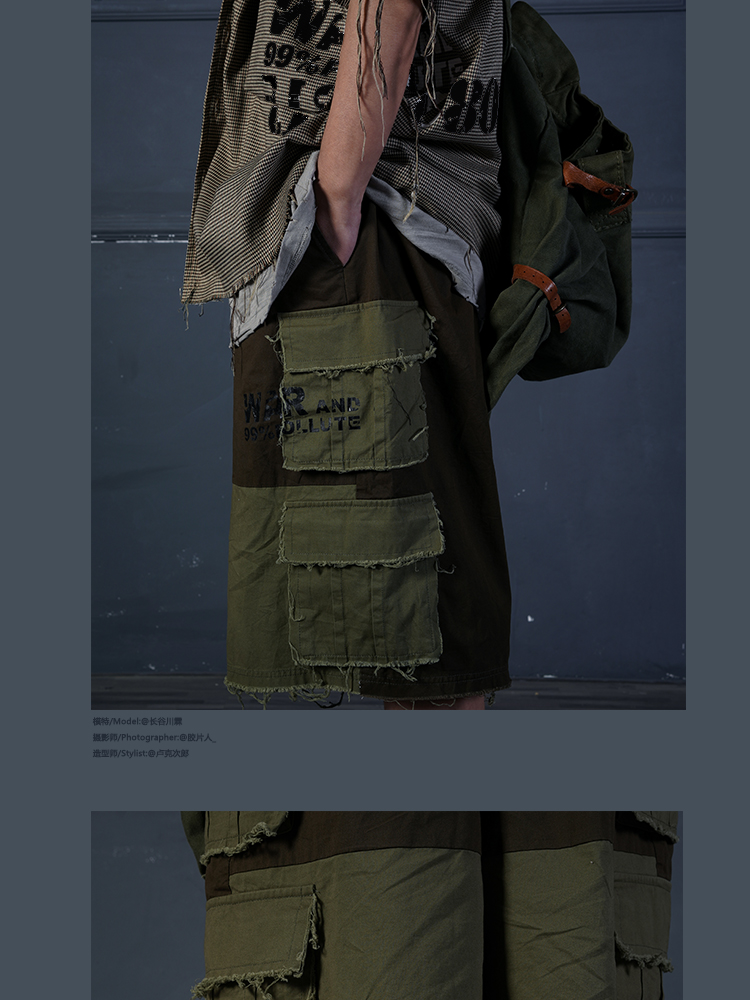 POH 19SS多口袋水洗結構拼色廓形短褲男夏季潮流雙色入潮牌五分裤
