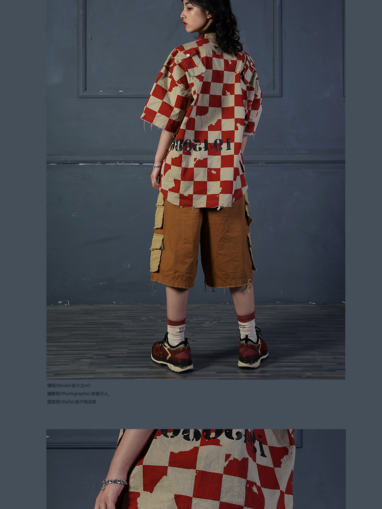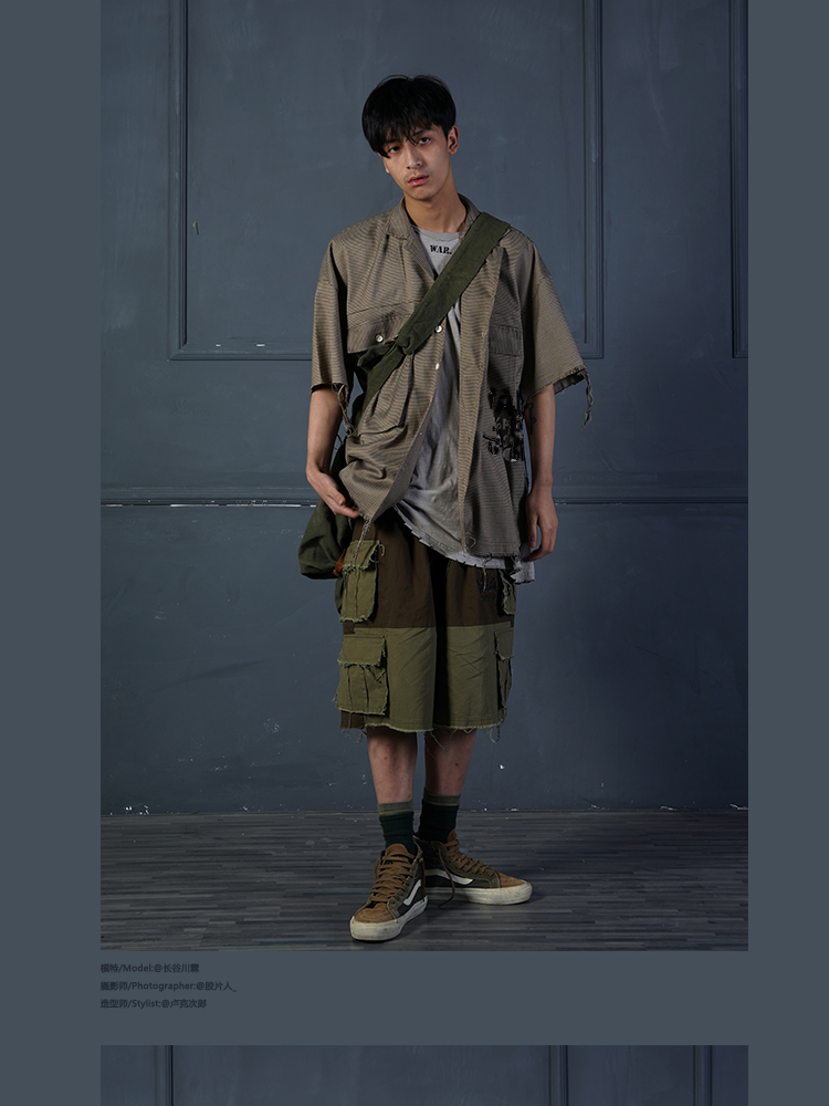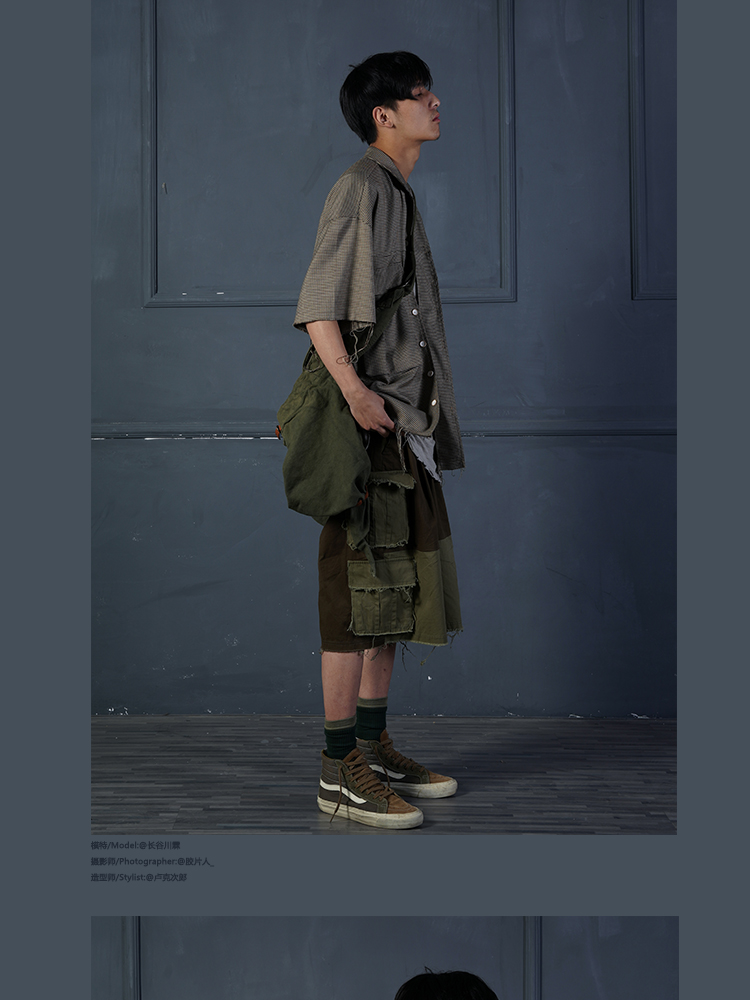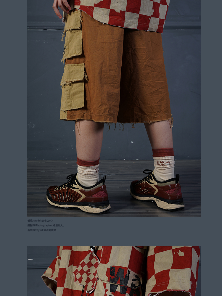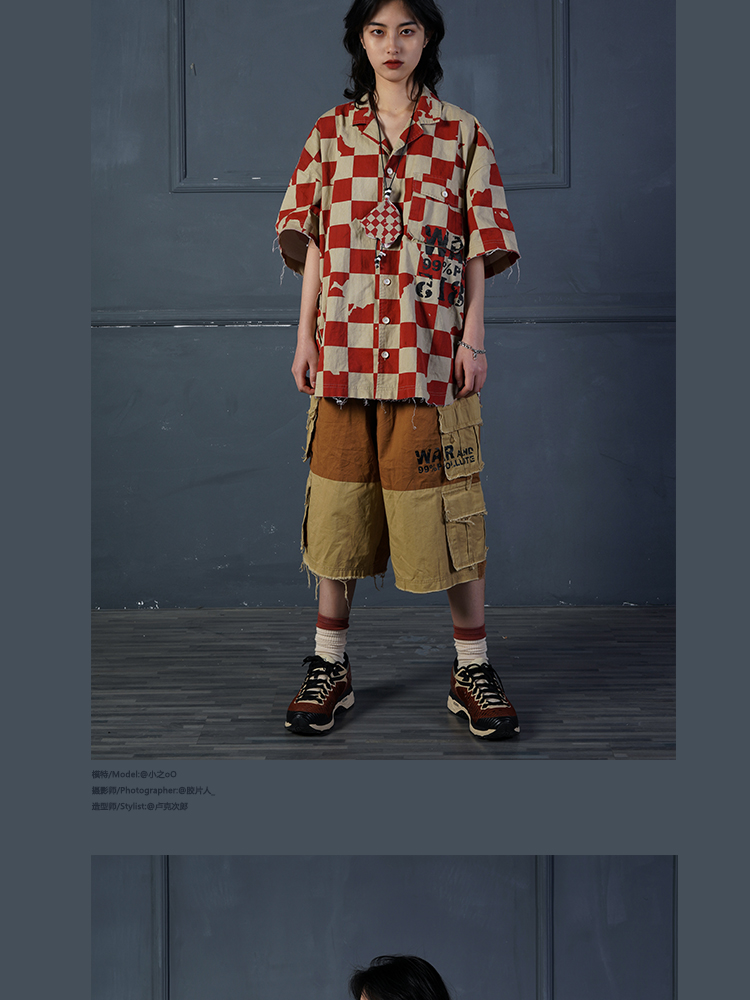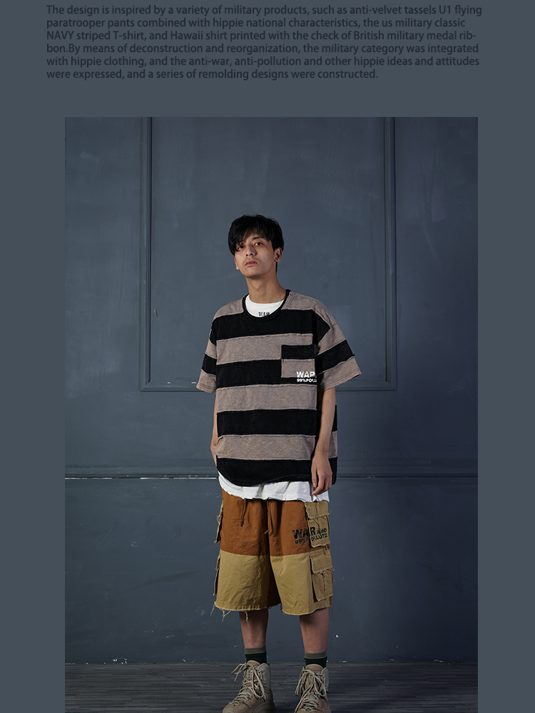 POH 19SS多口袋水洗結構拼色廓形短褲男夏季潮流雙色入潮牌五分裤