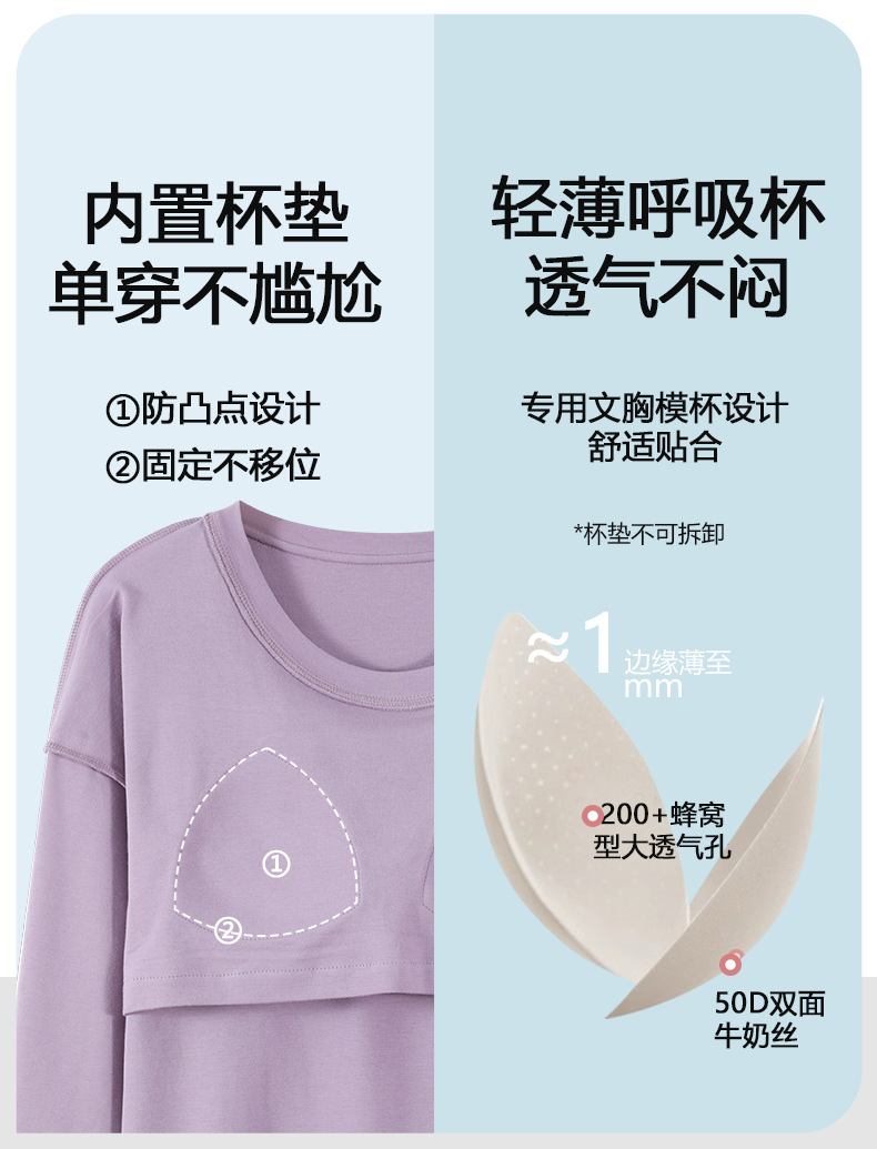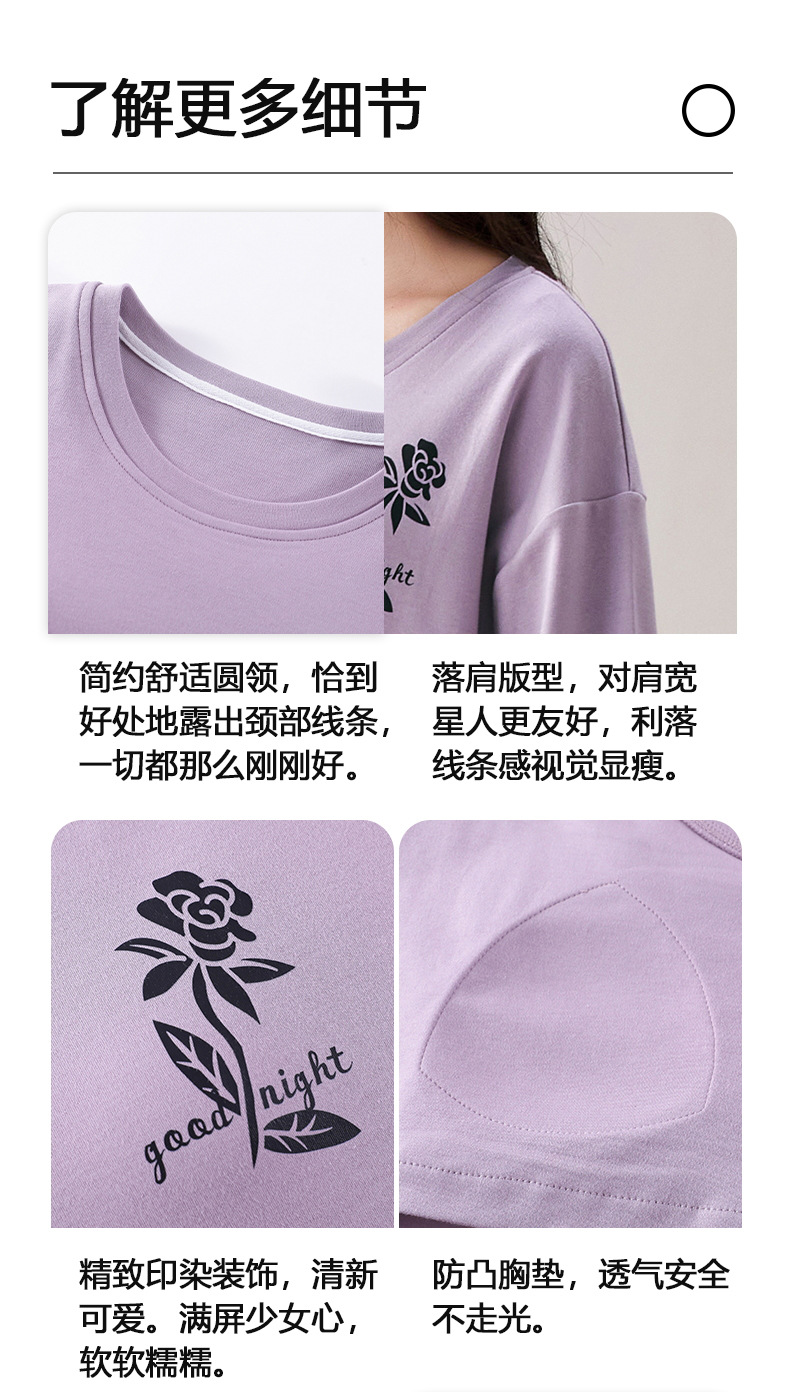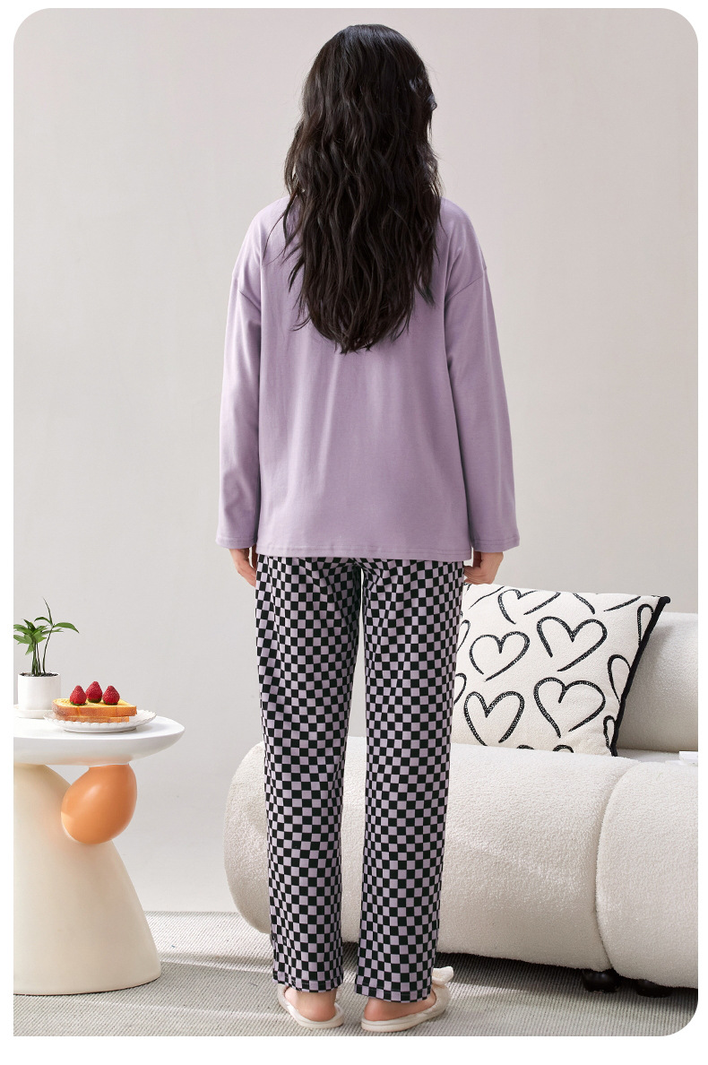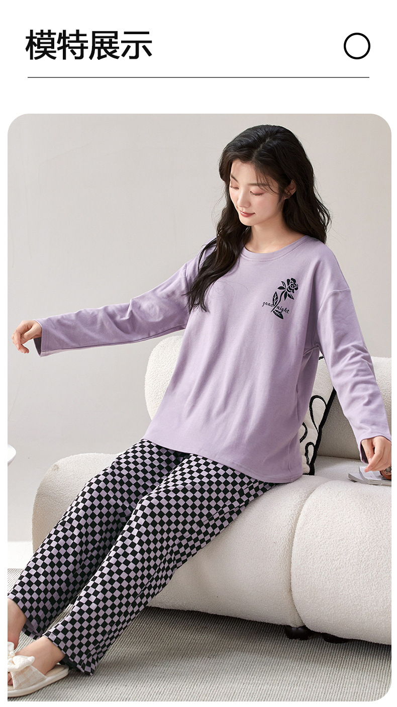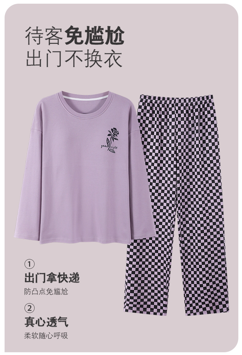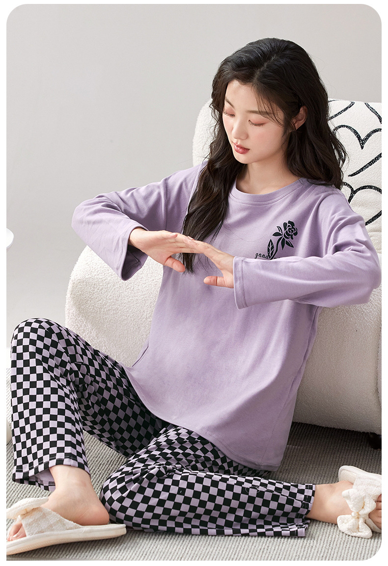家居服秋季新款新品带胸垫春秋睡衣女长袖长裤套头甜美圆领舒适可外穿家居服