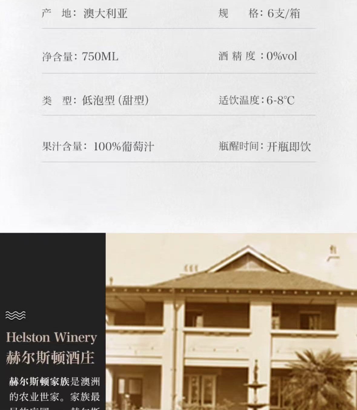 澳大利亚进口赫尔斯顿零度脱醇葡萄酒 整箱750ml*6瓶包邮