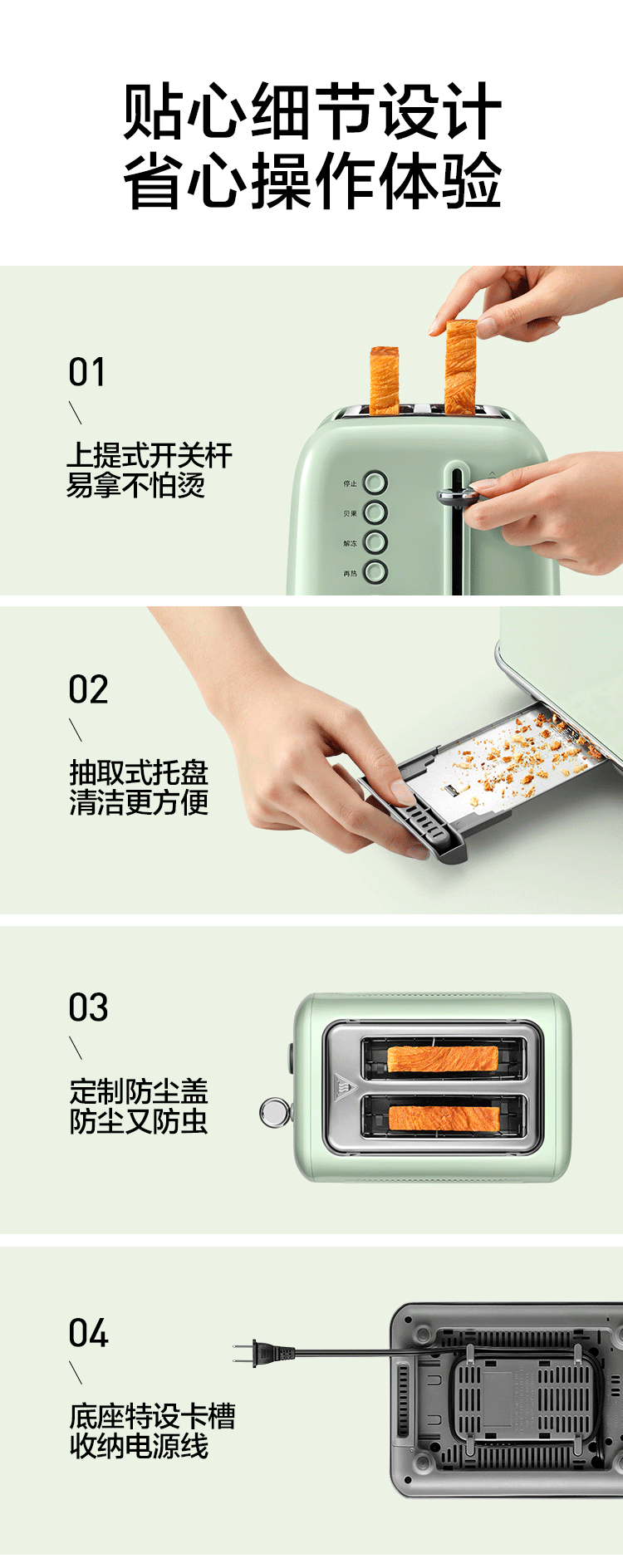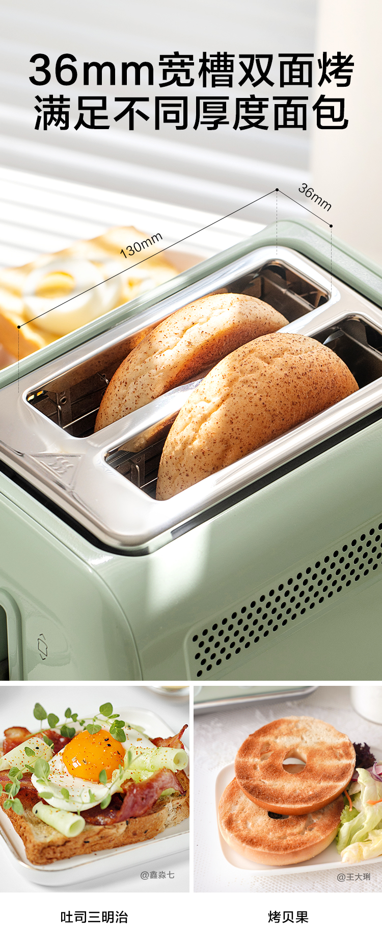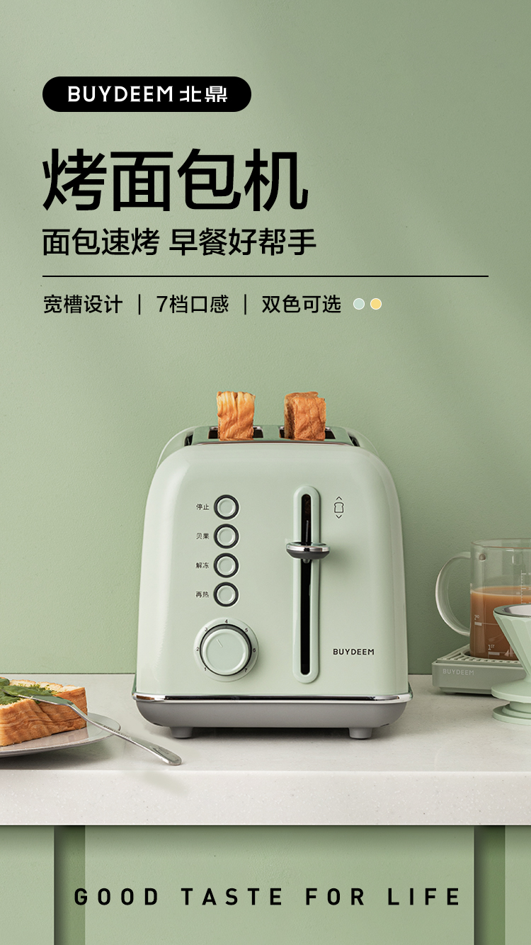 【专柜-北鼎】北鼎复古烤面包机家用多功能早餐机加热三明治小多士炉吐司机D702